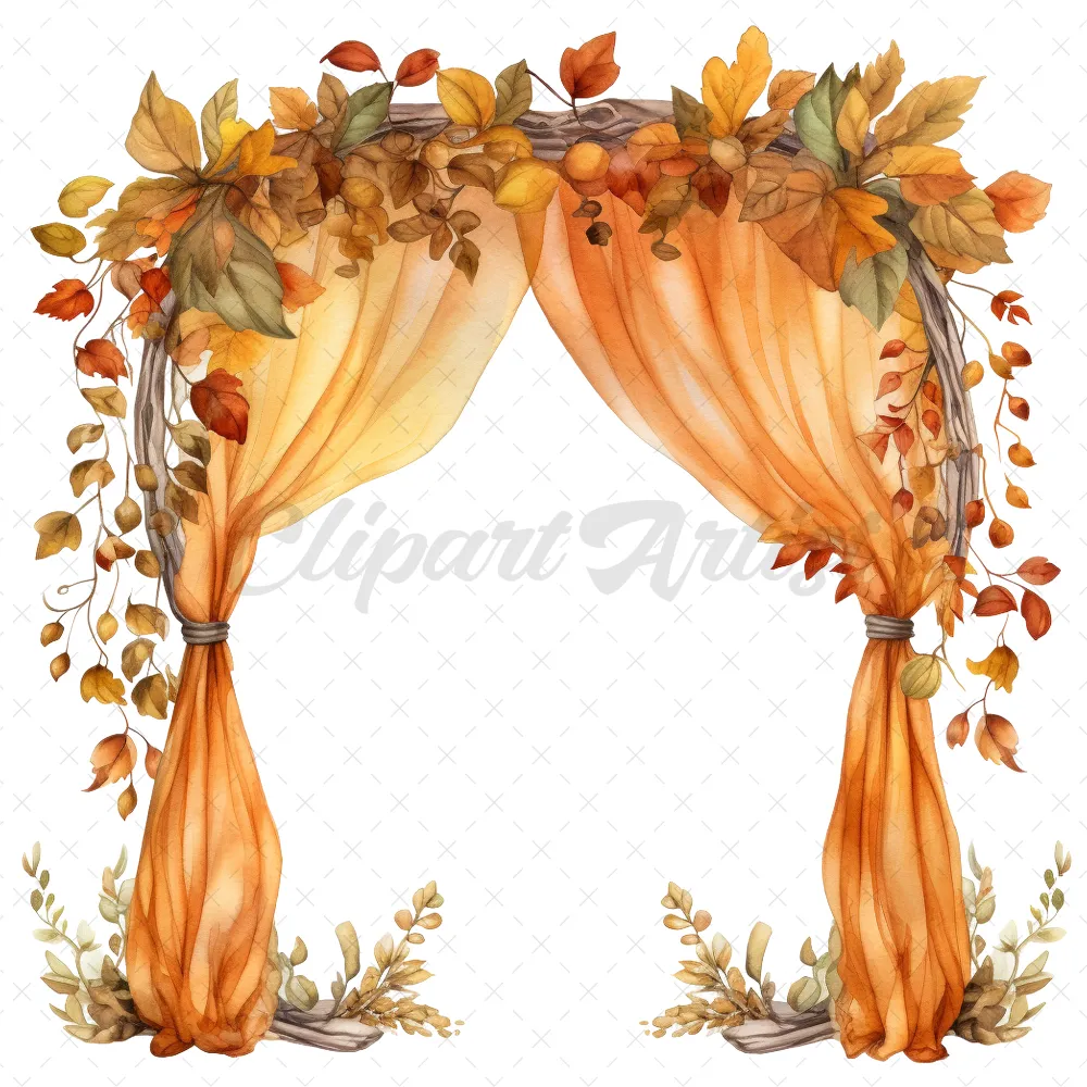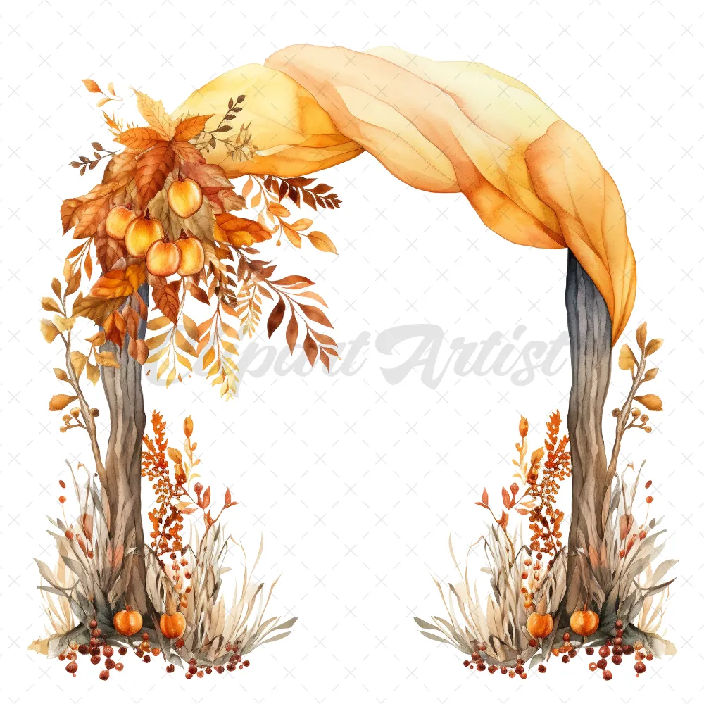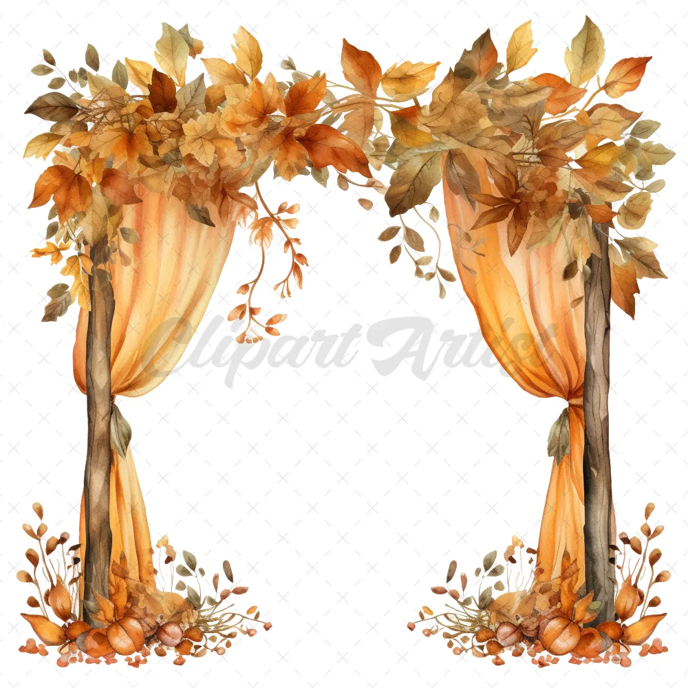 20 High-Quality Autumn Arches Clipart – Autumn arches digital watercolor JPG instant download for commercial use – Digital download