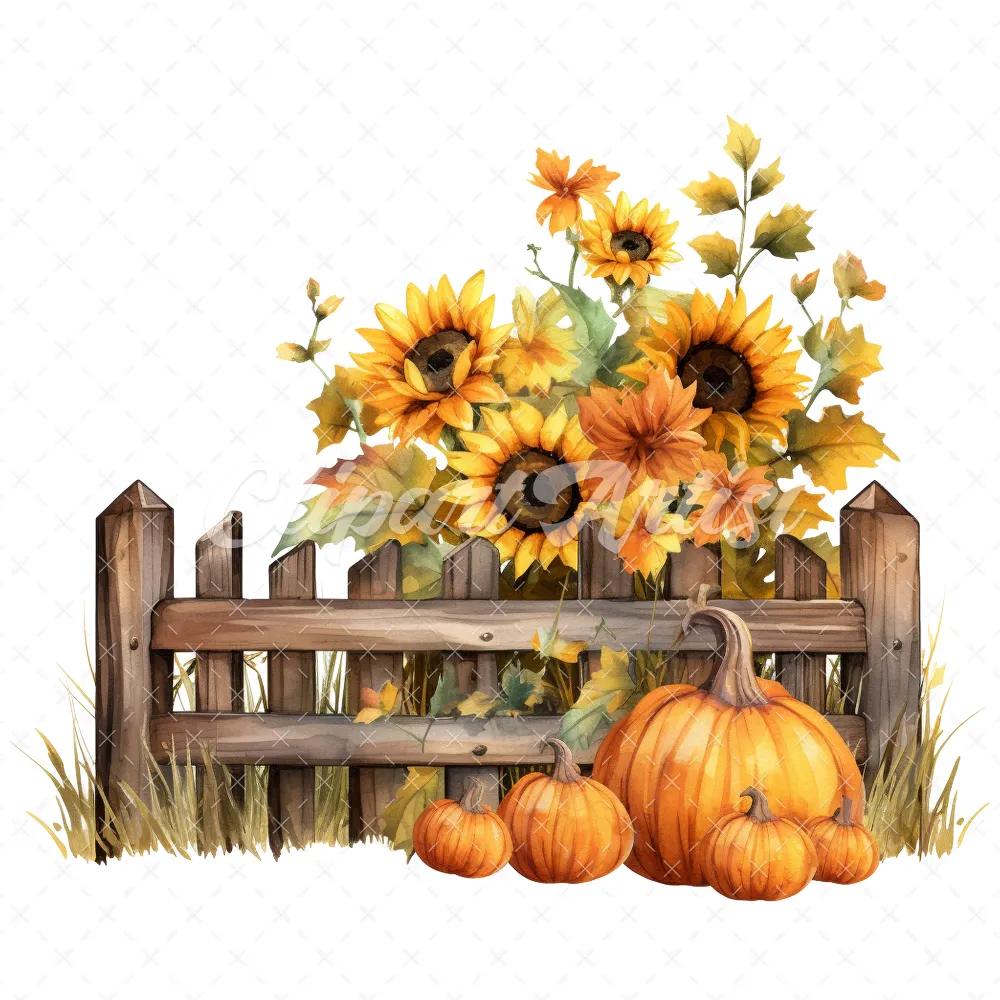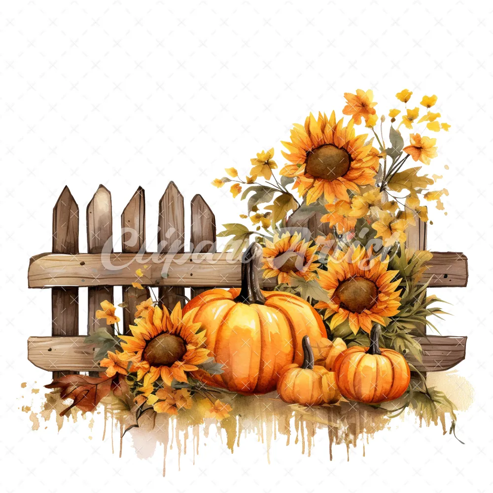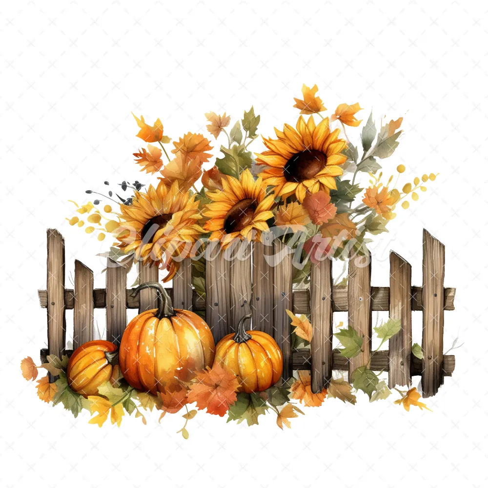 20 High-Quality Autumn Fences Clipart – Autumn fences digital watercolor JPG instant download for commercial use – Digital download