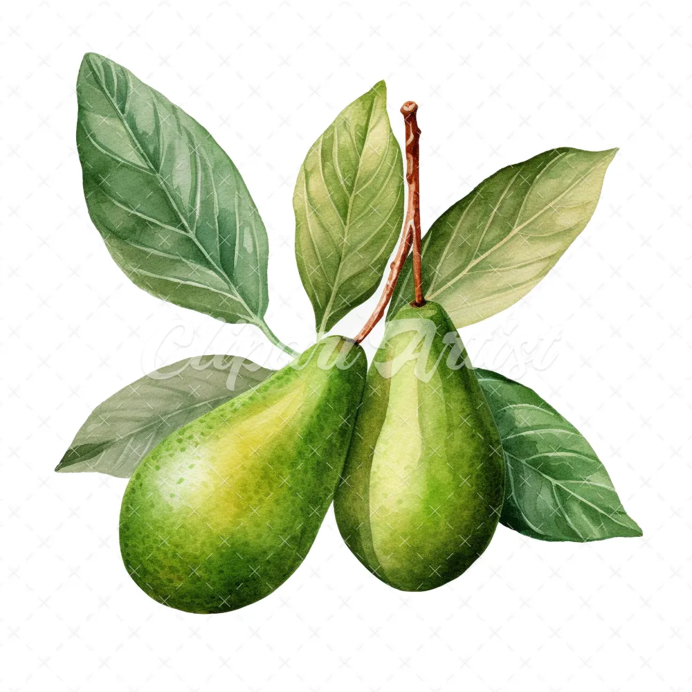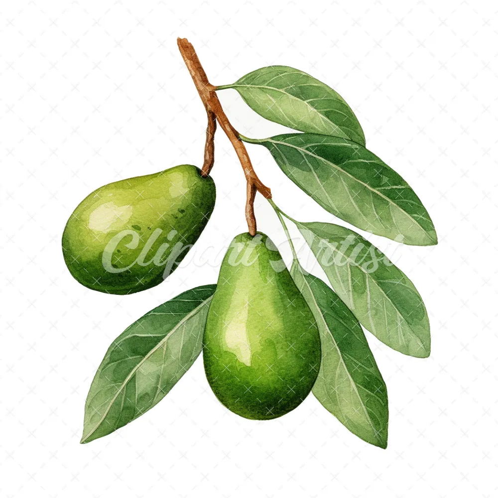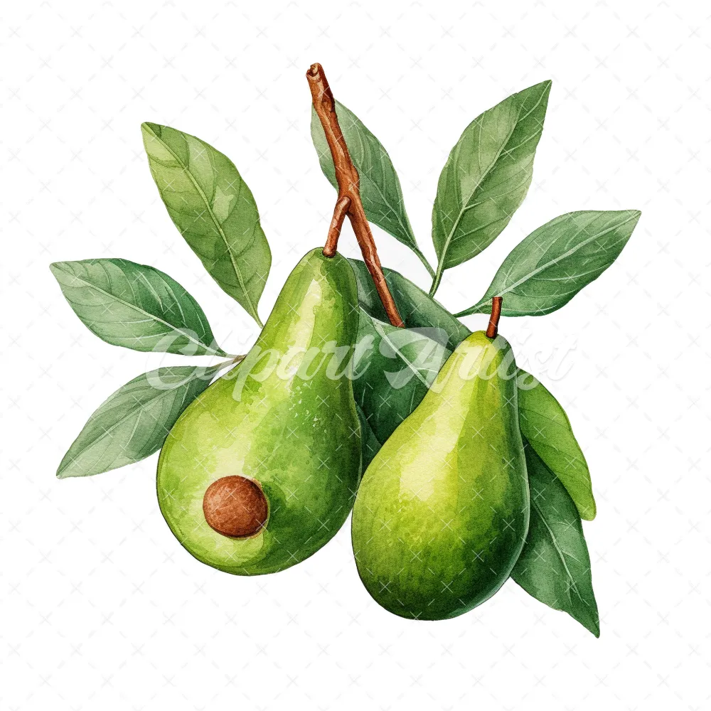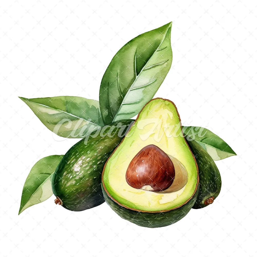 20 High-Quality Avocado Clipart – Avocado digital watercolor JPG instant download for commercial use – Digital download