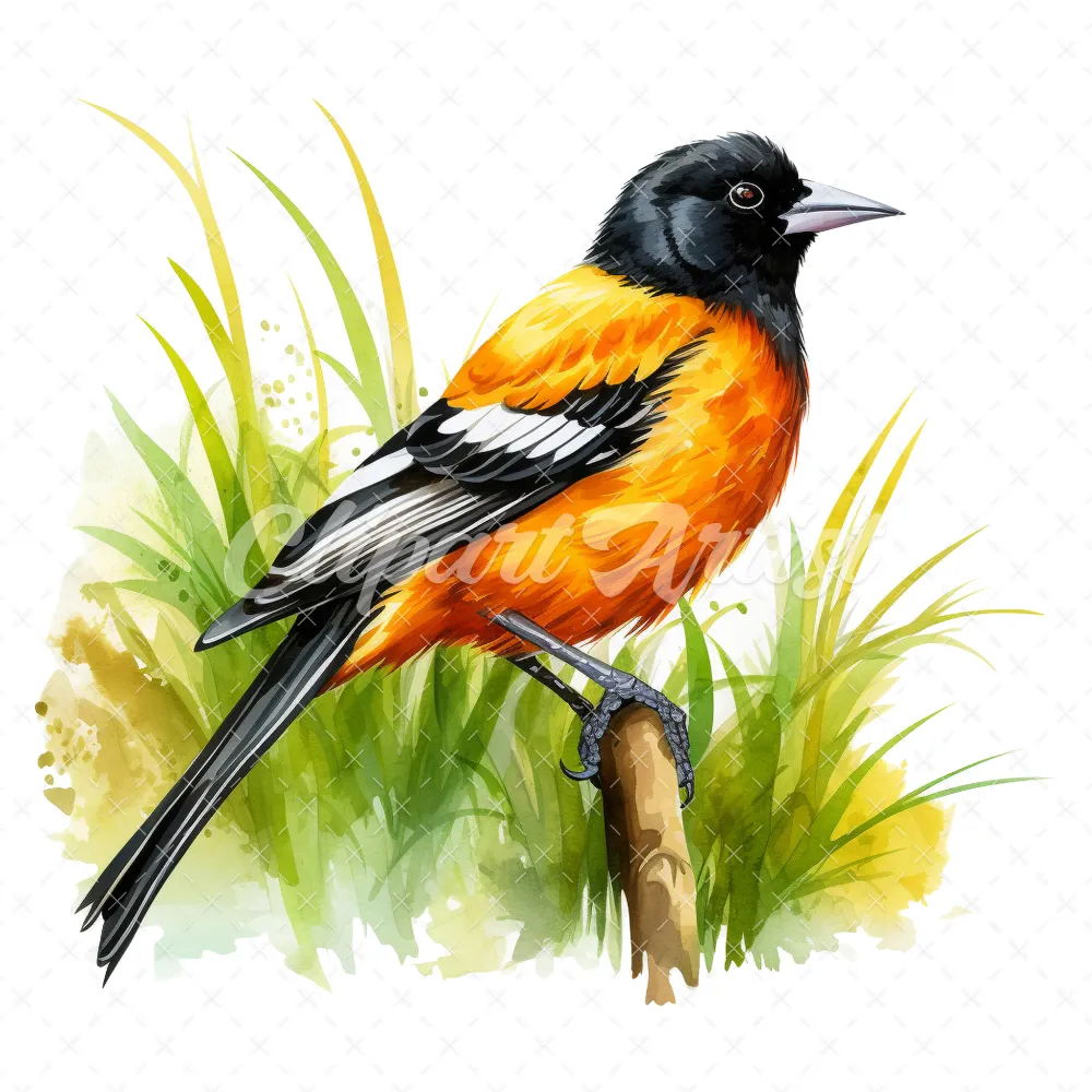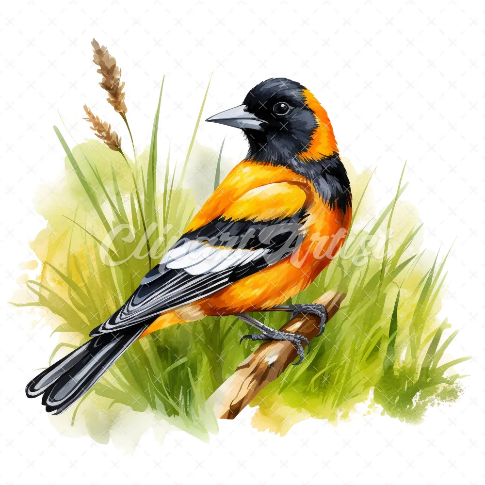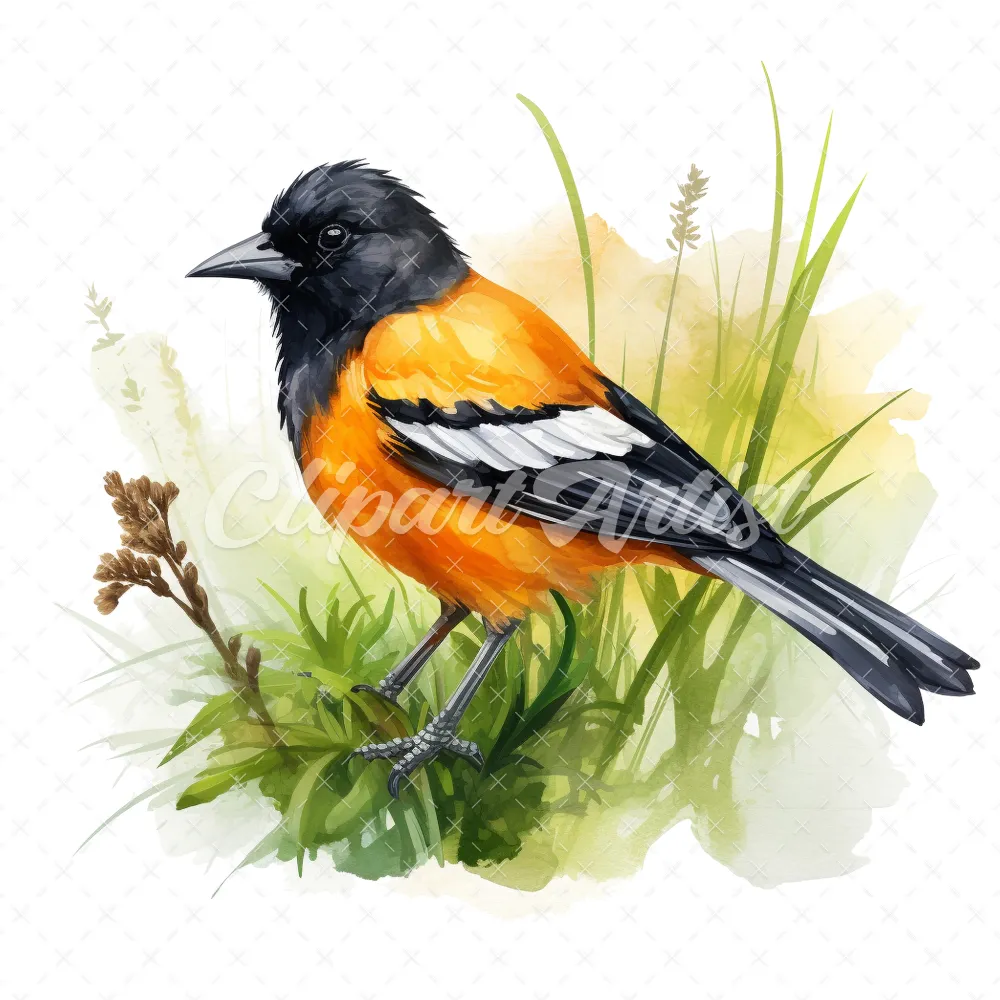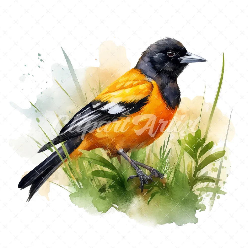 20 High-Quality Baltimore Oriole Clipart – Baltimore oriole digital watercolor JPG instant download for commercial use – Digital download