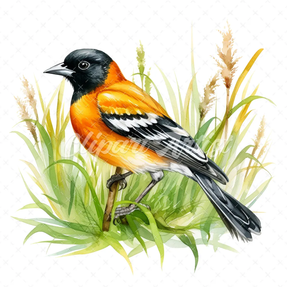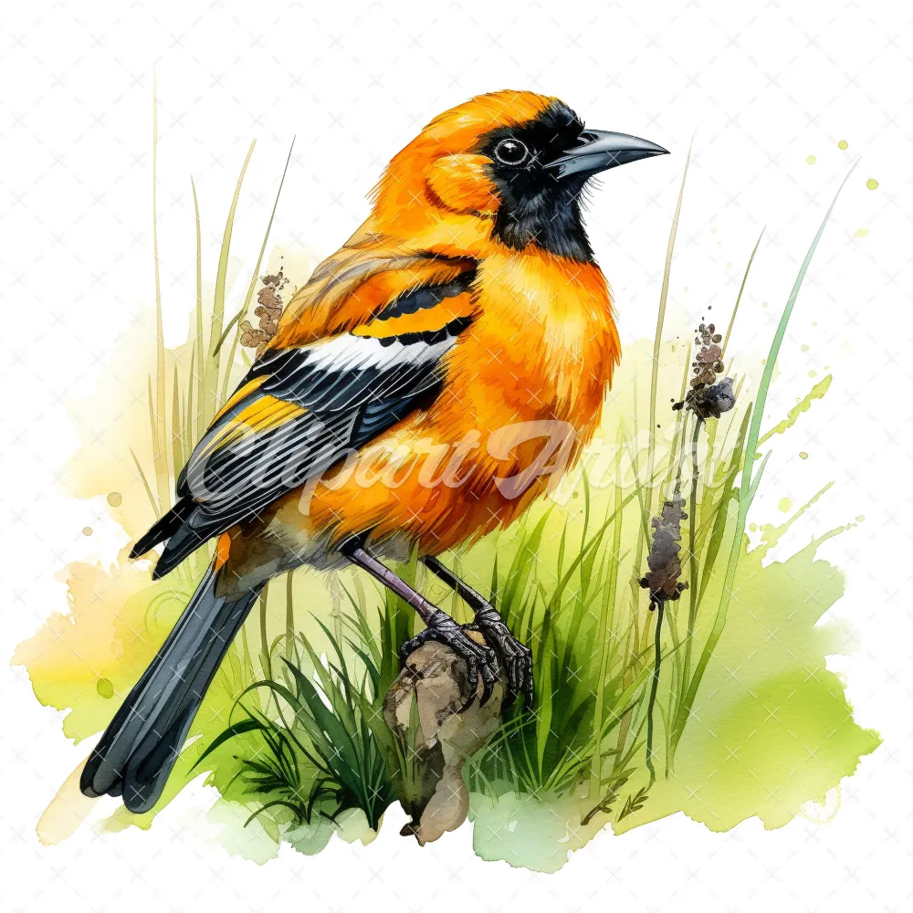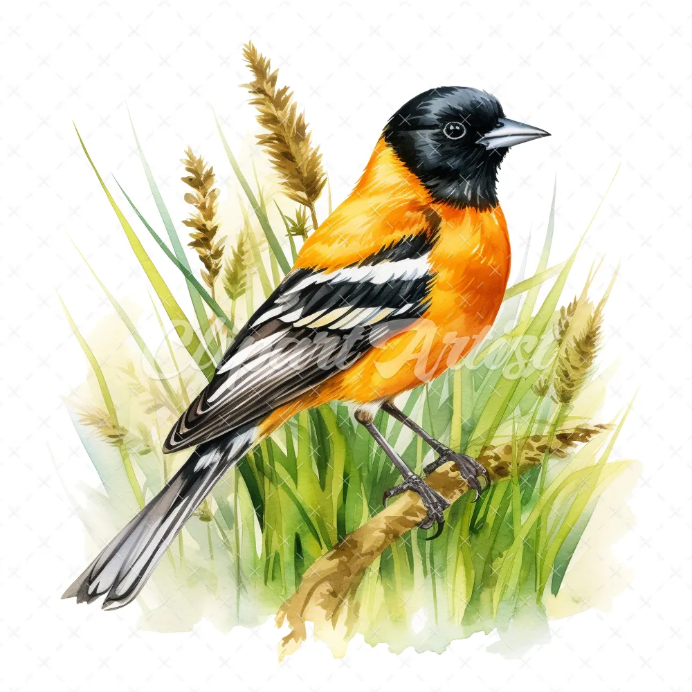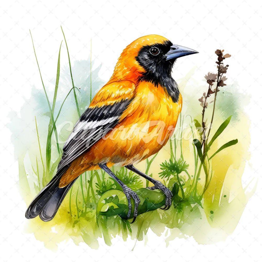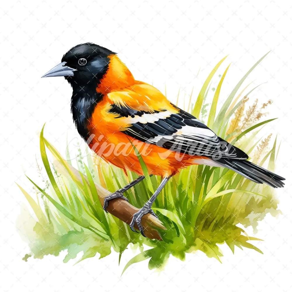 20 High-Quality Baltimore Oriole Clipart – Baltimore oriole digital watercolor JPG instant download for commercial use – Digital download