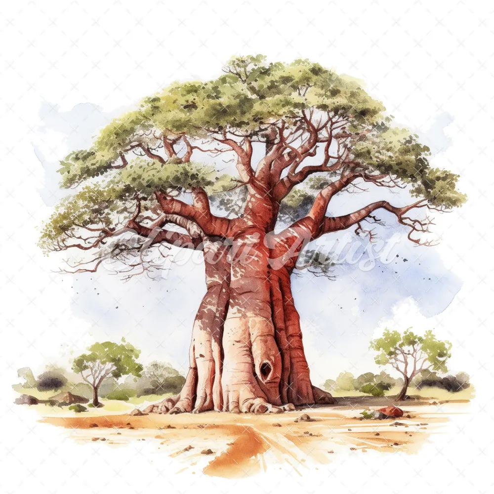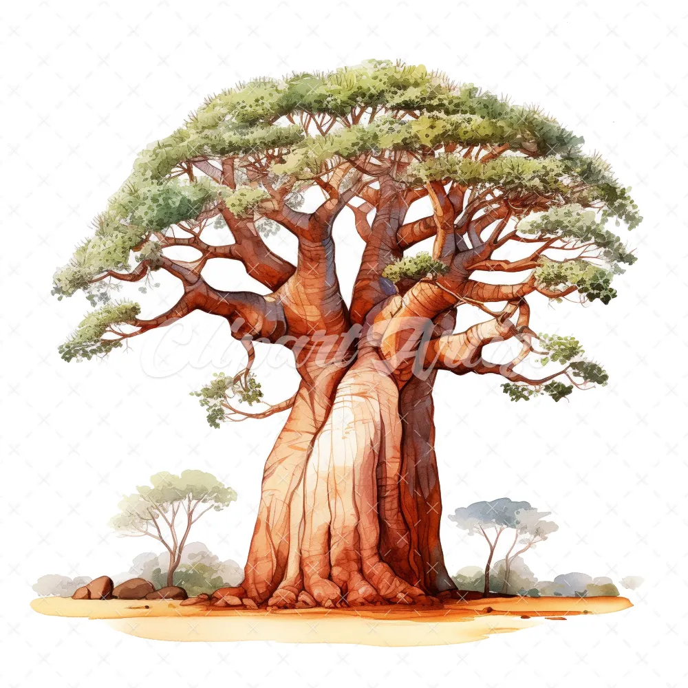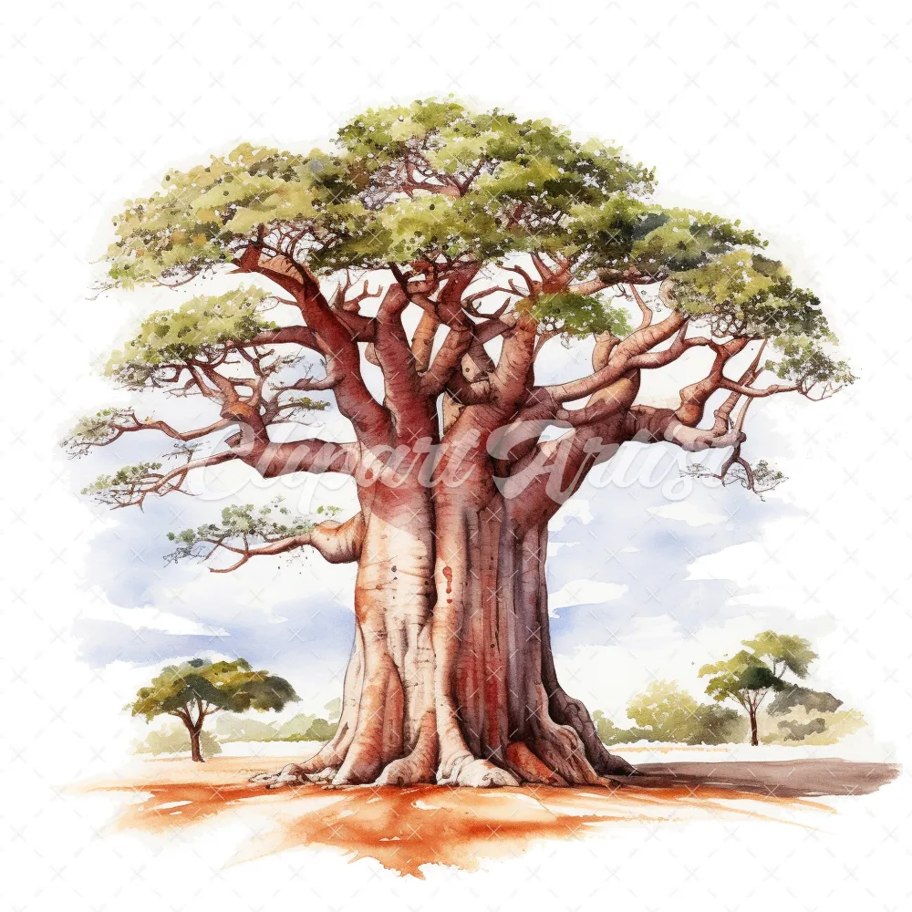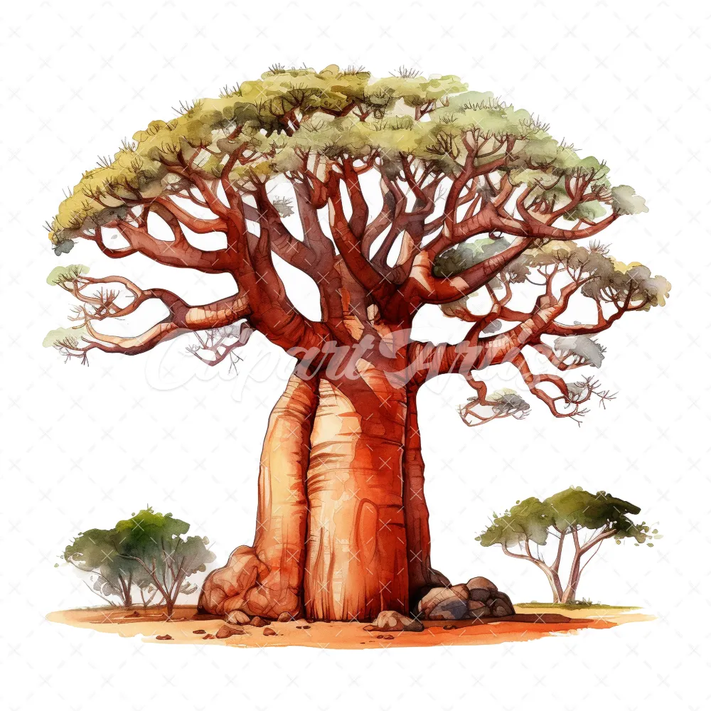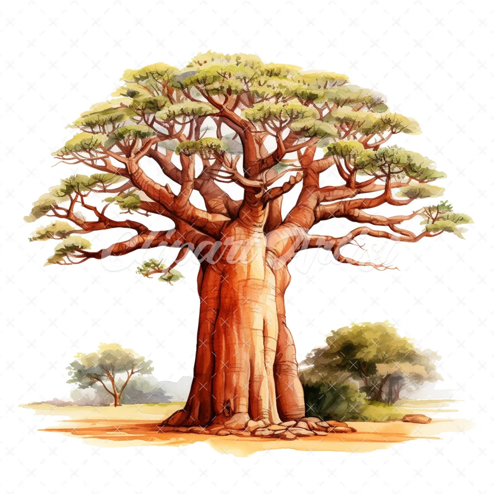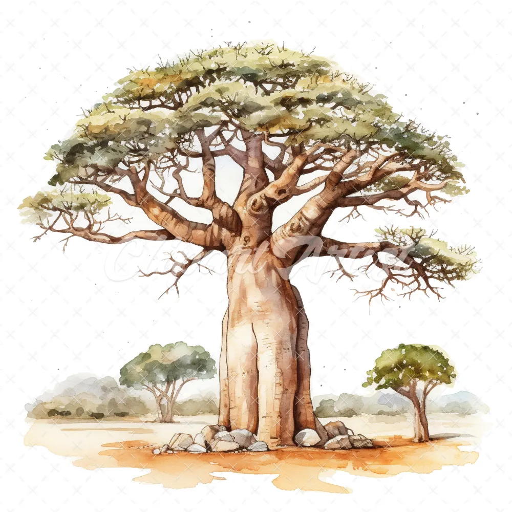 20 High-Quality Baobab Tree Clipart – Baobab tree digital watercolor JPG instant download for commercial use – Digital download