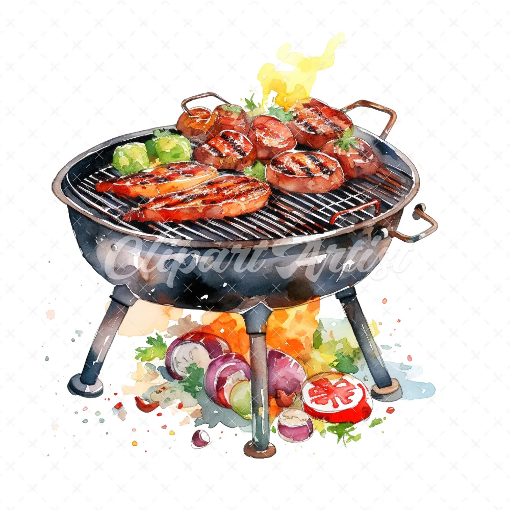 20 High-Quality BBQ Grill at Clipart – BBQ grill digital watercolor JPG instant download for commercial use – Digital download