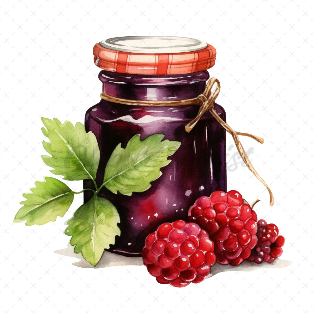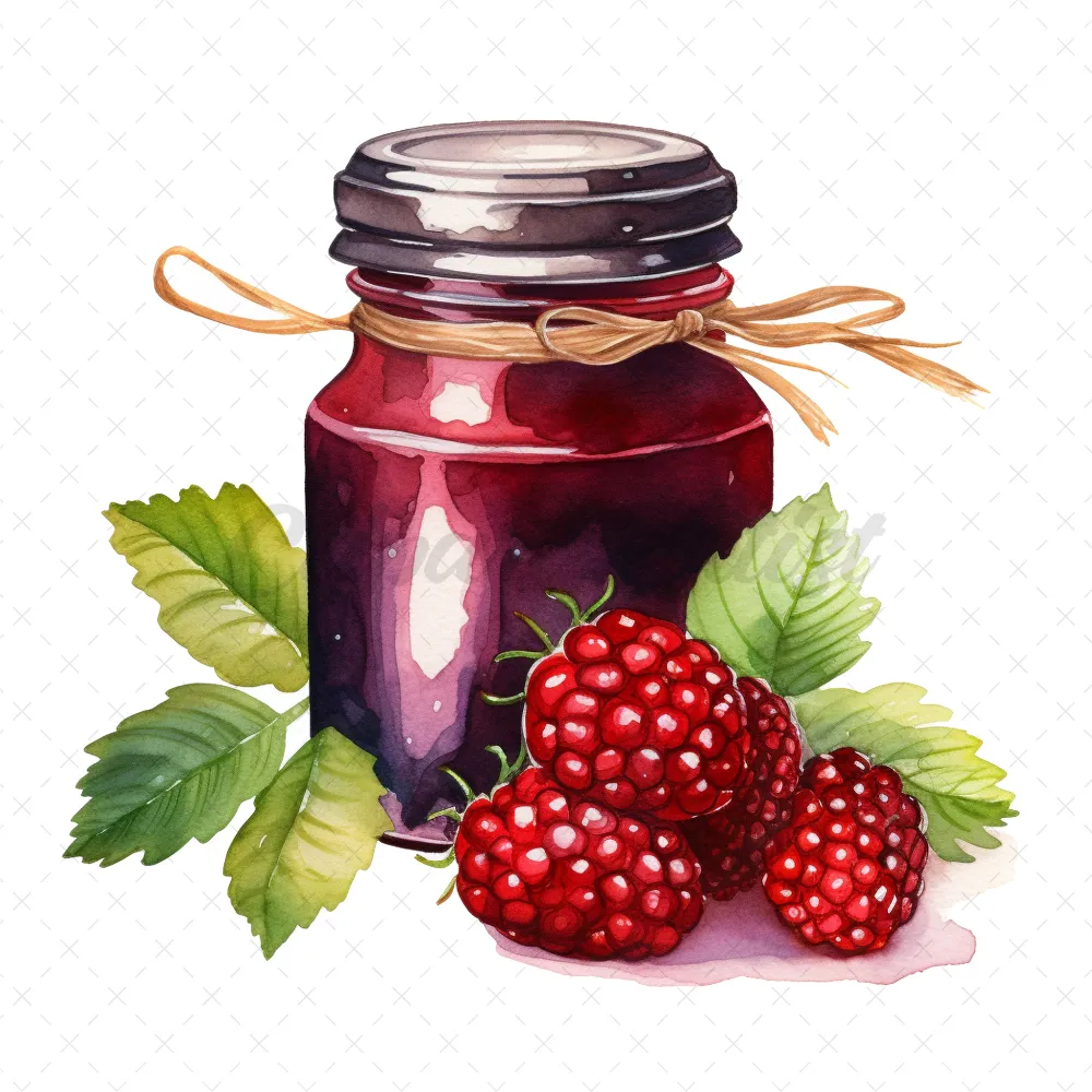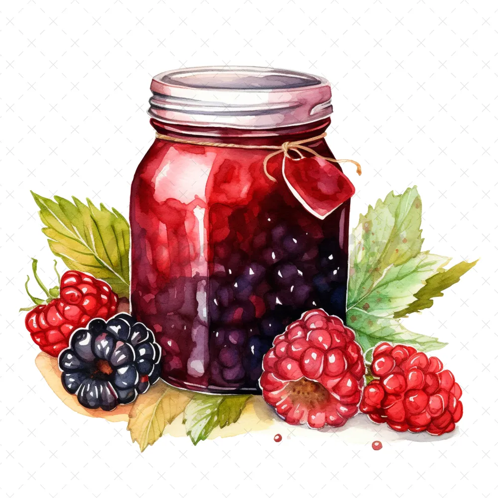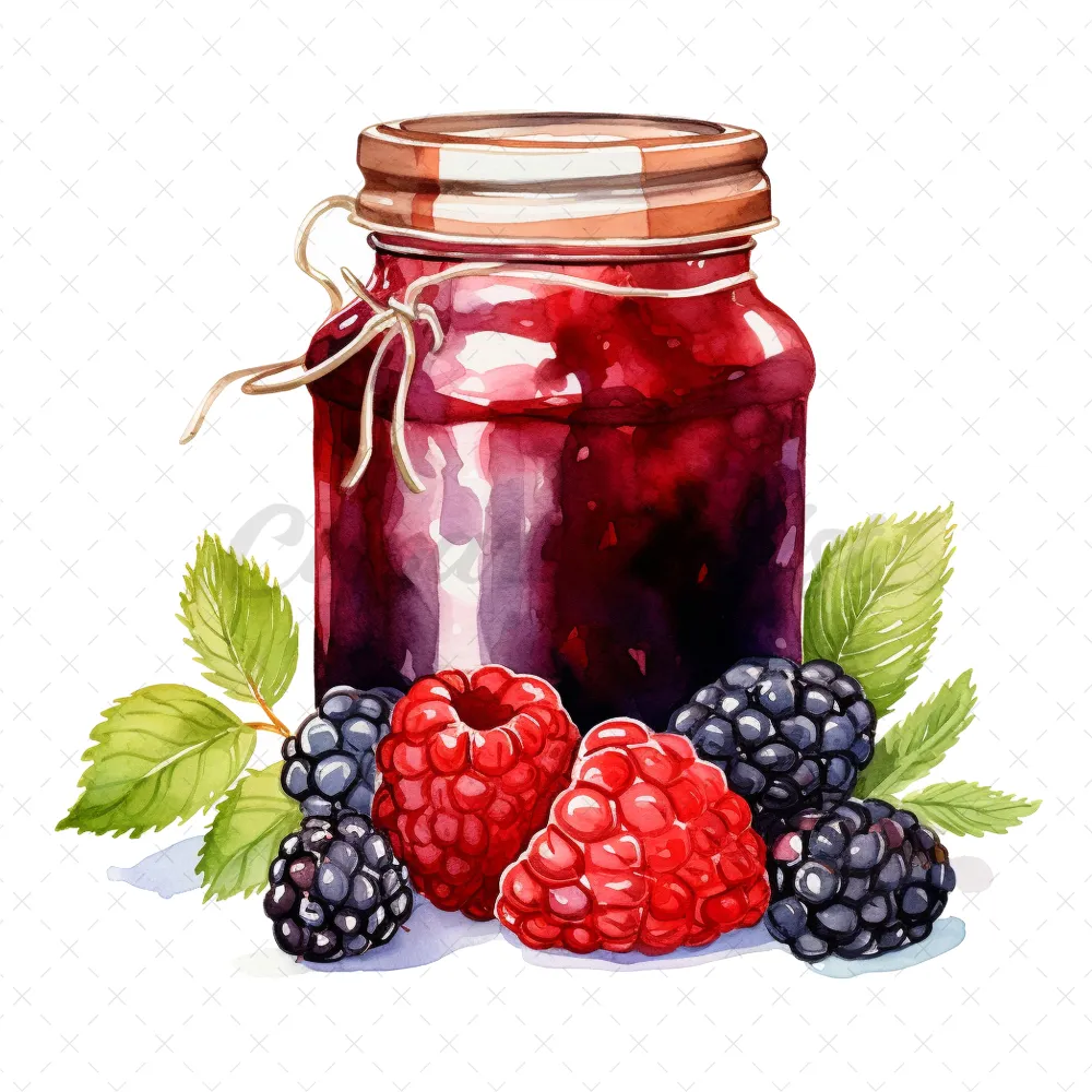 20 High-Quality Berry Jam Clipart – Berry Jam digital watercolor JPG instant download for commercial use – Digital download