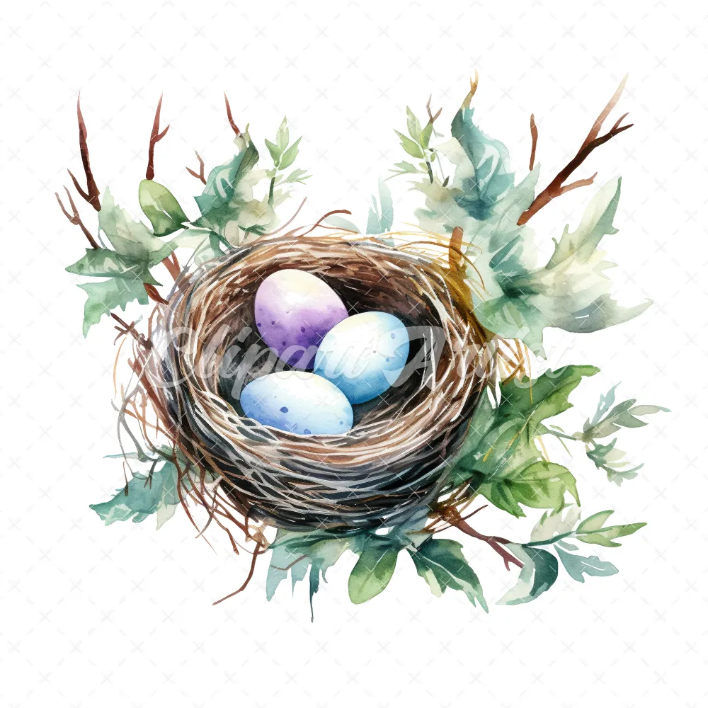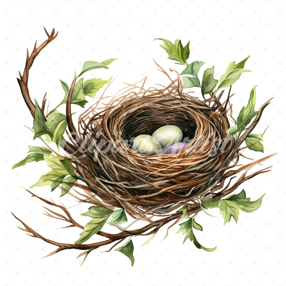 20 High-Quality Bird Nest Clipart – Bird nest digital watercolor JPG instant download for commercial use – Digital download