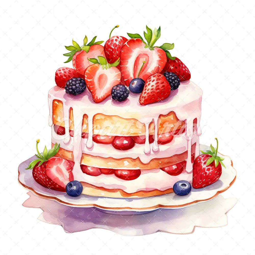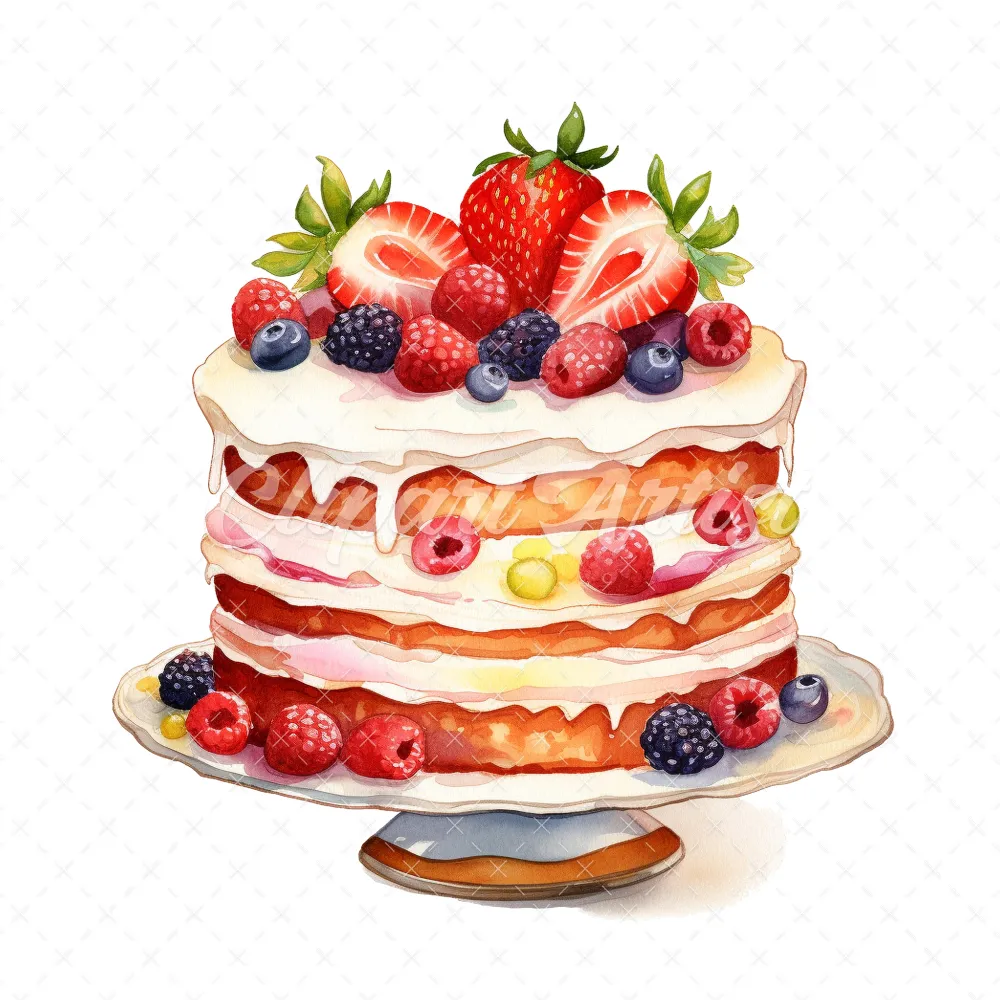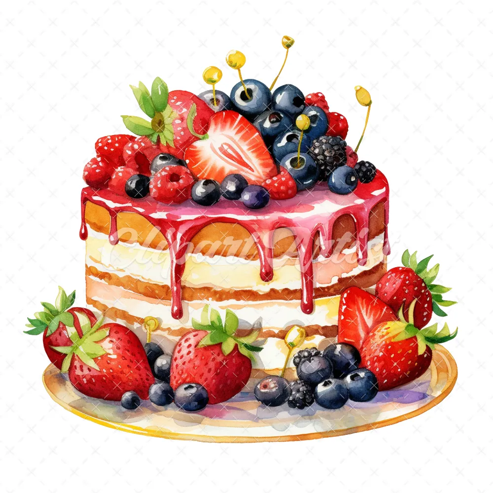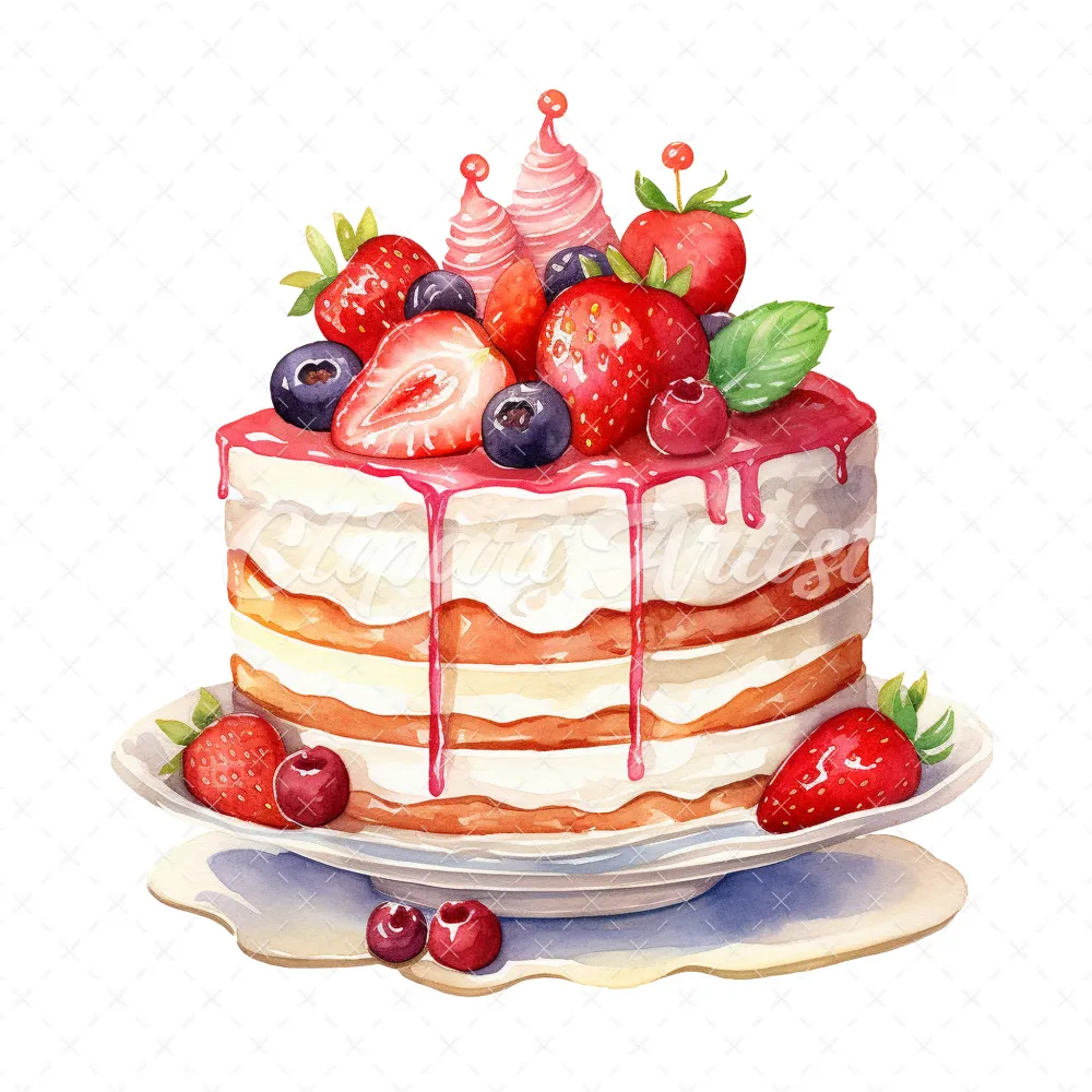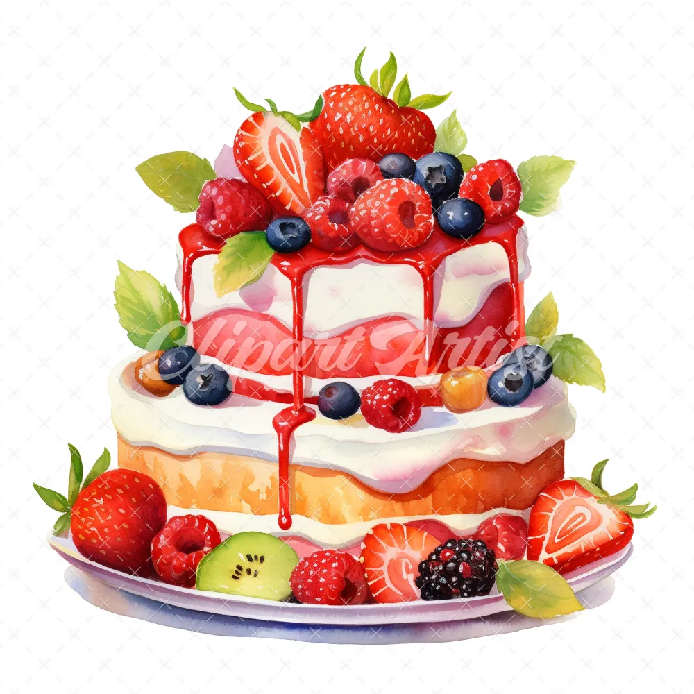 20 High-Quality Birthday Fruit Cake Clipart – Fruit cake digital watercolor JPG instant download for commercial use – Digital download