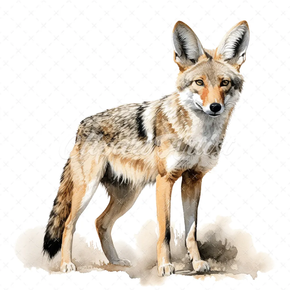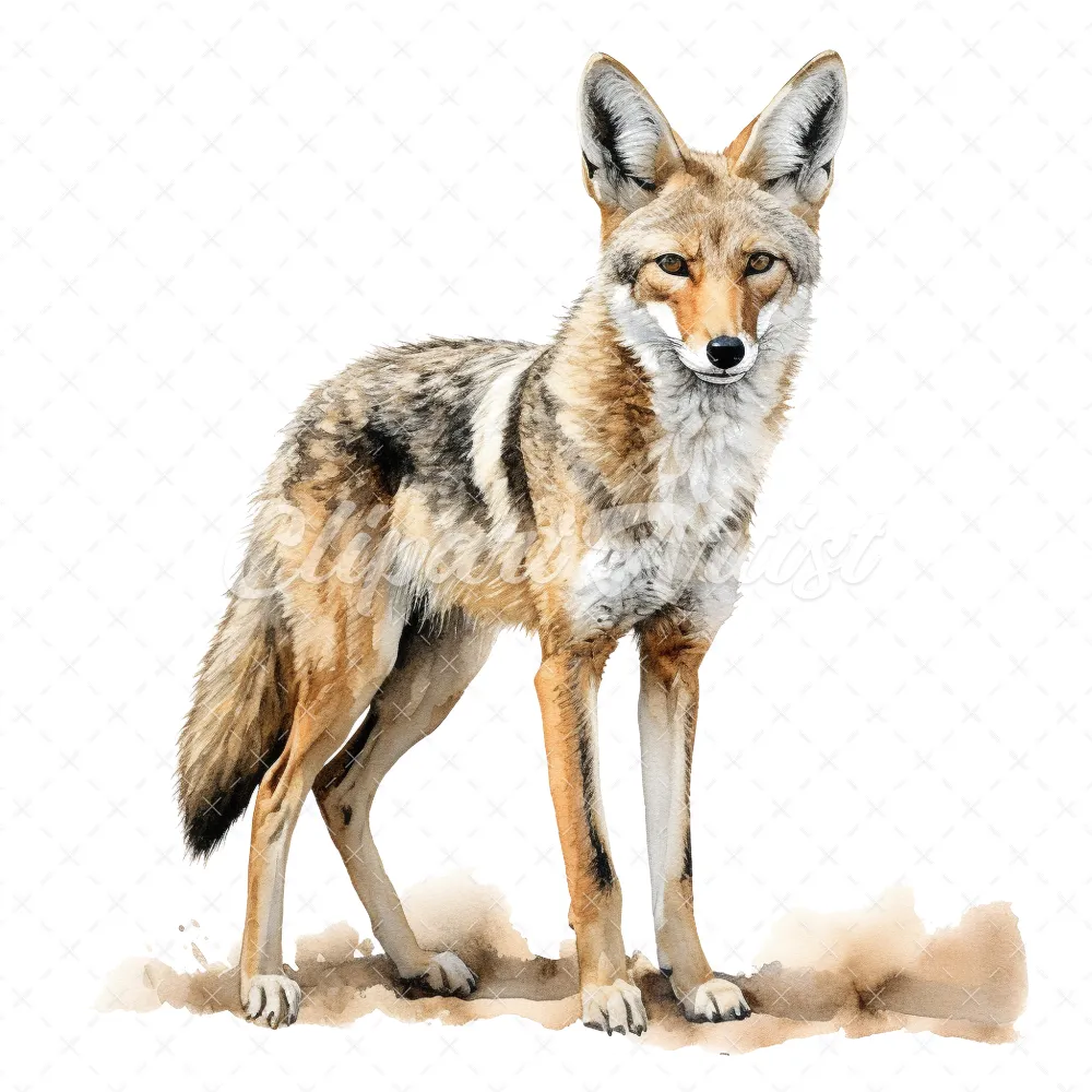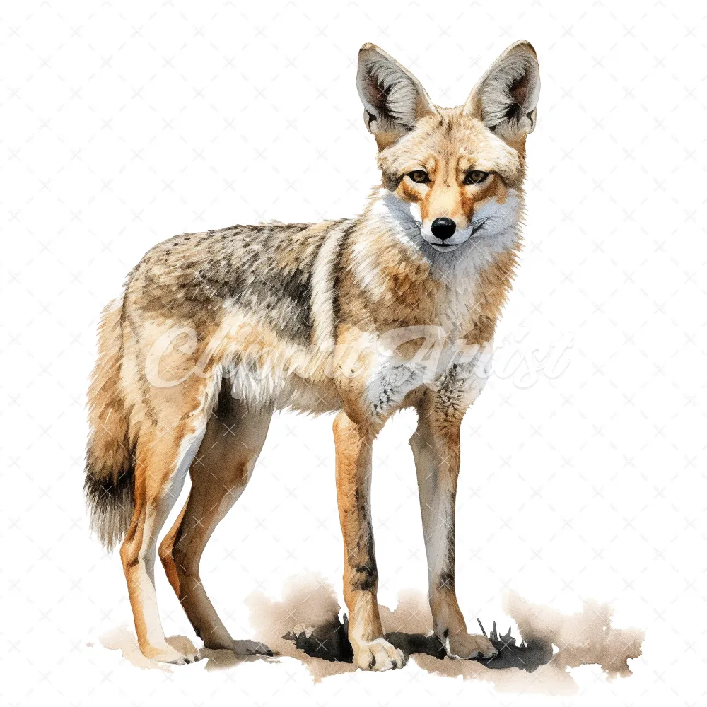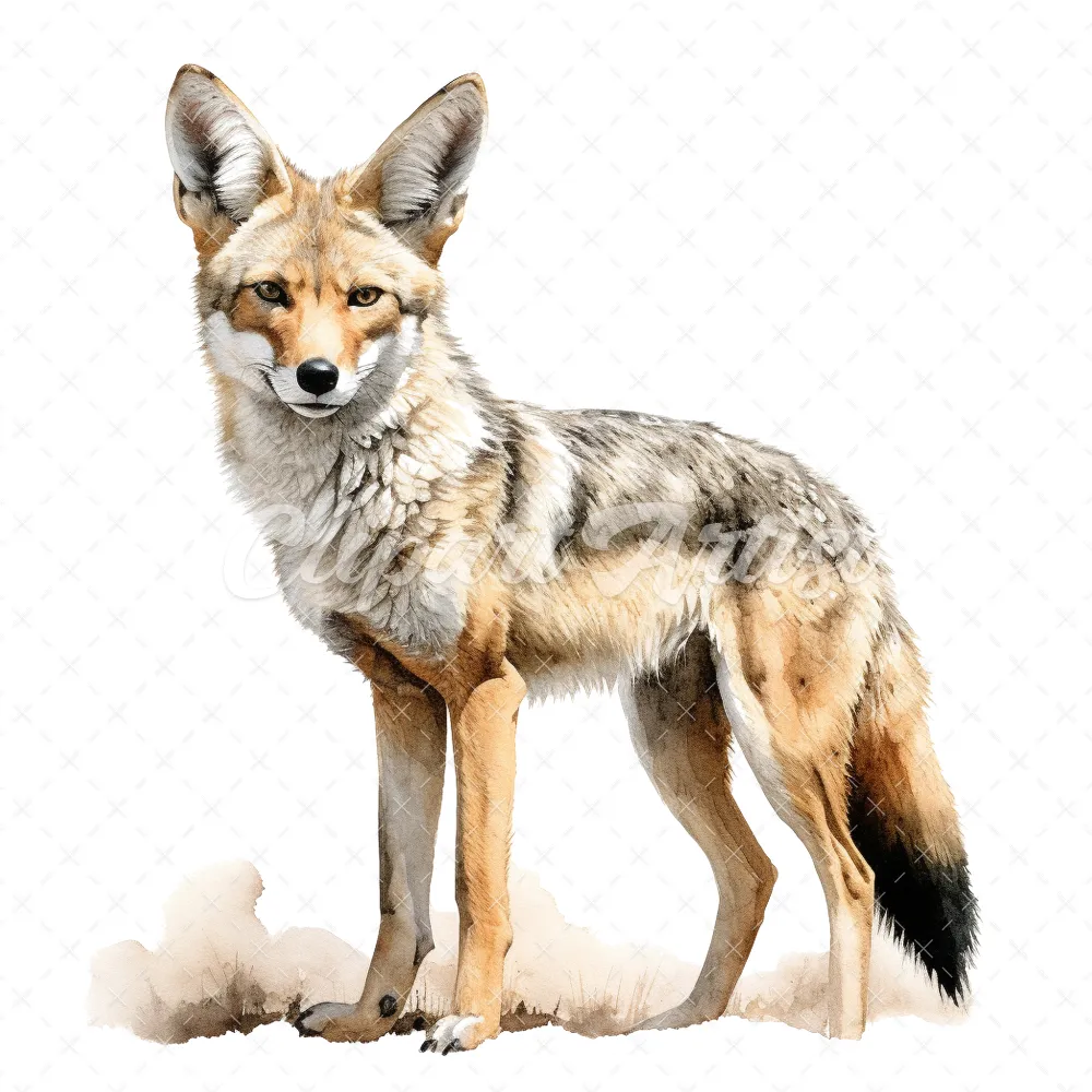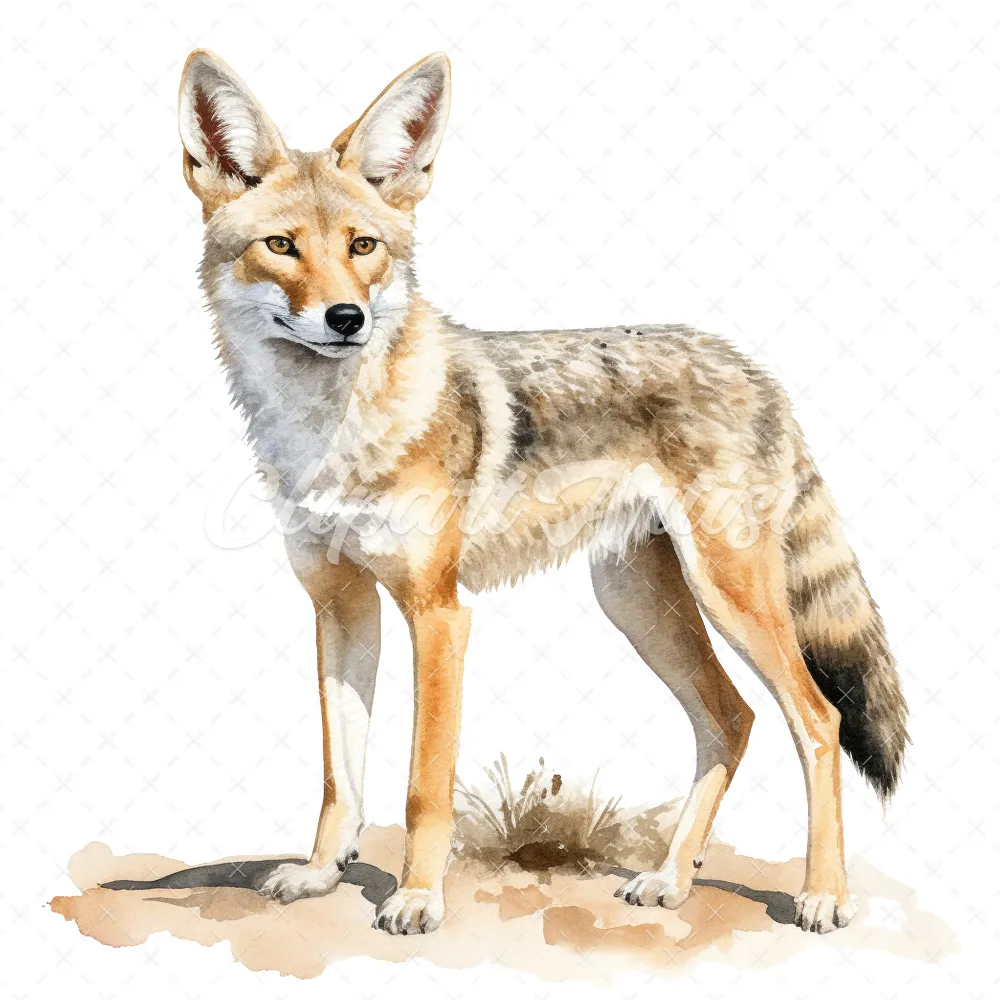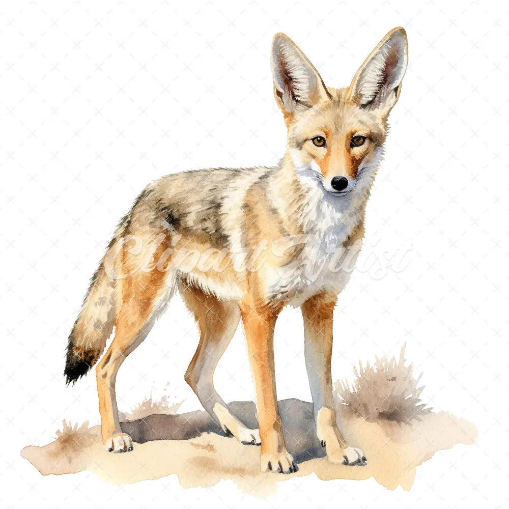 20 High-Quality Black-Backed Jackal Clipart – Backed Jackal digital watercolor JPG instant download for commercial use – Digital download