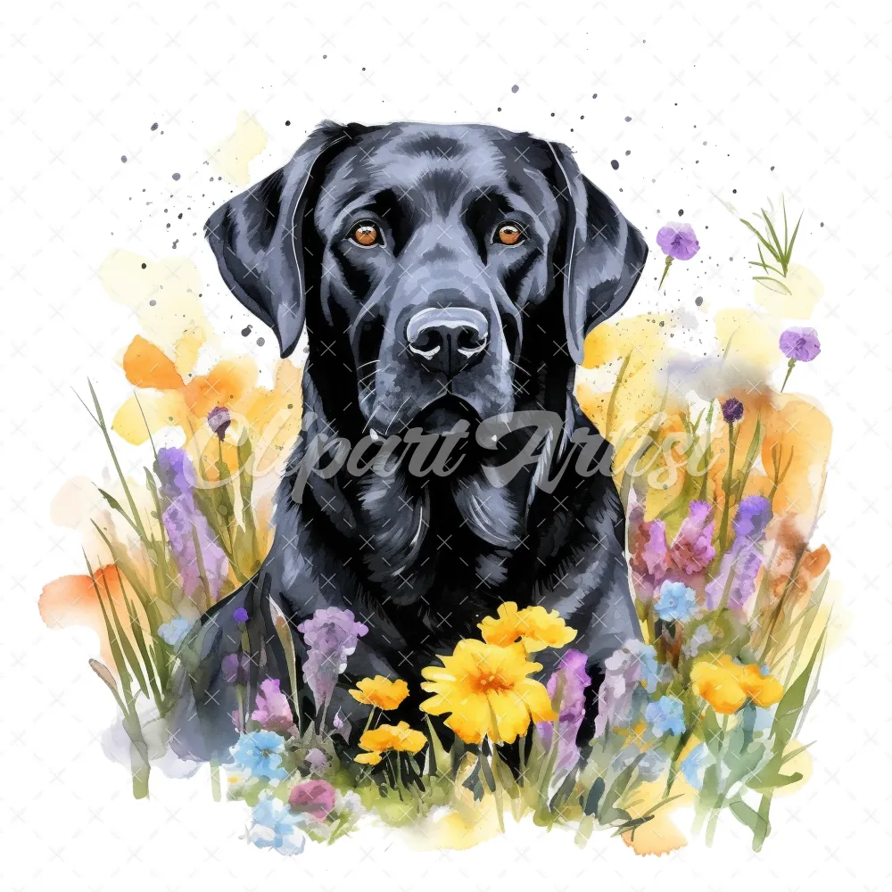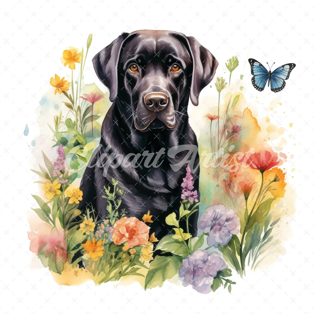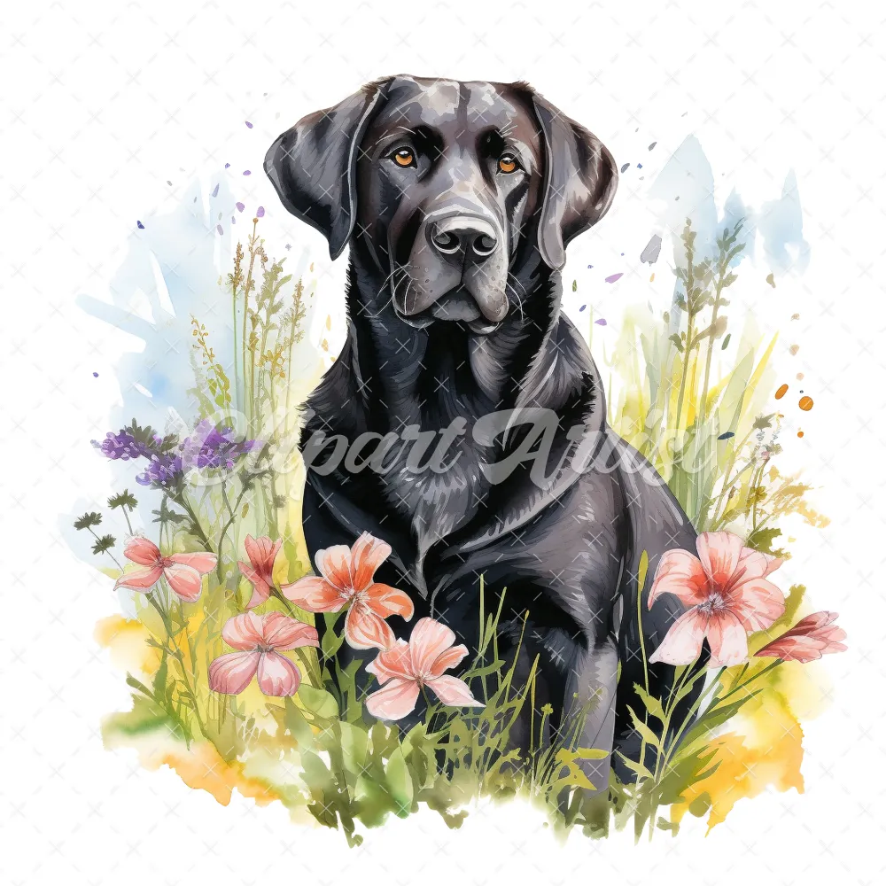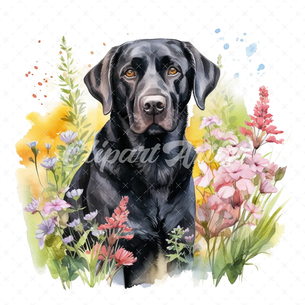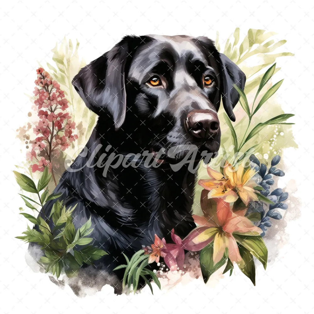 20 High-Quality Black Labrador Clipart – Black labrador digital watercolor JPG instant download for commercial use – Digital download