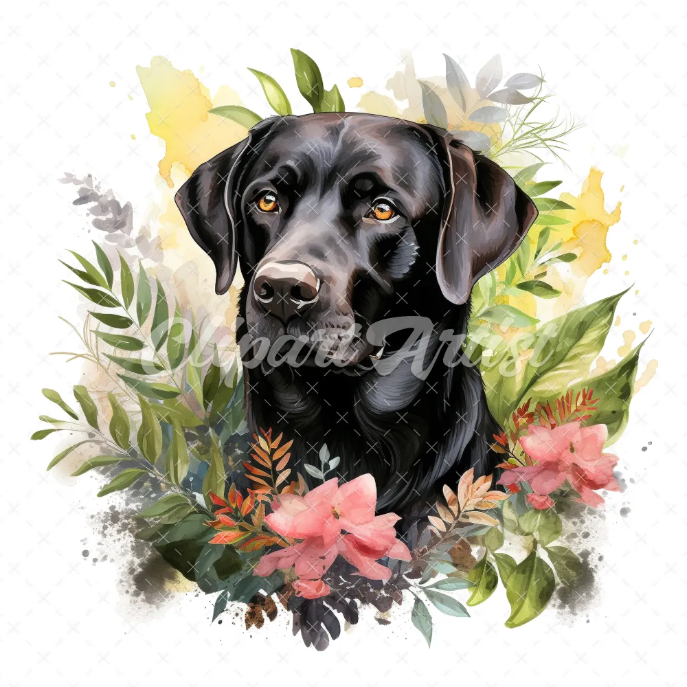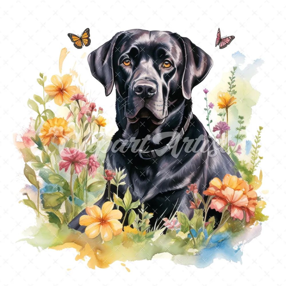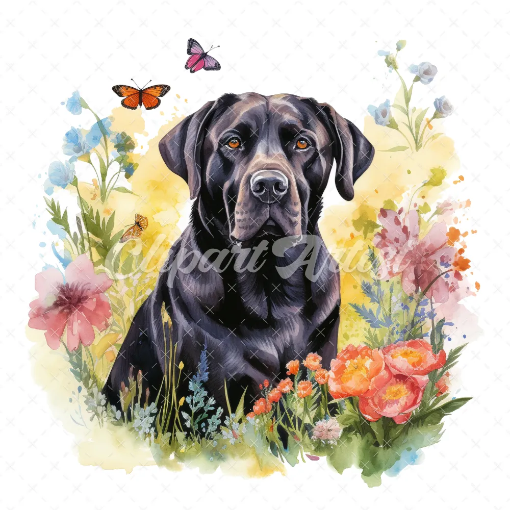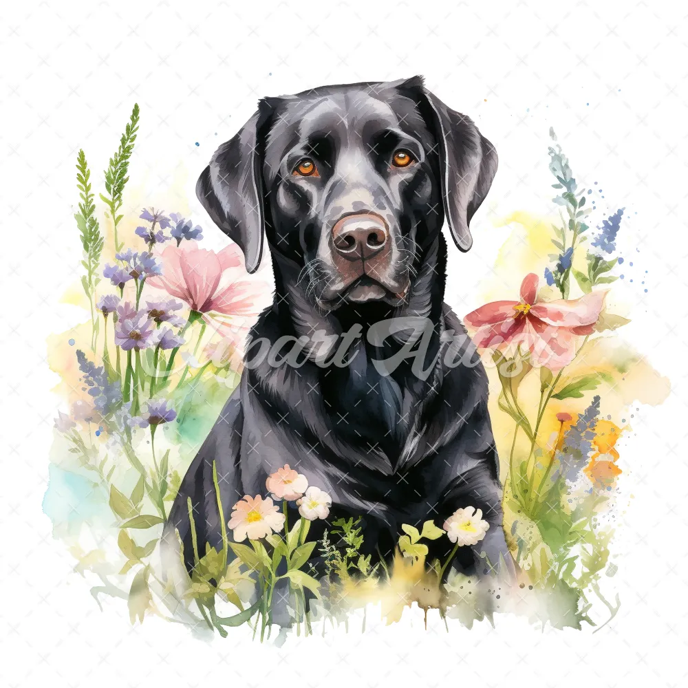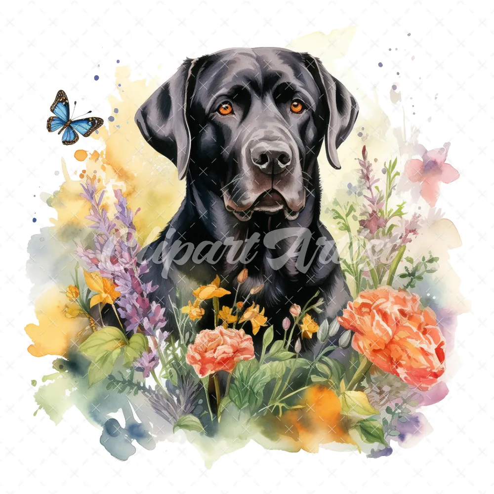 20 High-Quality Black Labrador Clipart – Black labrador digital watercolor JPG instant download for commercial use – Digital download