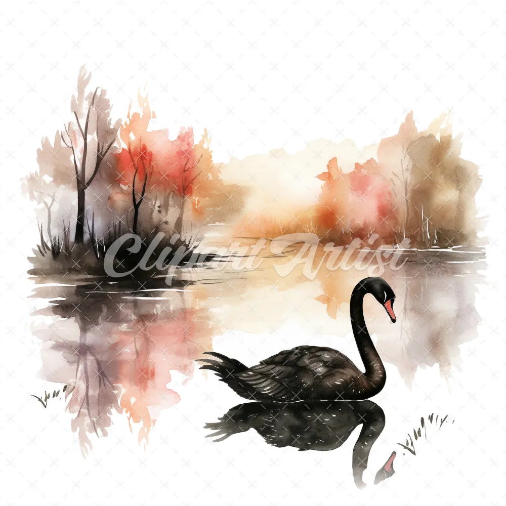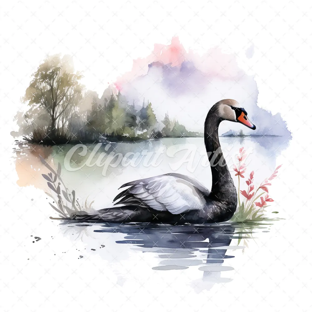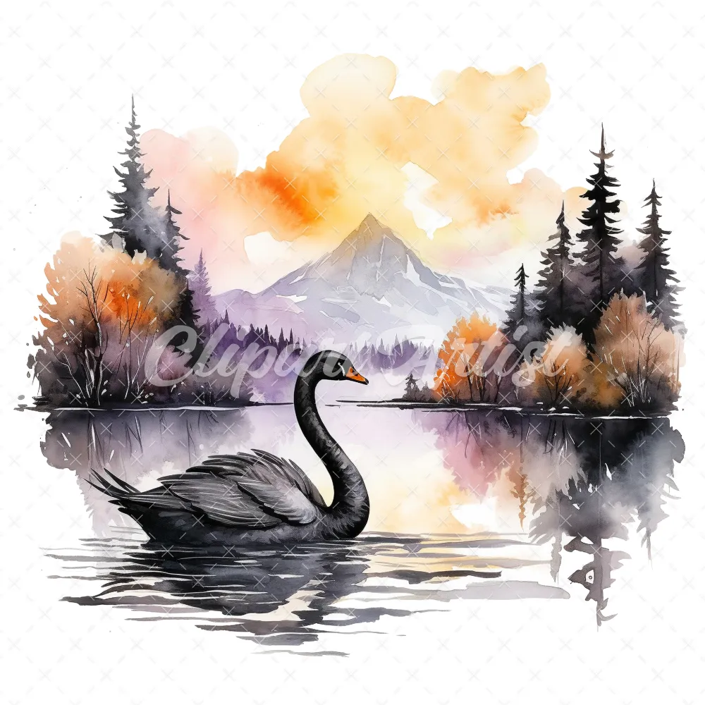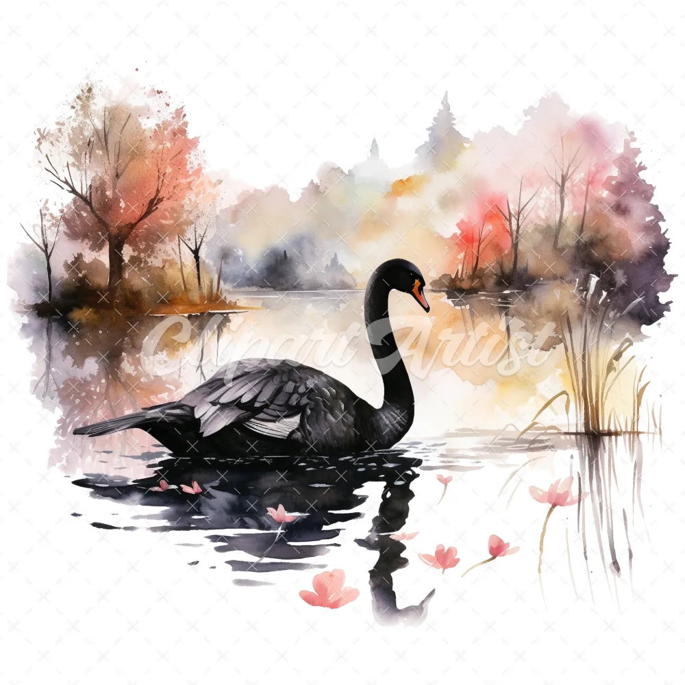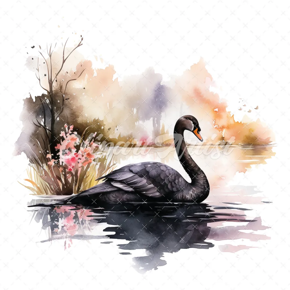 20 High-Quality Black Swan Clipart – Black swan digital watercolor JPG instant download for commercial use – Digital download
