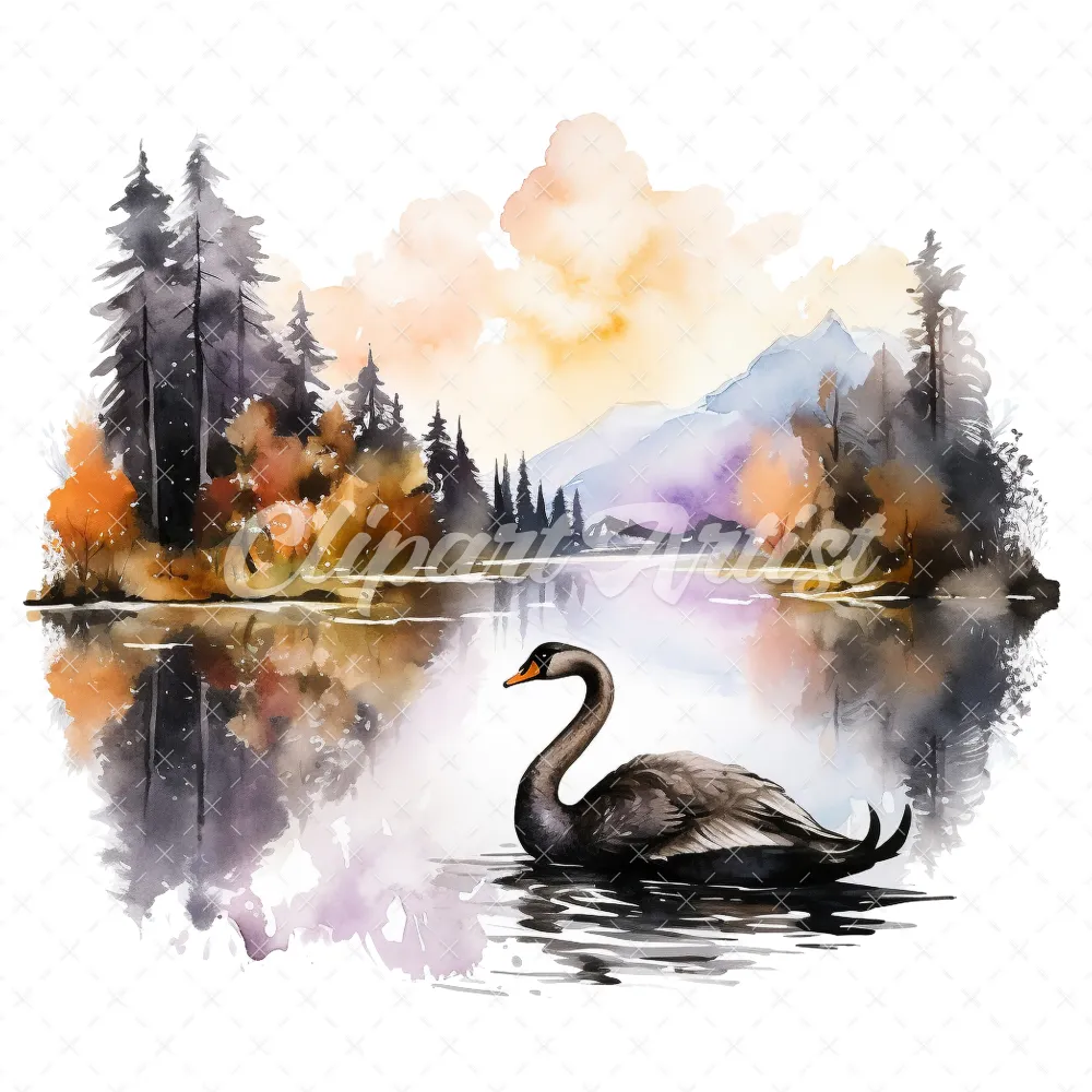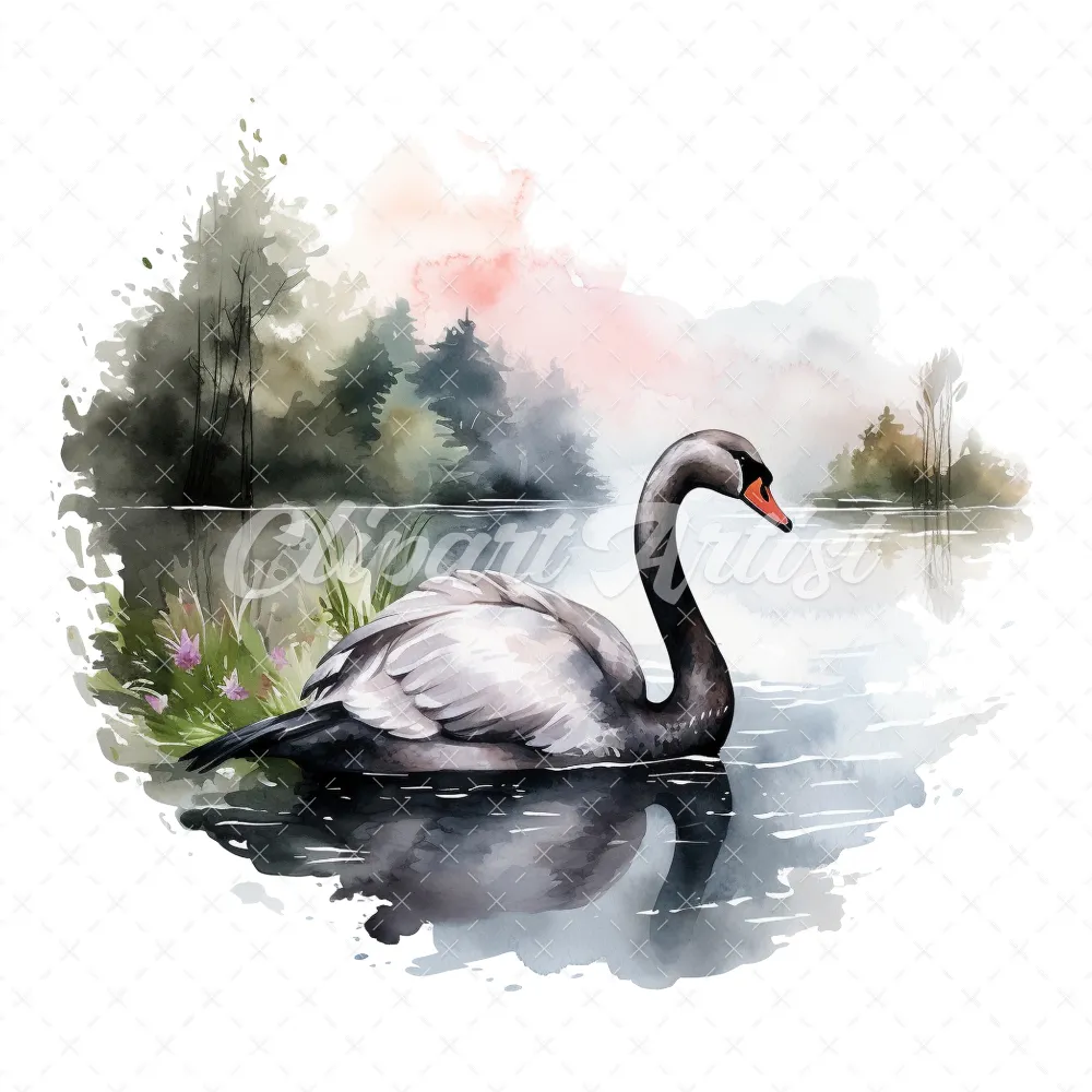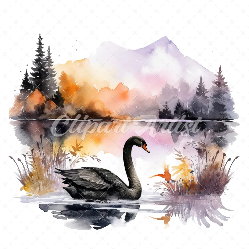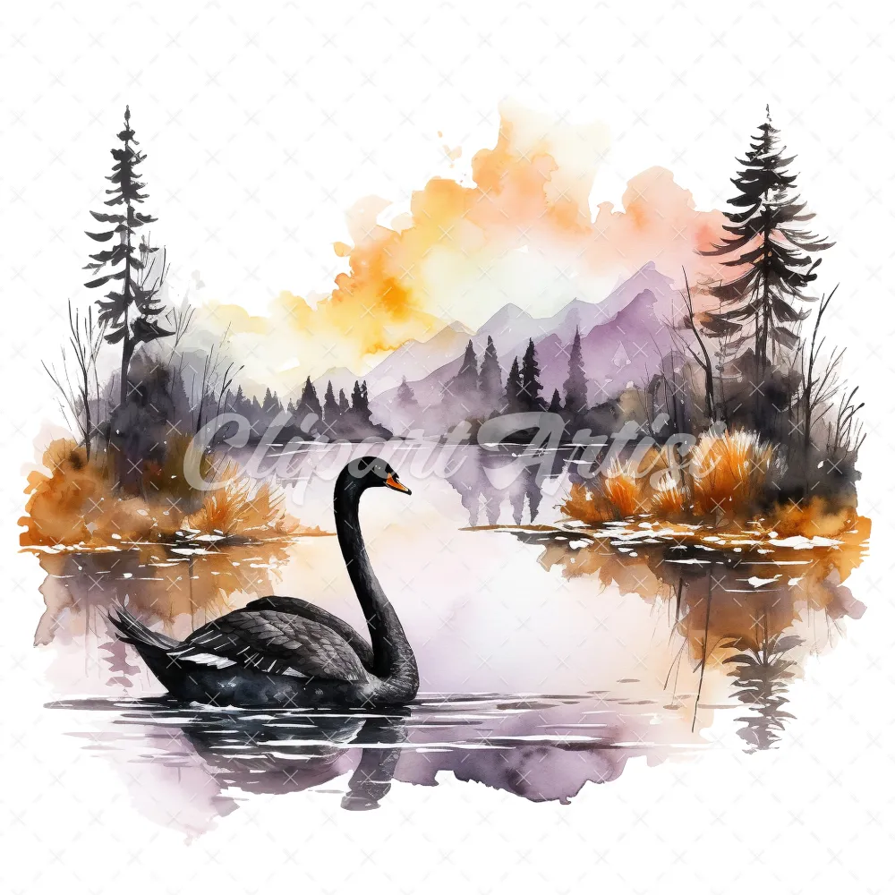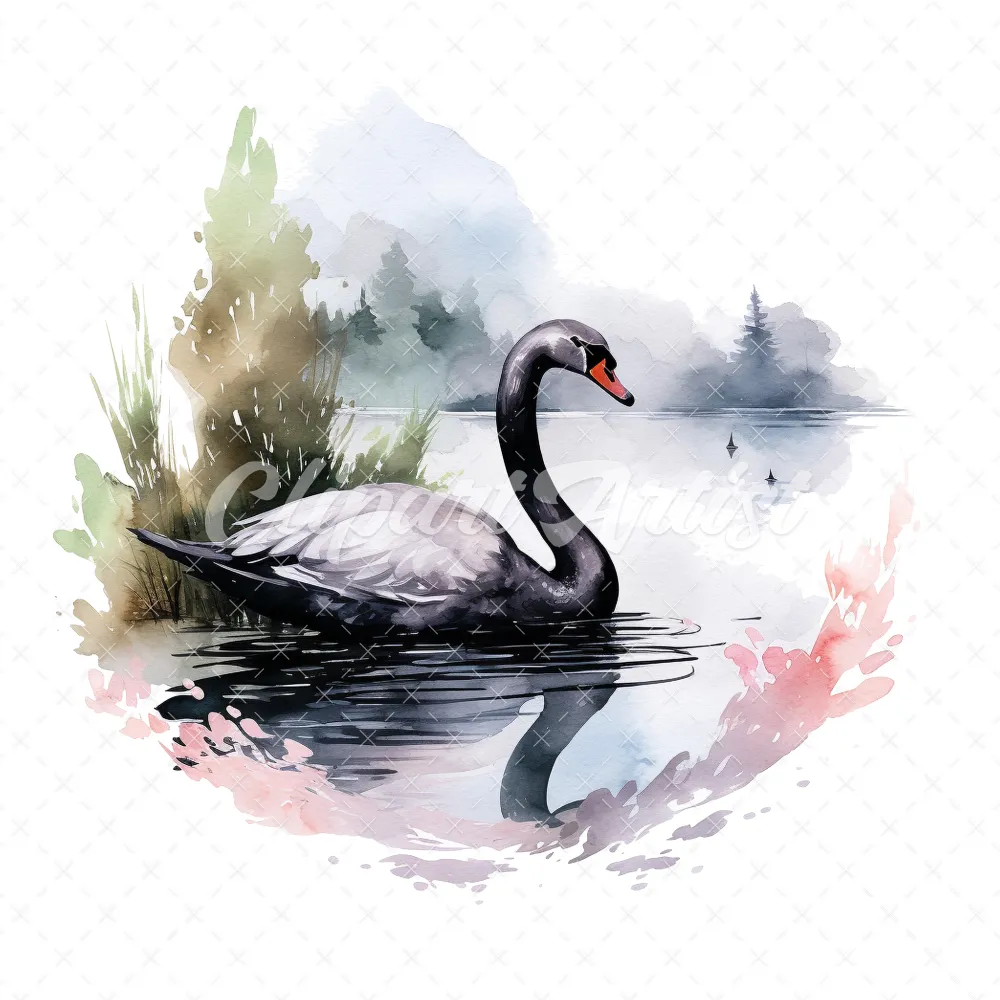 20 High-Quality Black Swan Clipart – Black swan digital watercolor JPG instant download for commercial use – Digital download