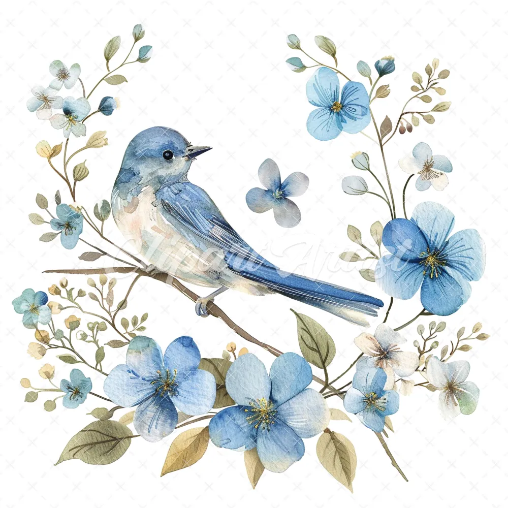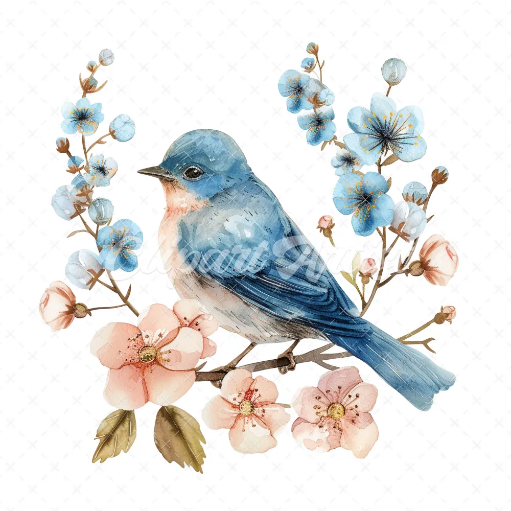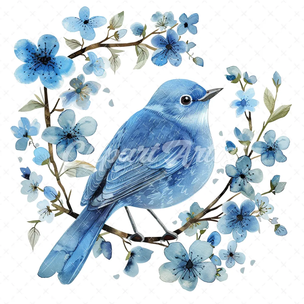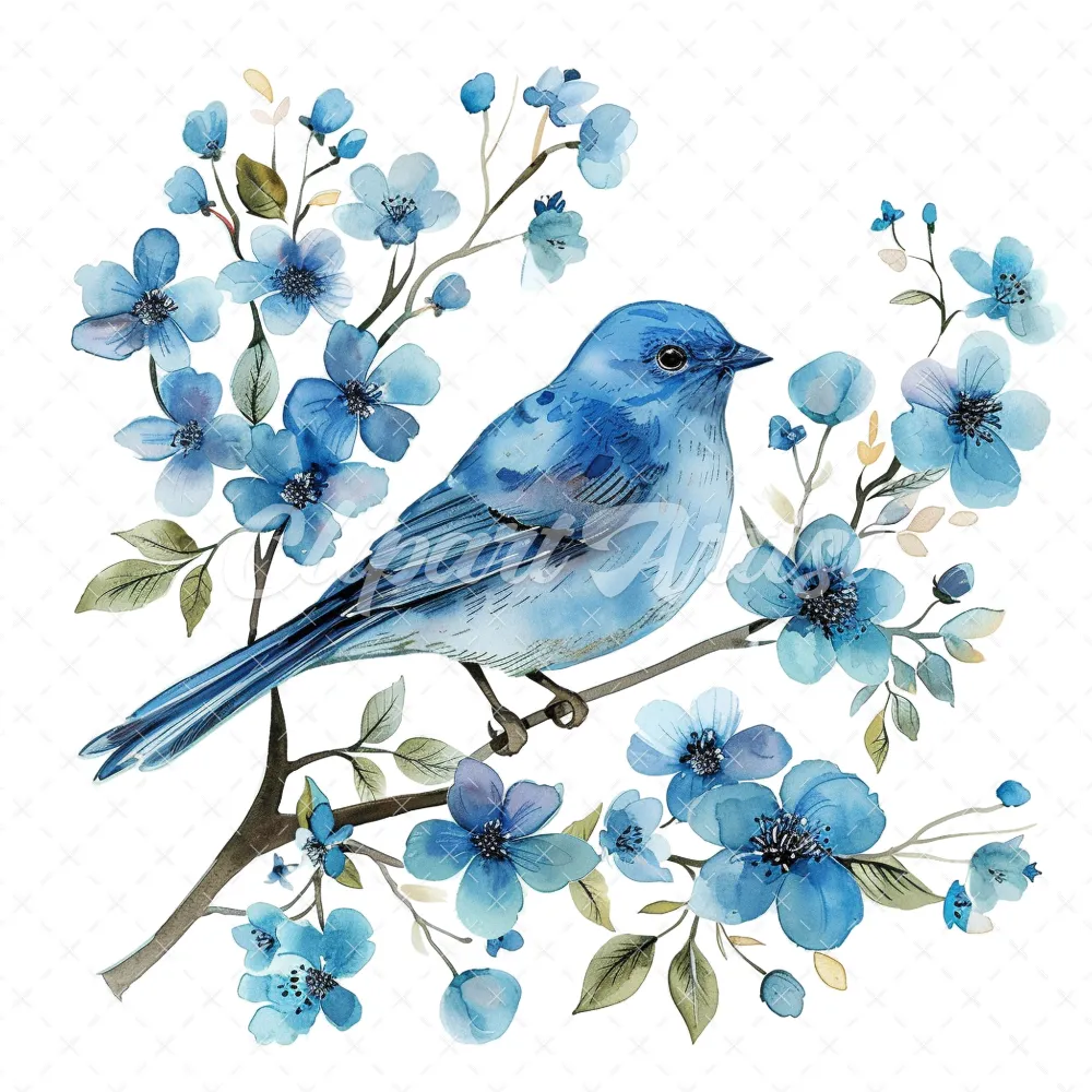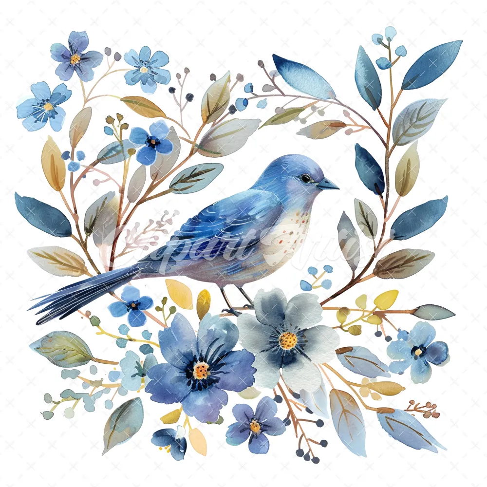 20 High-Quality Blue Bird Floral Clipart – Blue bird floral digital watercolor JPG instant download for commercial use – Digital download