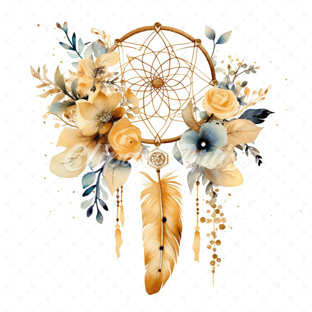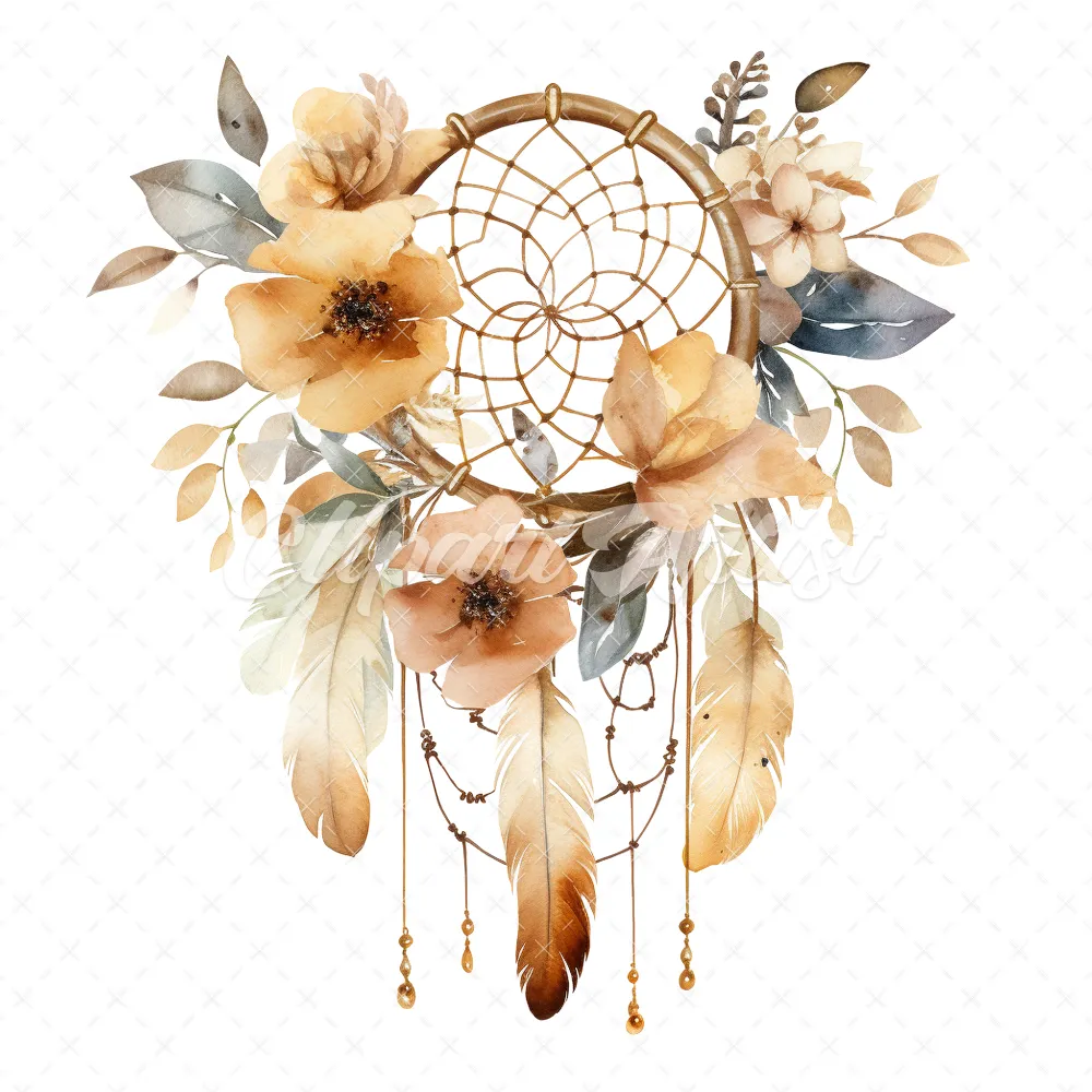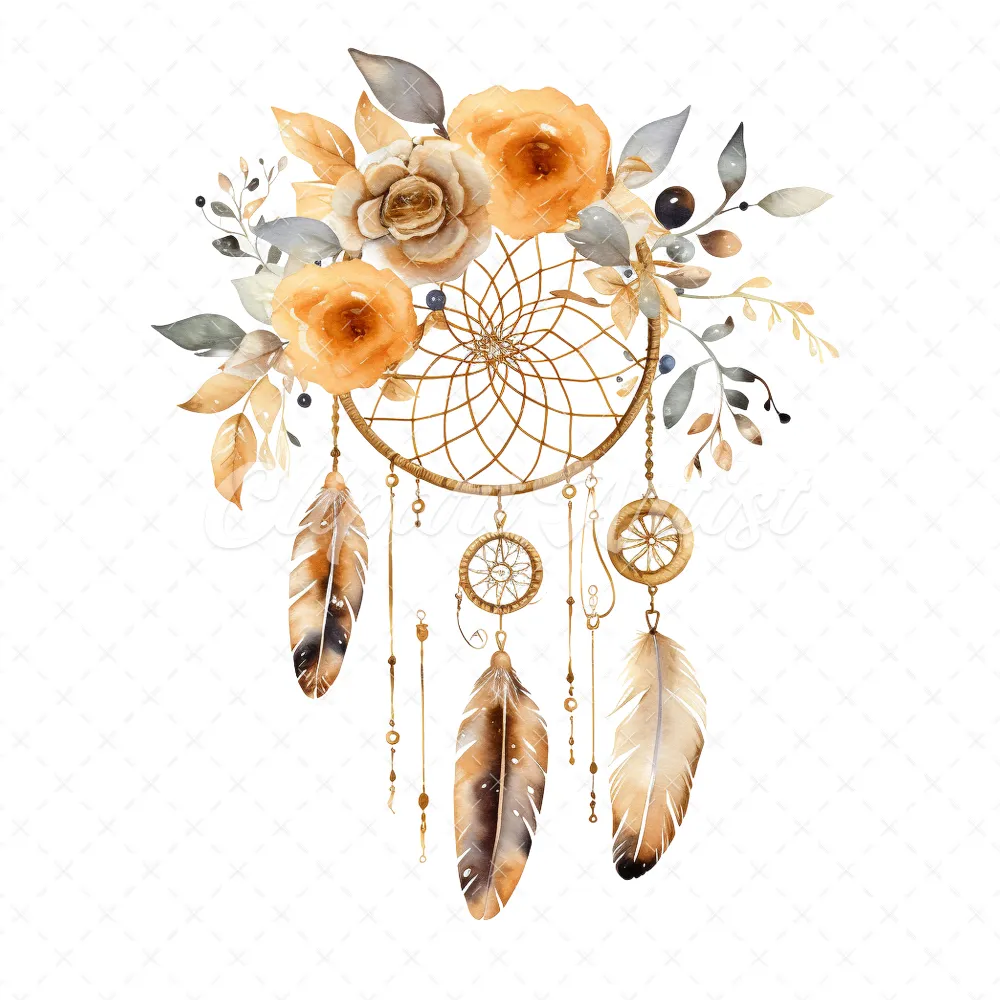 20 High-Quality Boho Dreamcatcher Clipart – Boho dreamcatcher digital watercolor JPG instant download for commercial use – Digital download