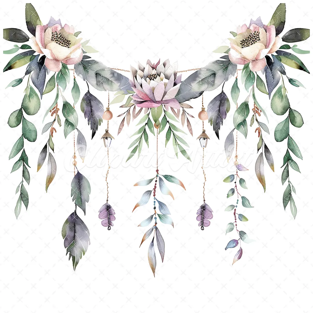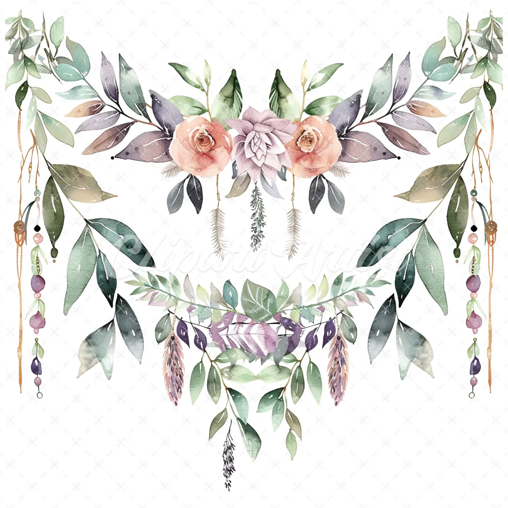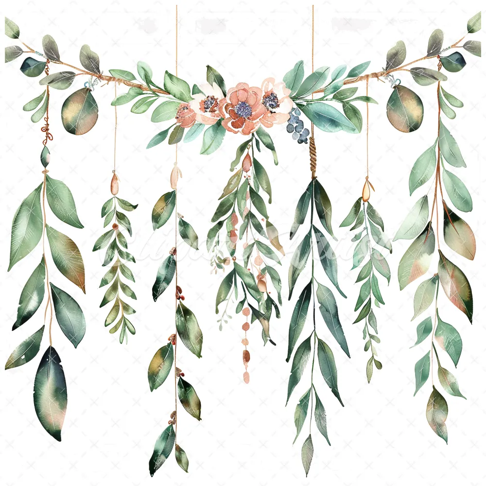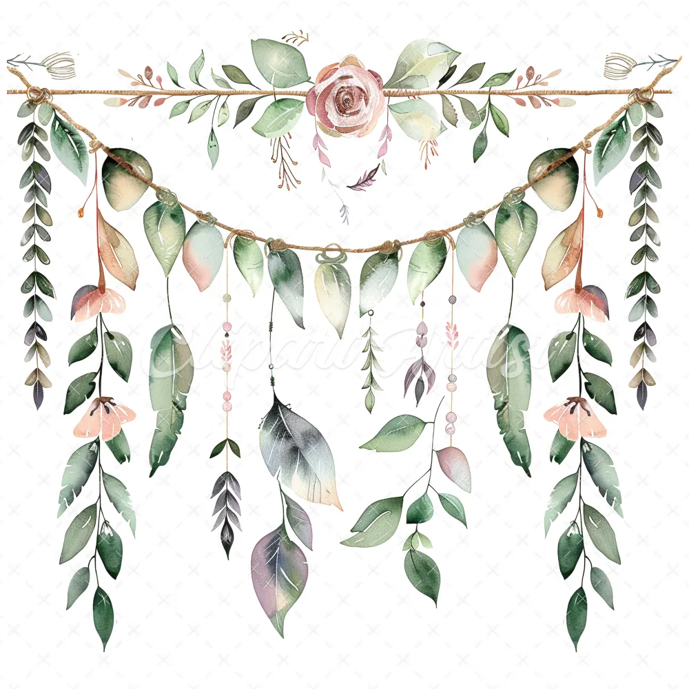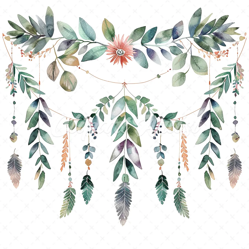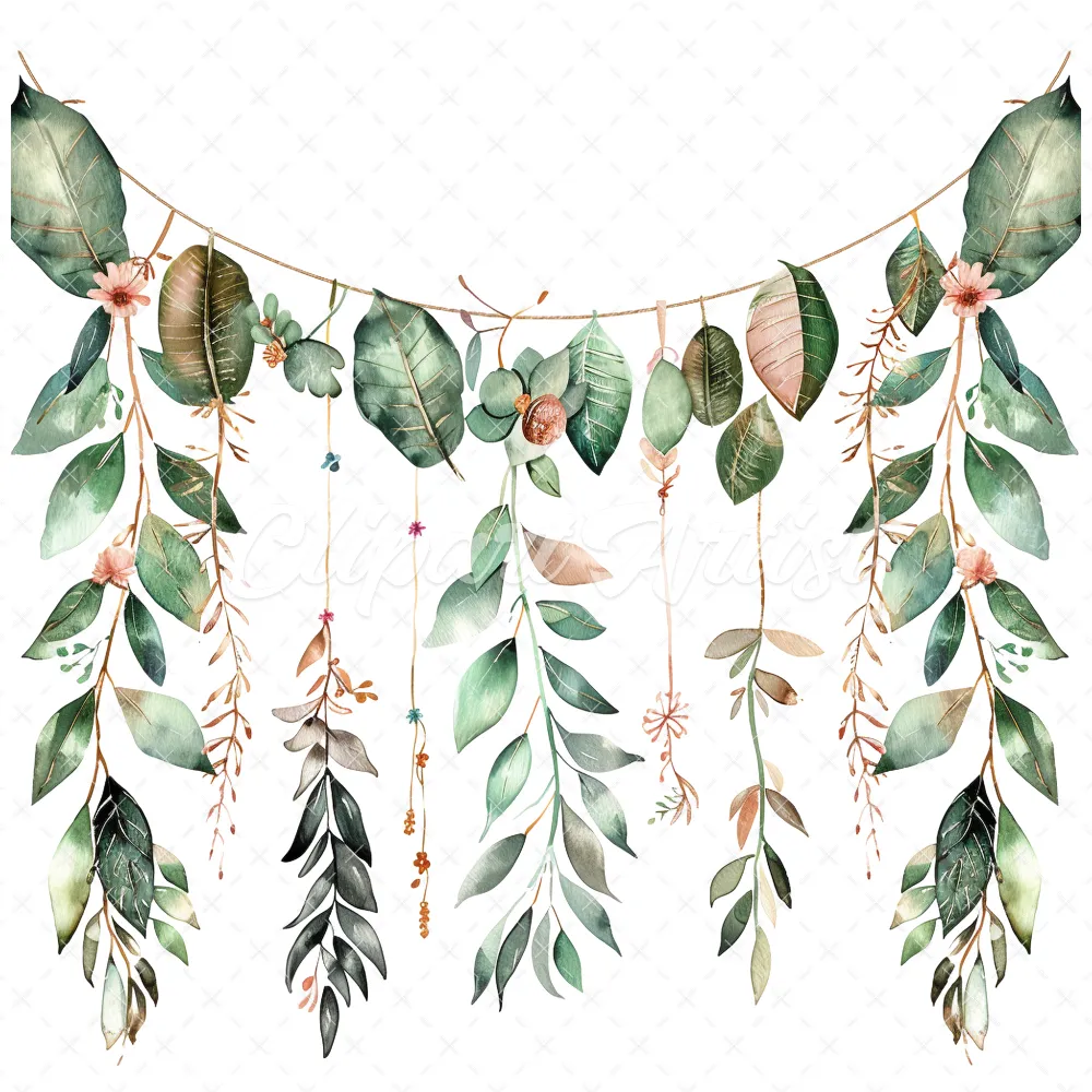 20 High-Quality Boho Leaves Garland Clipart – Boho leaf garland digital watercolor JPG instant download for commercial use -Digital download