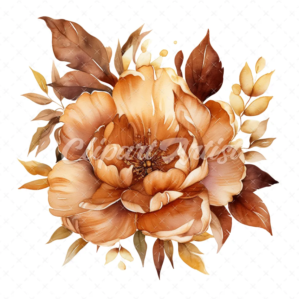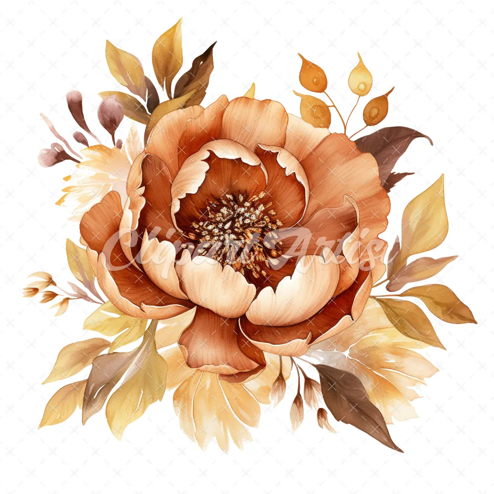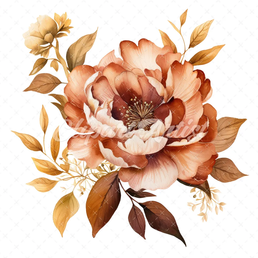 20 High-Quality Bronze Peony Boutiques Clipart – Bronze peony digital watercolor JPG instant download for commercial use – Digital download