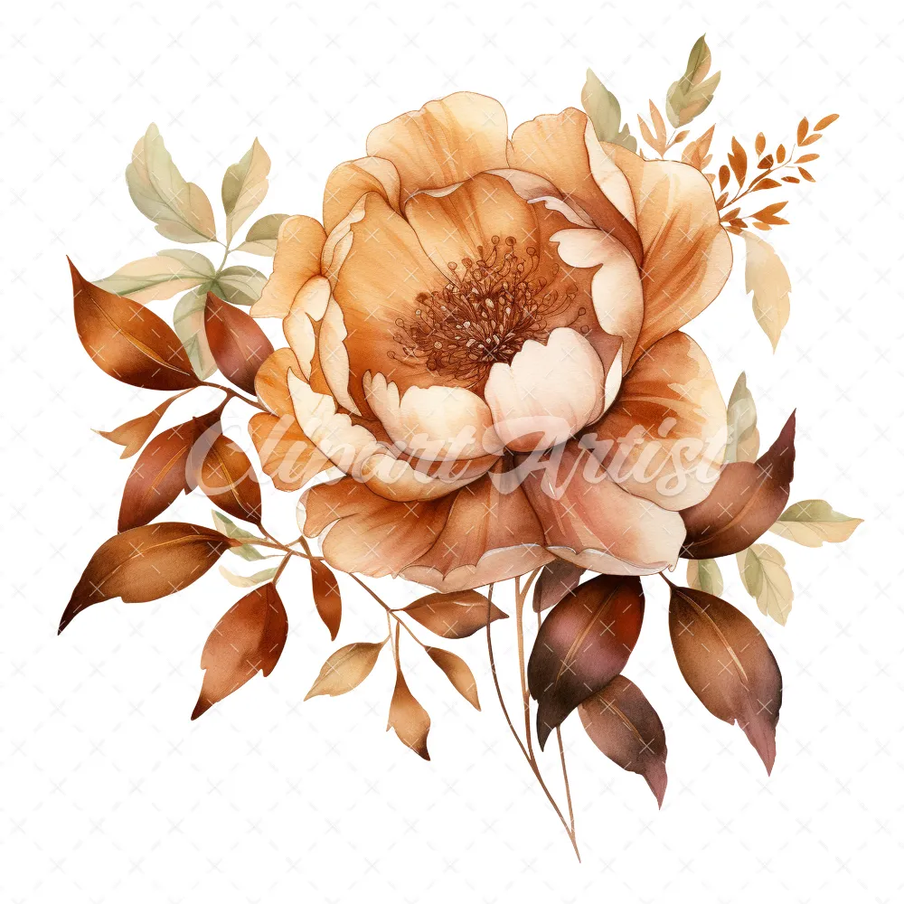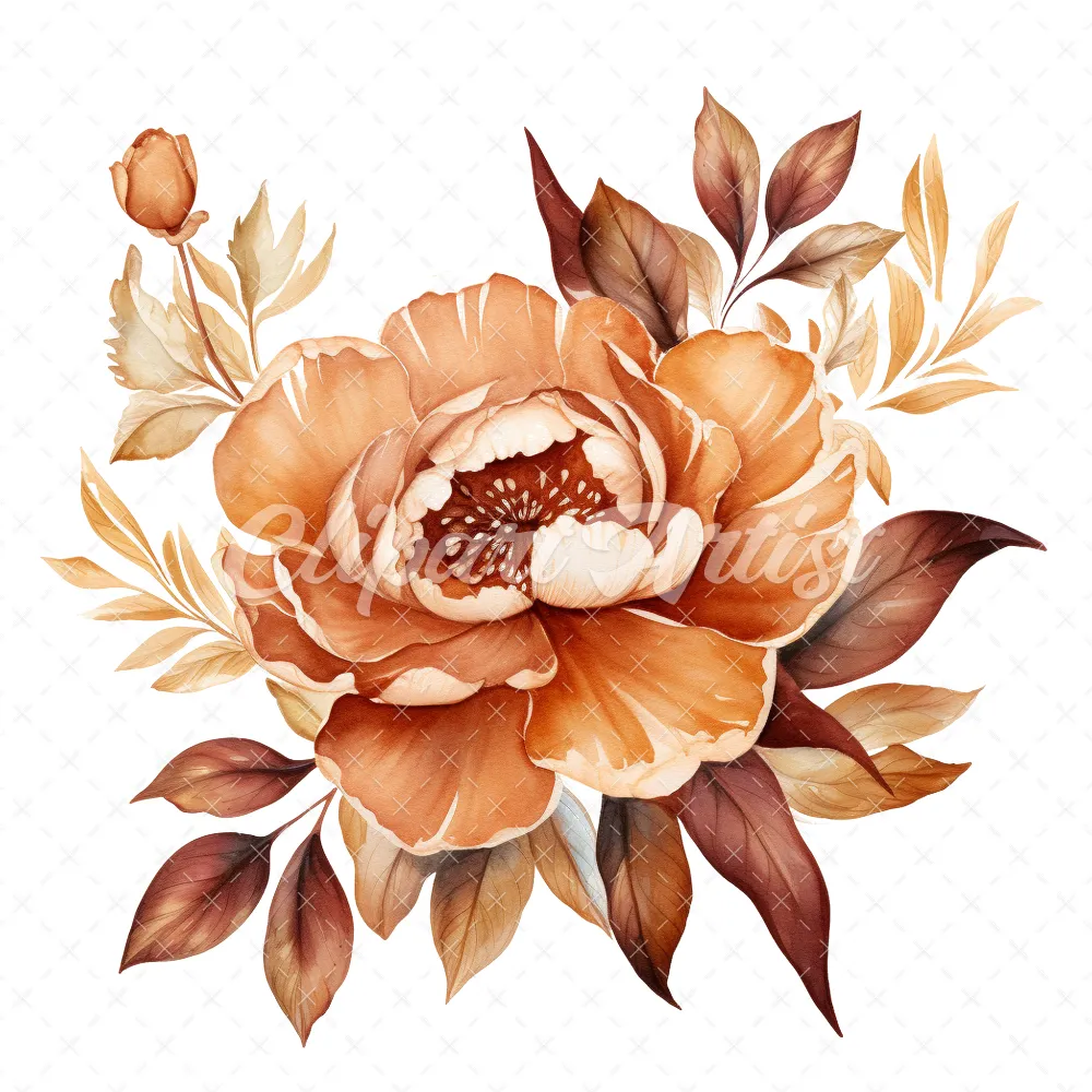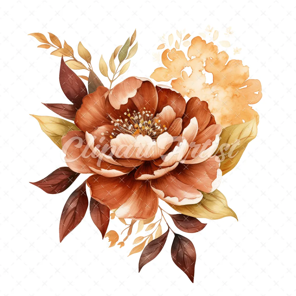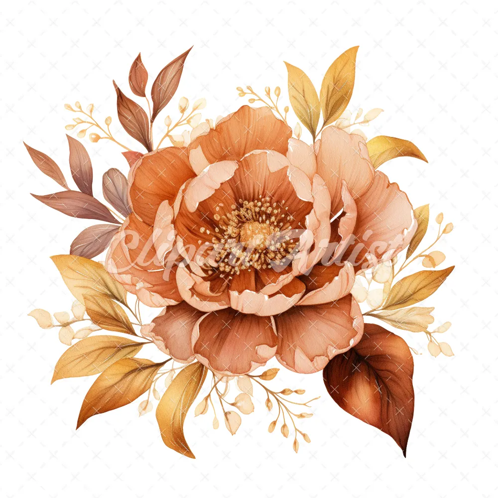 20 High-Quality Bronze Peony Boutiques Clipart – Bronze peony digital watercolor JPG instant download for commercial use – Digital download