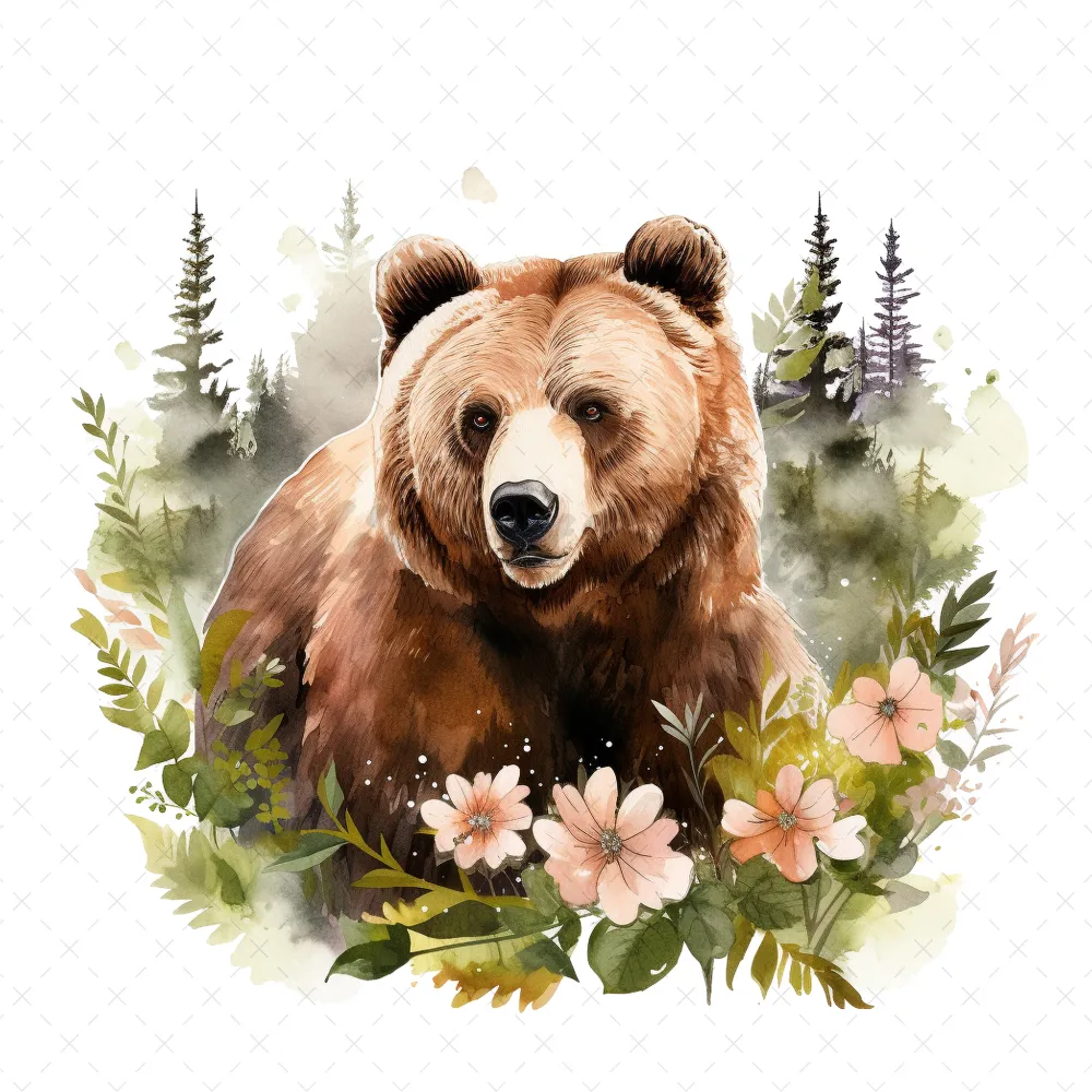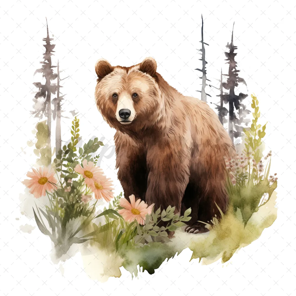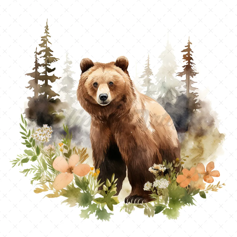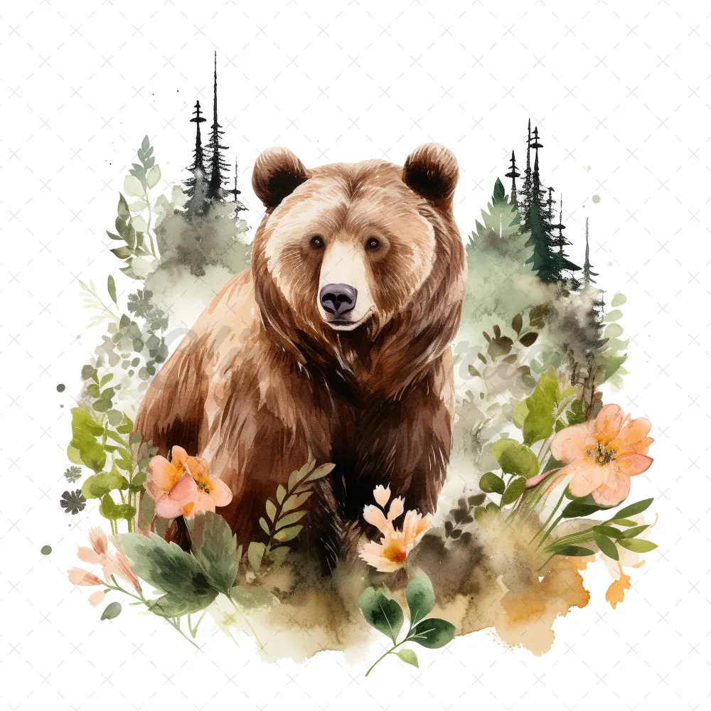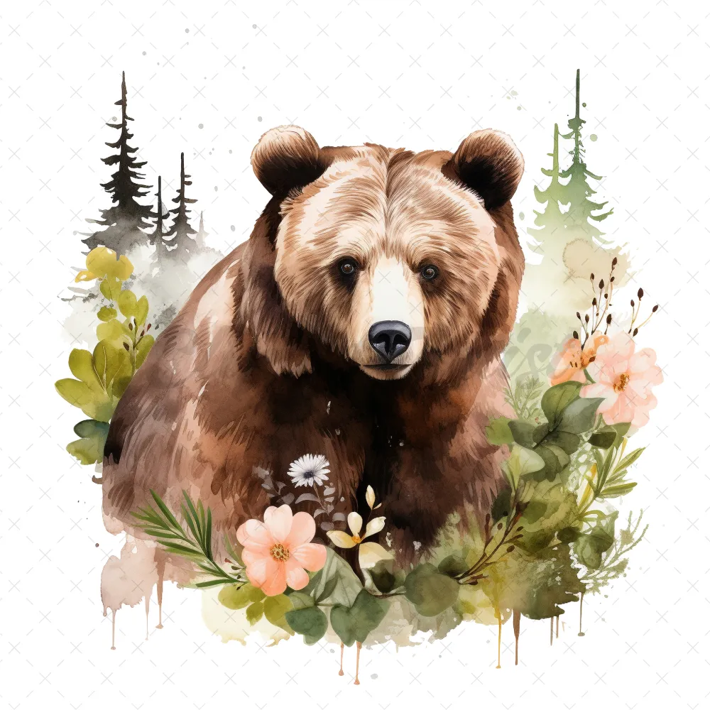 20 High-Quality Brown Bear Clipart – Brown bear digital watercolor JPG instant download for commercial use – Digital download