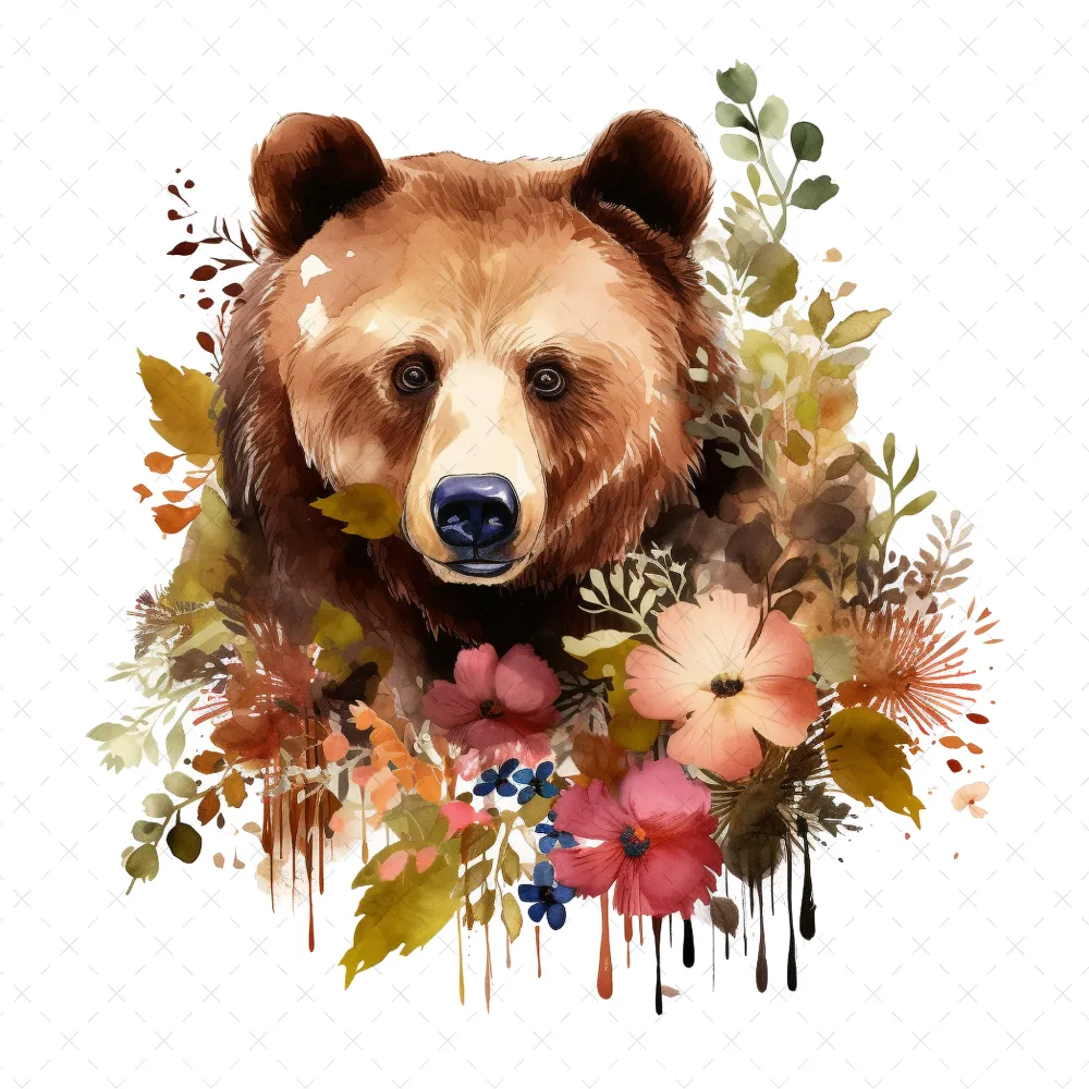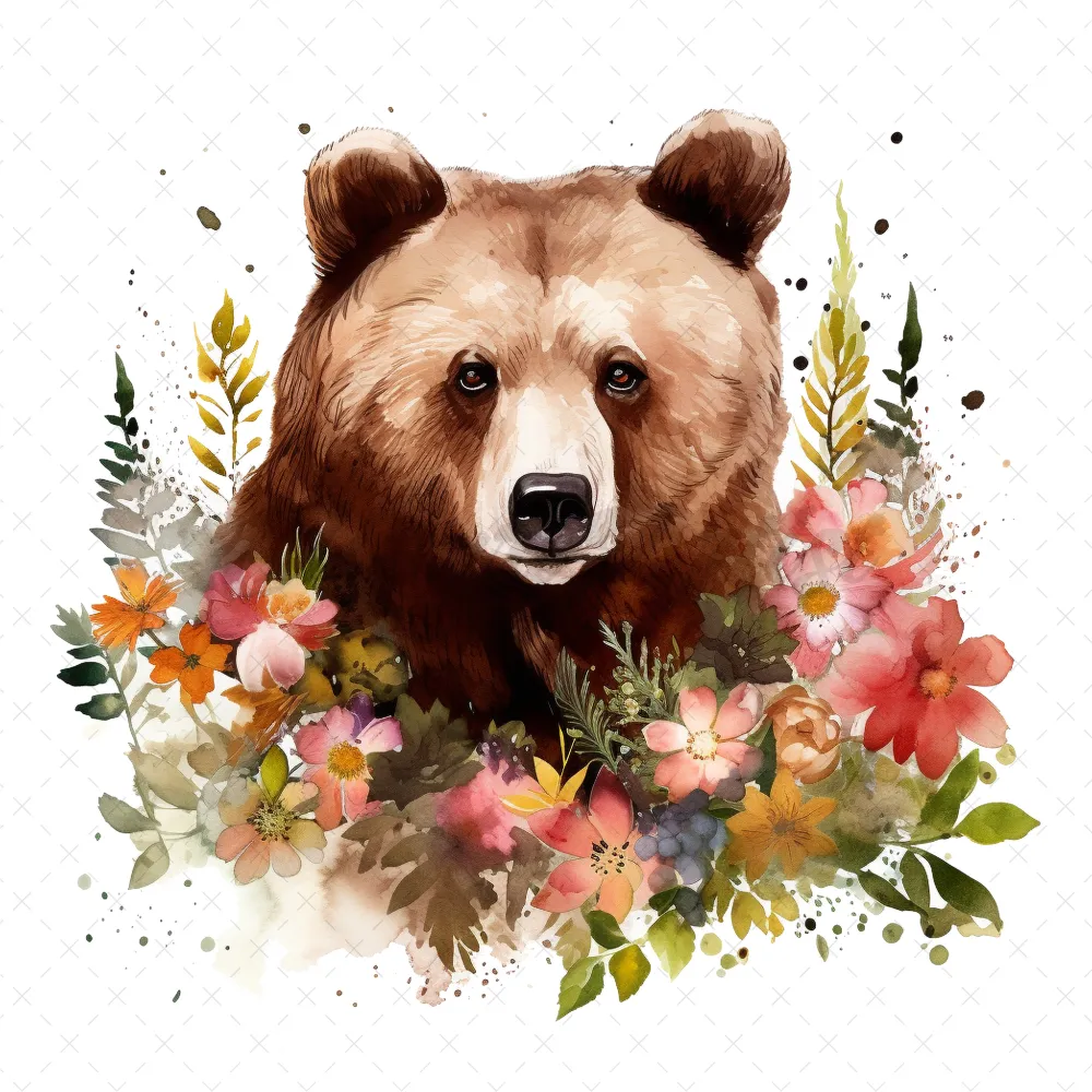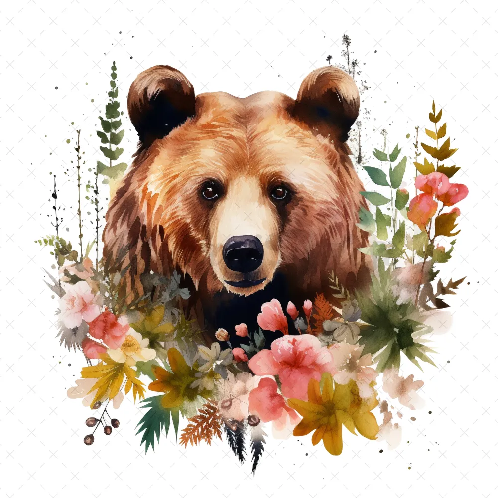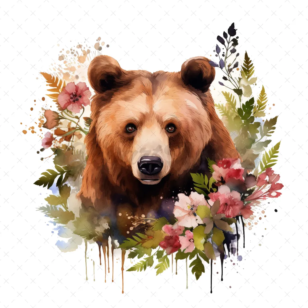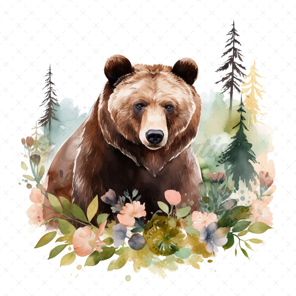20 High-Quality Brown Bear Clipart – Brown bear digital watercolor JPG instant download for commercial use – Digital download