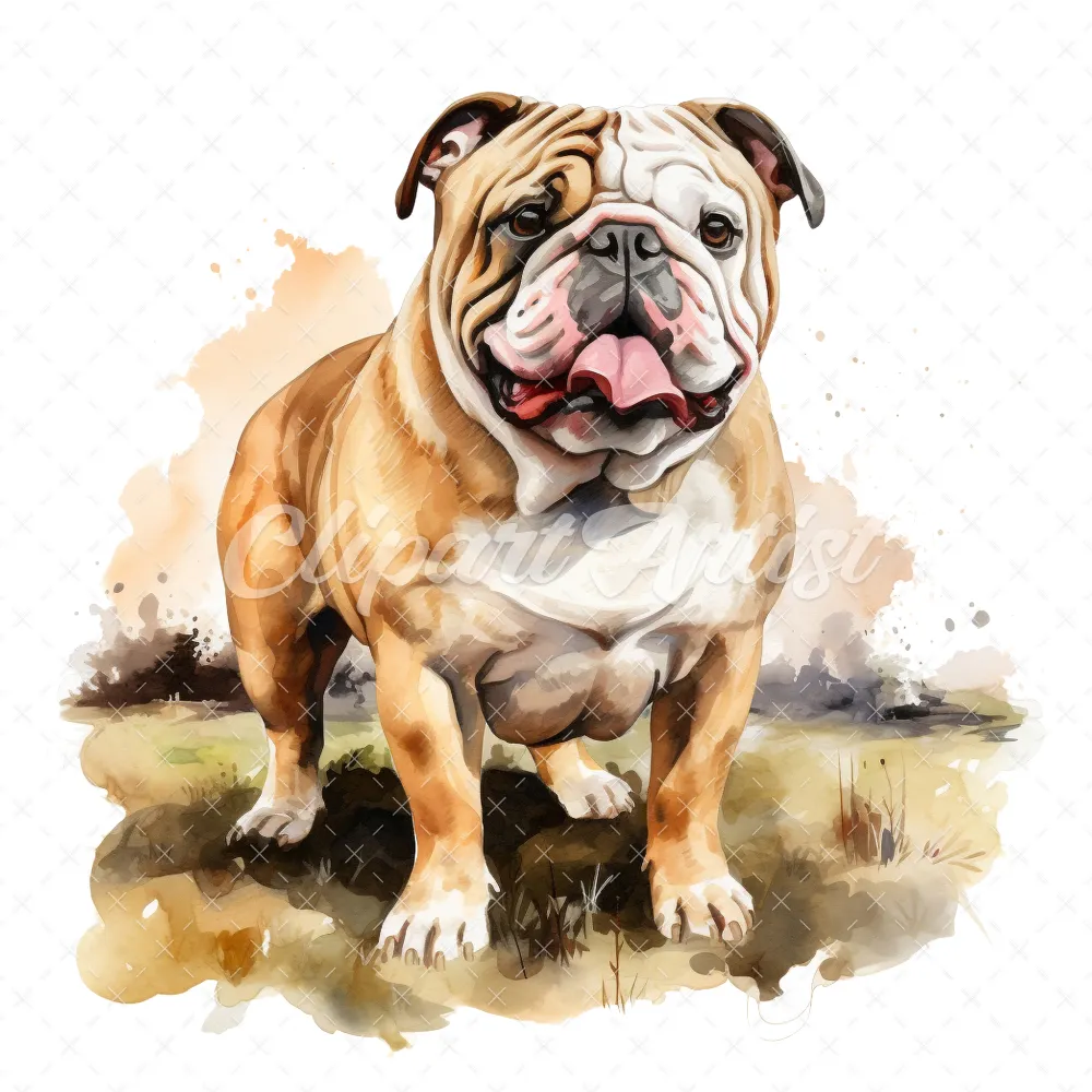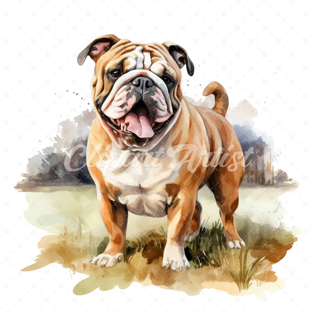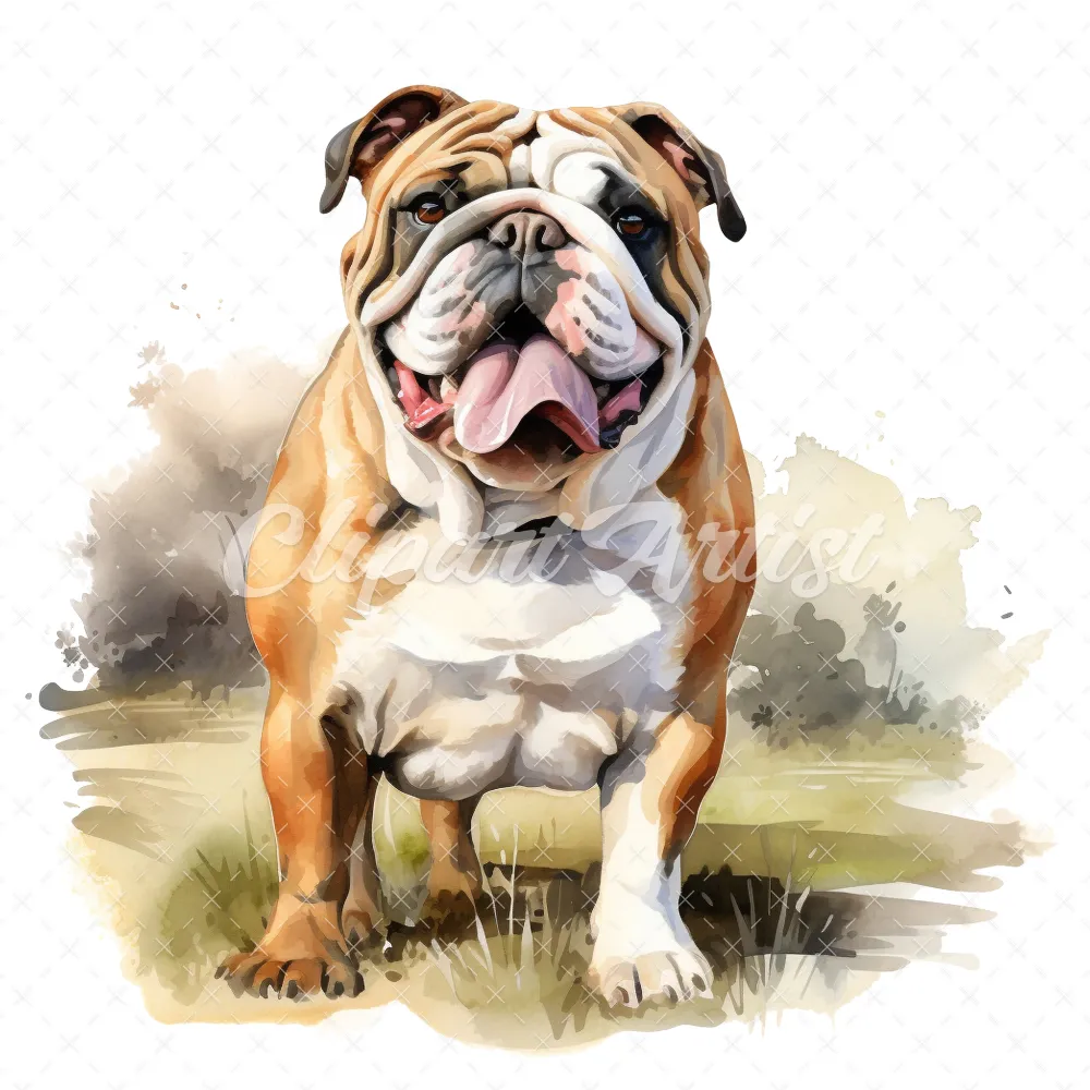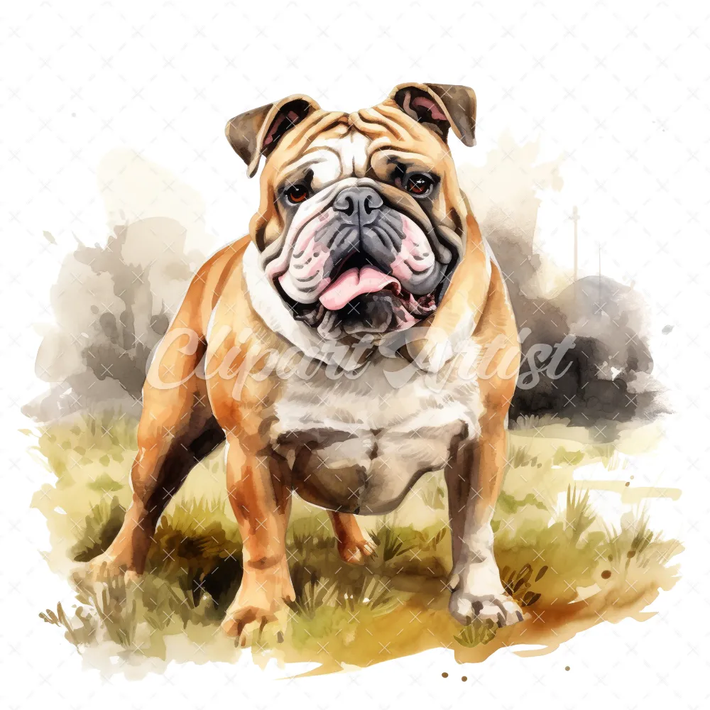 20 High-Quality Bulldog Clipart – Bulldog dog digital watercolor JPG instant download for commercial use – Digital download