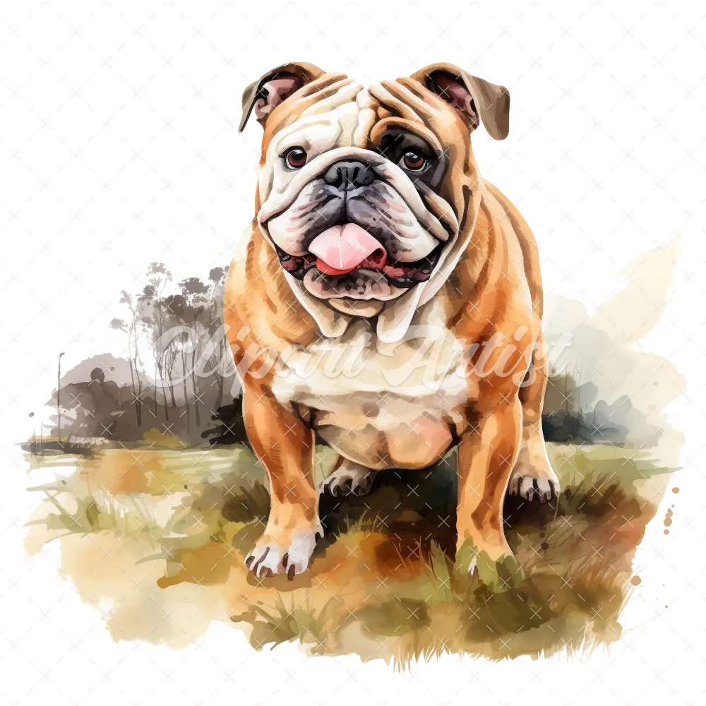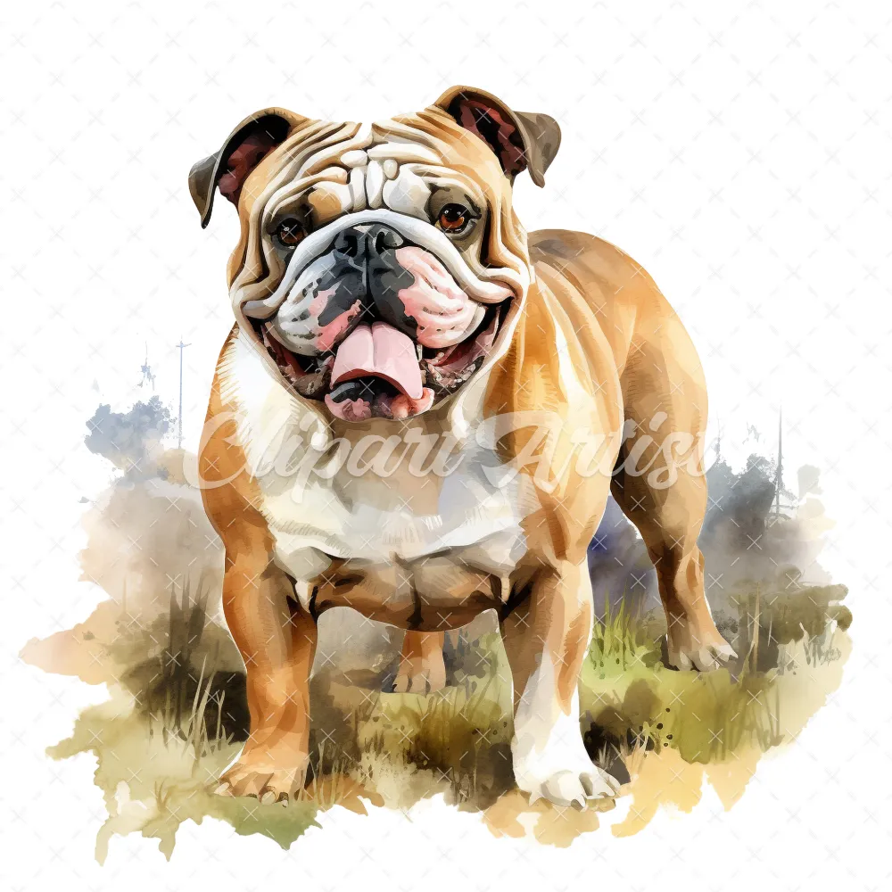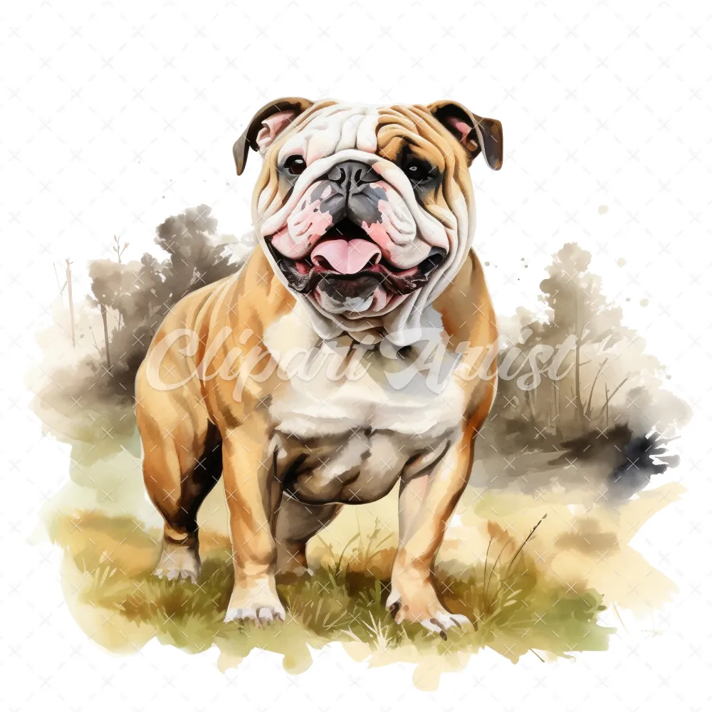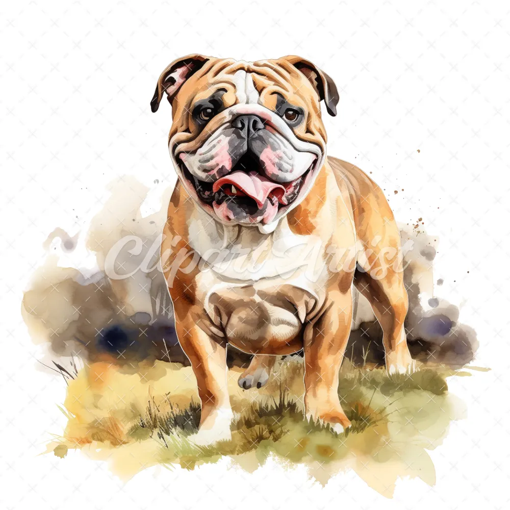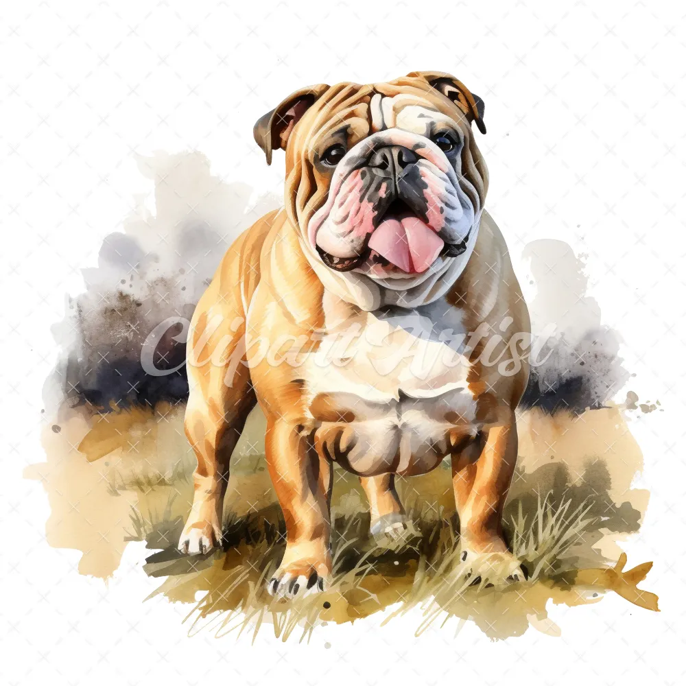 20 High-Quality Bulldog Clipart – Bulldog dog digital watercolor JPG instant download for commercial use – Digital download
