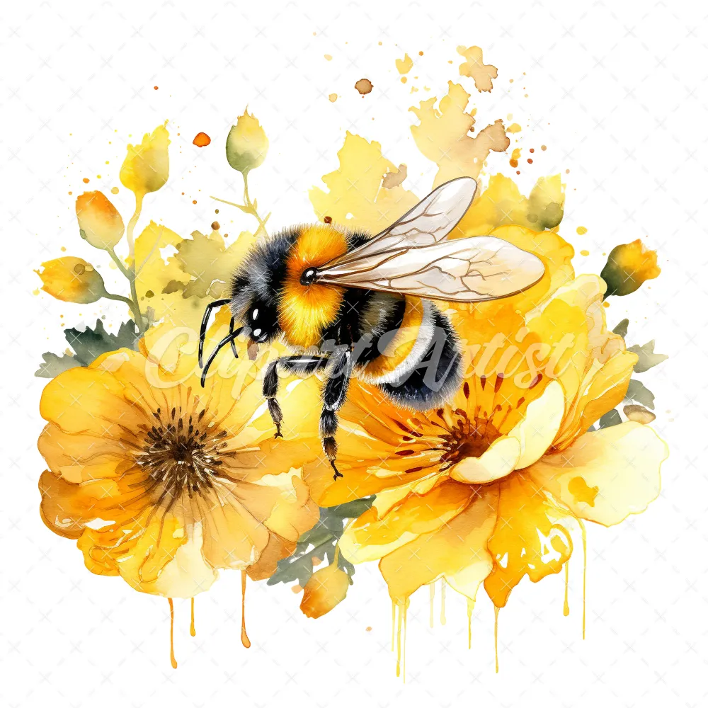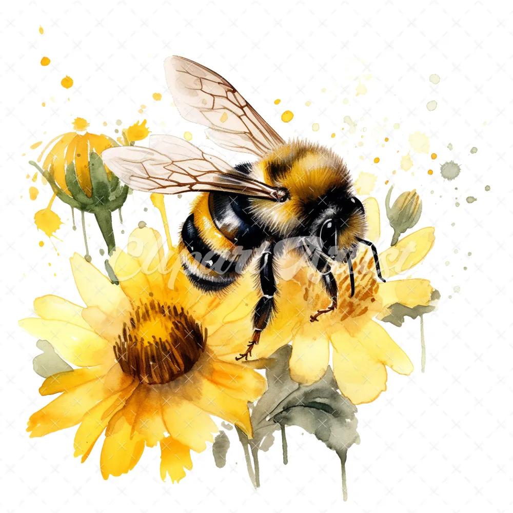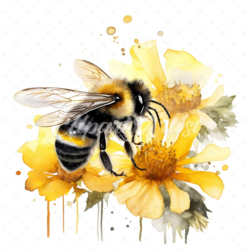 20 High-Quality Bumble Bee Clipart – Bumble bee digital watercolor JPG instant download for commercial use – Digital download