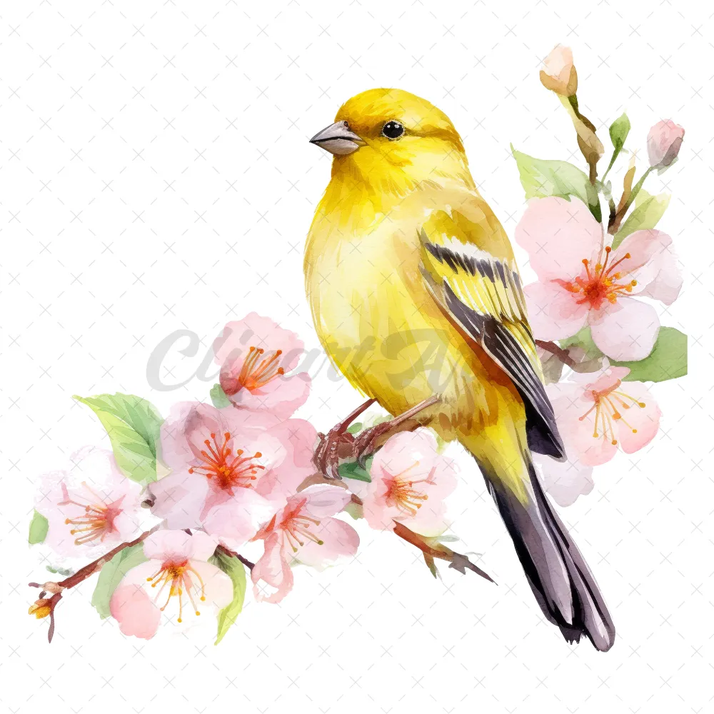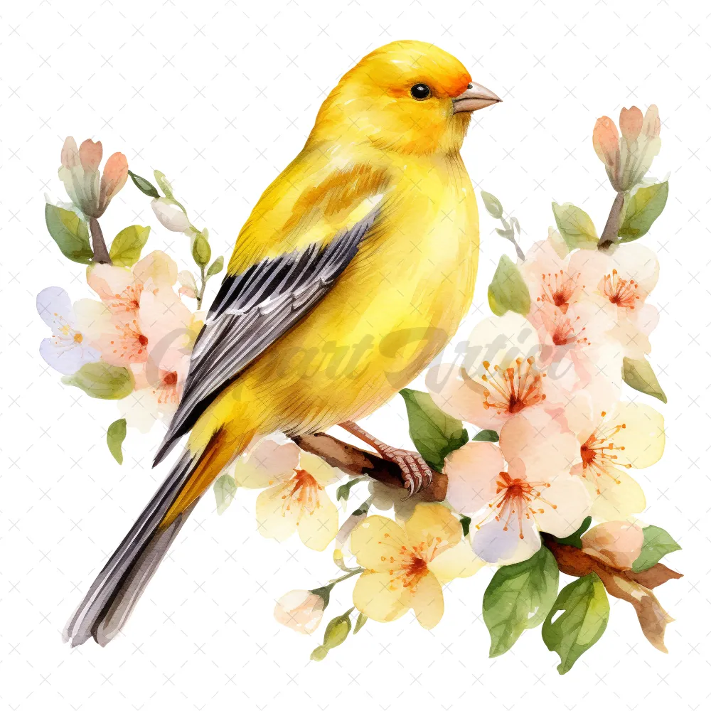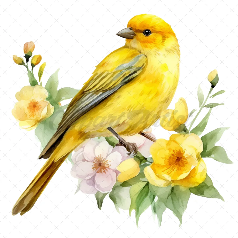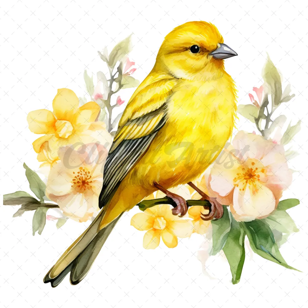 20 High-Quality Canary Clipart – Canary digital watercolor JPG instant download for commercial use – Digital download