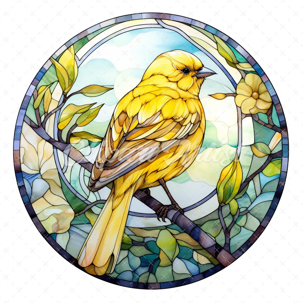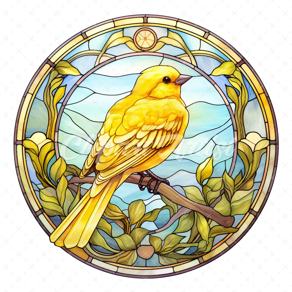 20 High-Quality Canary Stained Glass Clipart – Canary stained digital watercolor JPG instant download for commercial use – Digital download