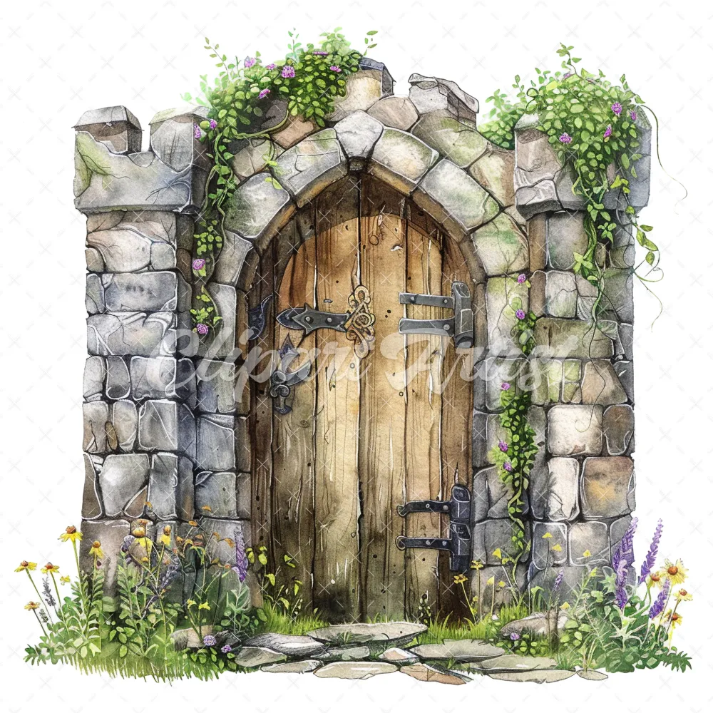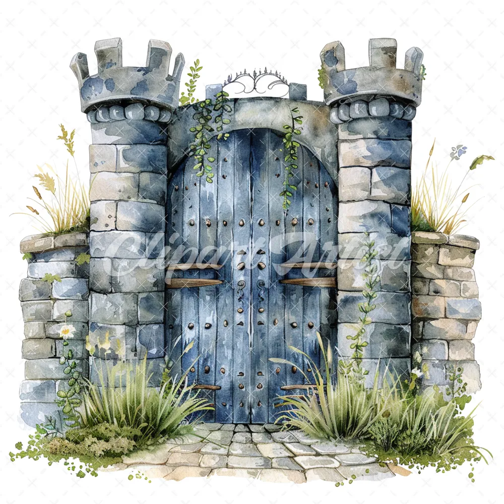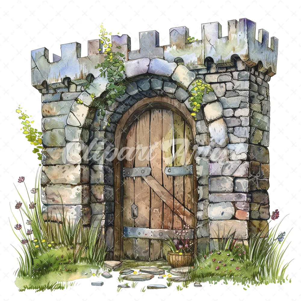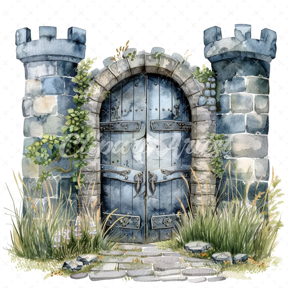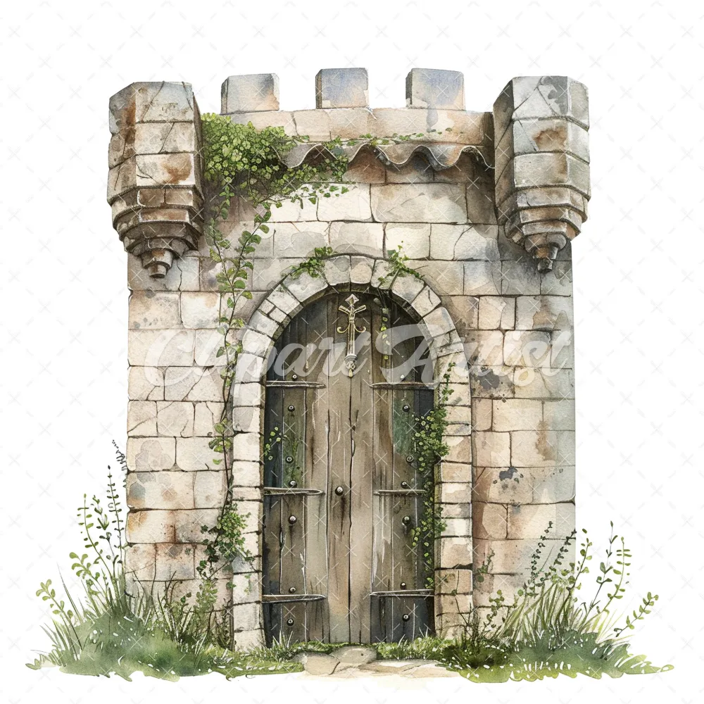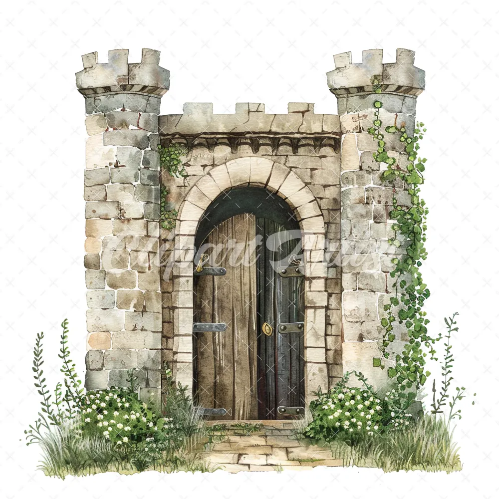 20 High-Quality Castle Entrance Clipart – Castle entrance digital watercolor JPG instant download for commercial use – Digital download