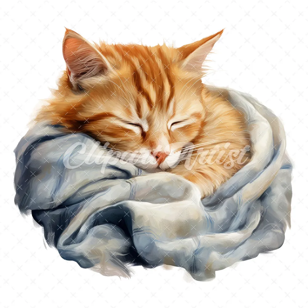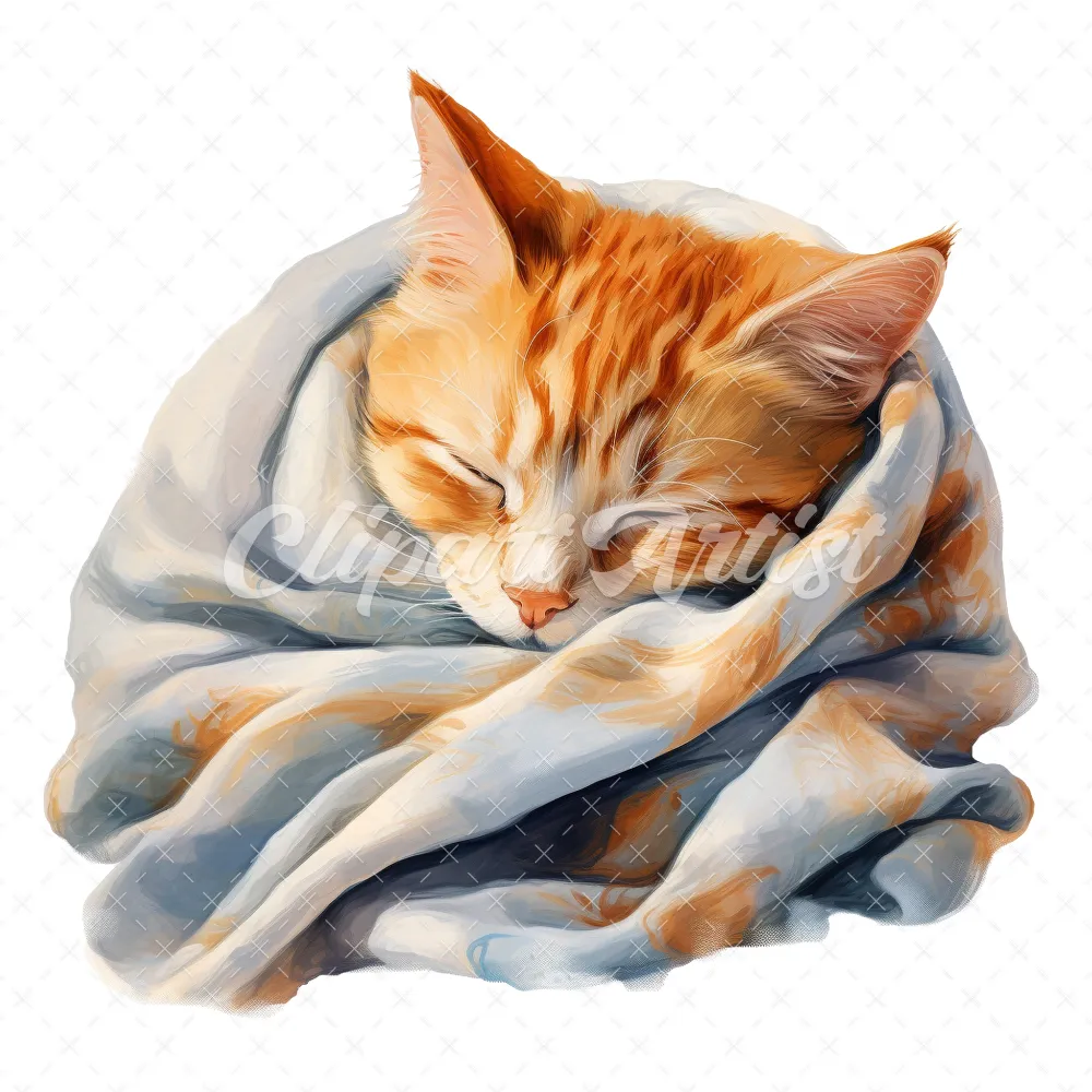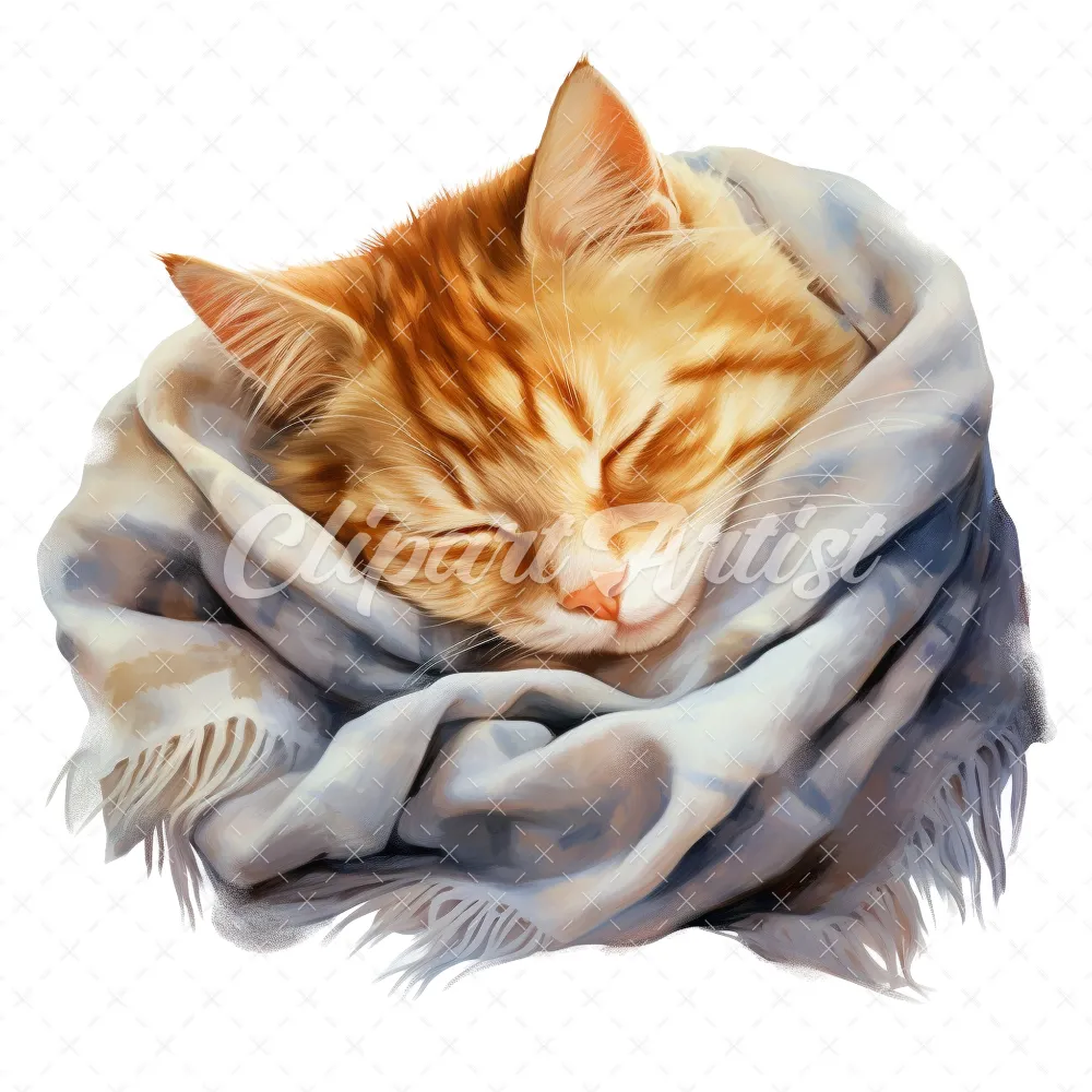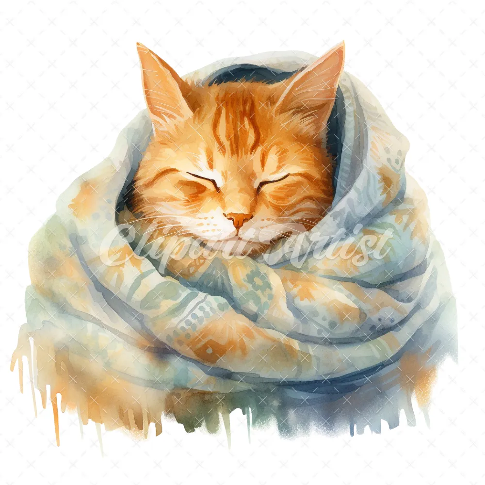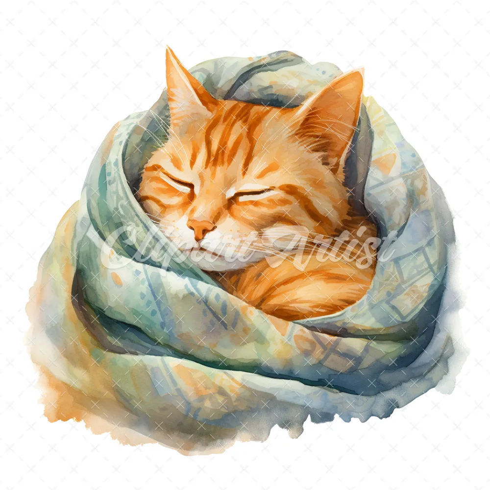 20 High-Quality Cat Sleeping in Shawl Clipart – Sleeping Cat digital watercolor JPG instant download for commercial use – Digital download