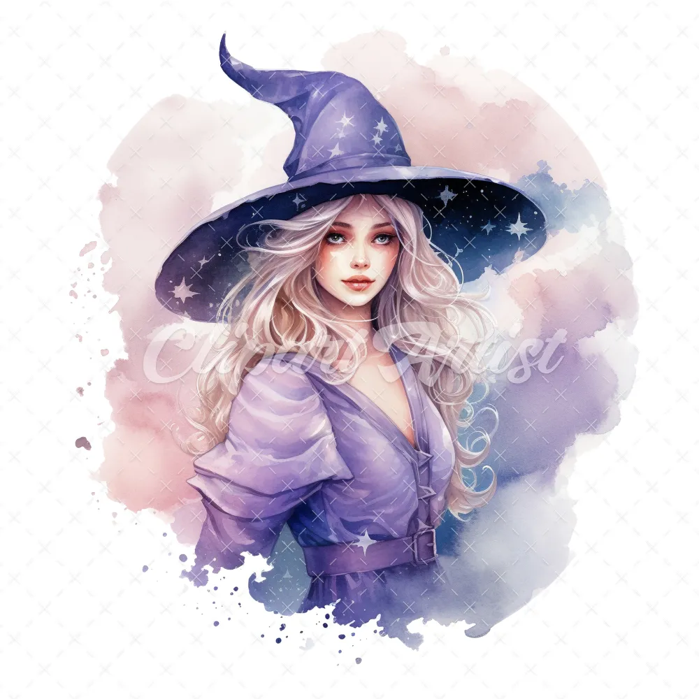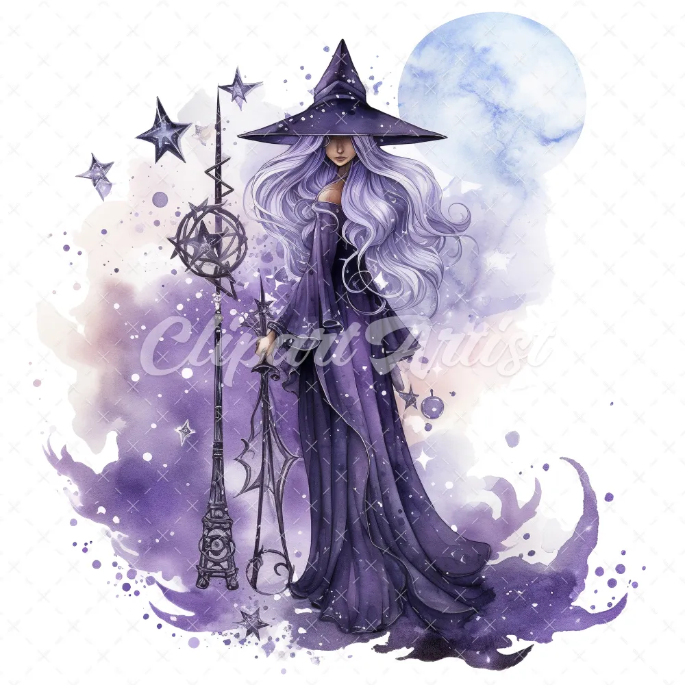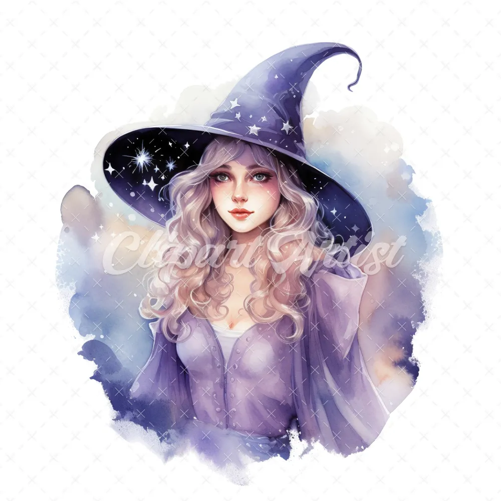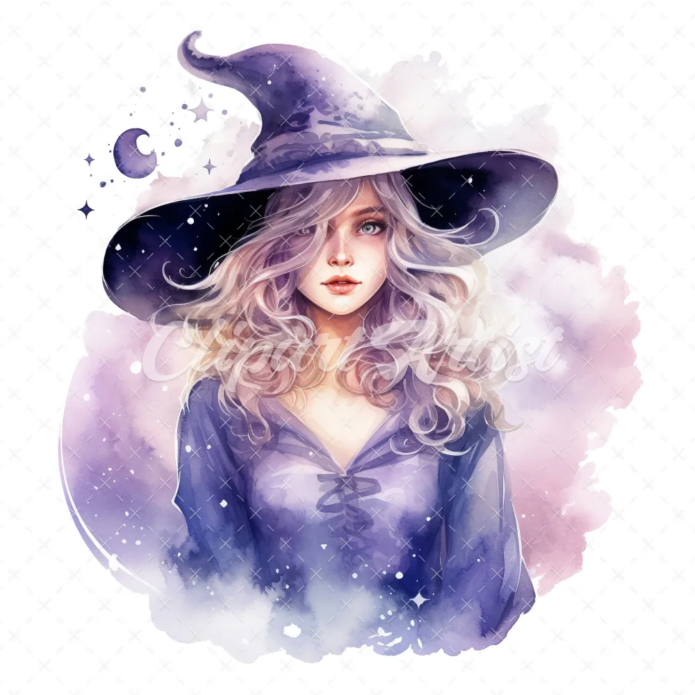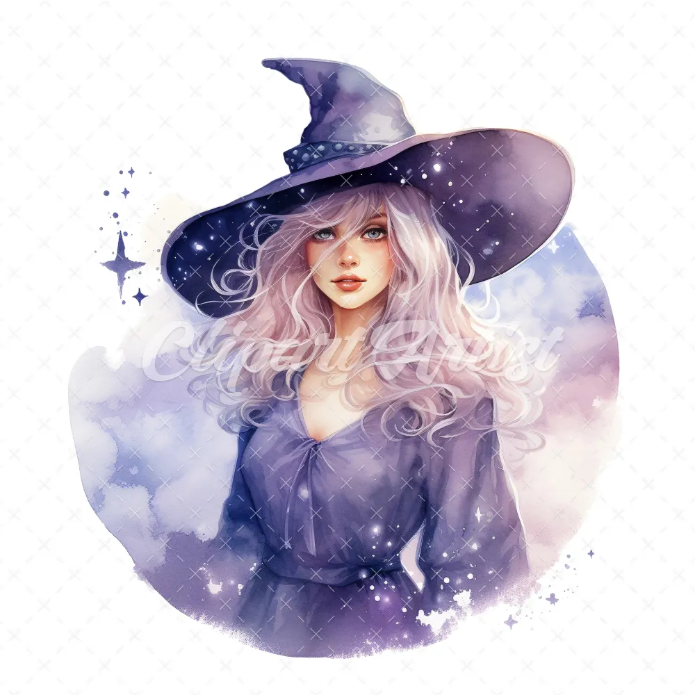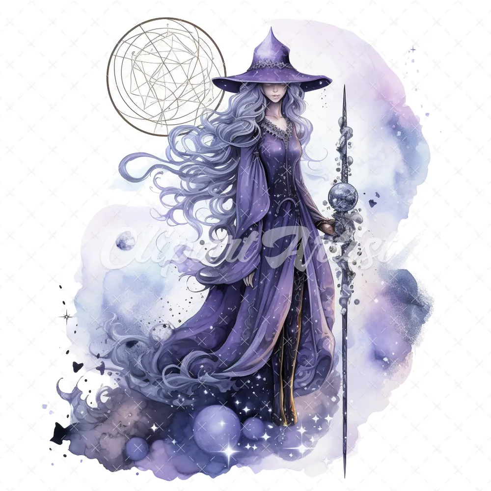 20 High-Quality Celestial Witches Clipart – Celestial witches digital watercolor JPG instant download for commercial use – Digital download