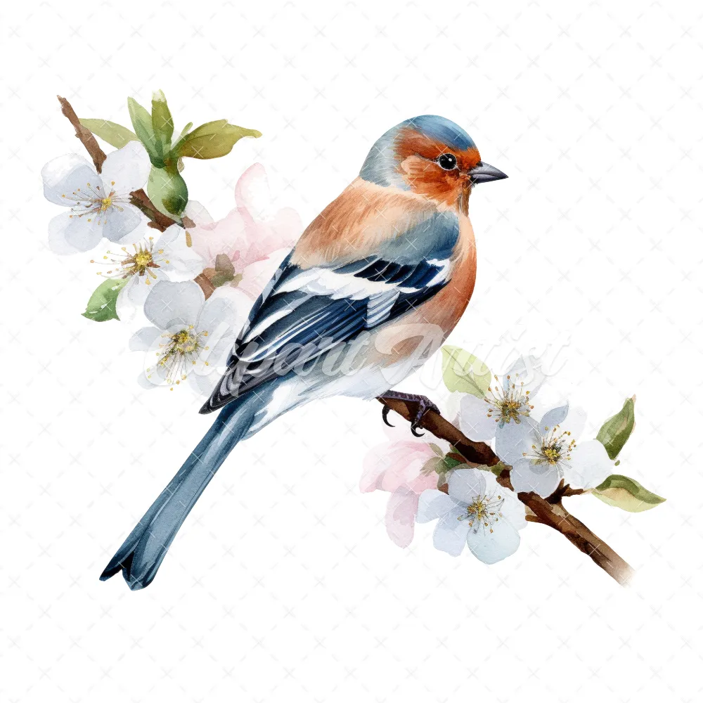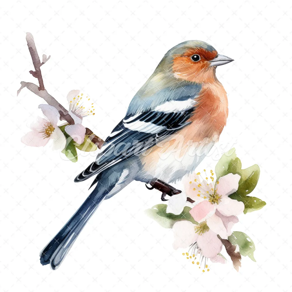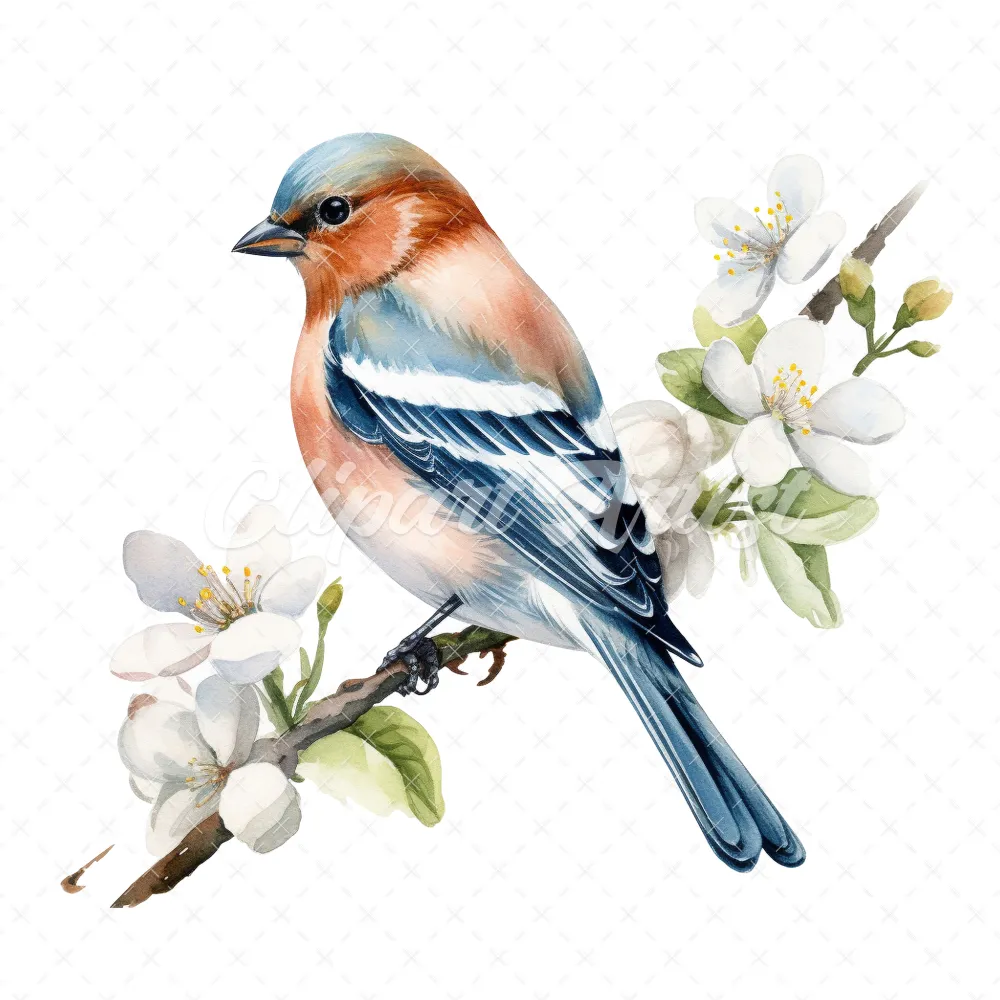 20 High-Quality Chaffinch Clipart – Chaffinch digital watercolor JPG instant download for commercial use – Digital download