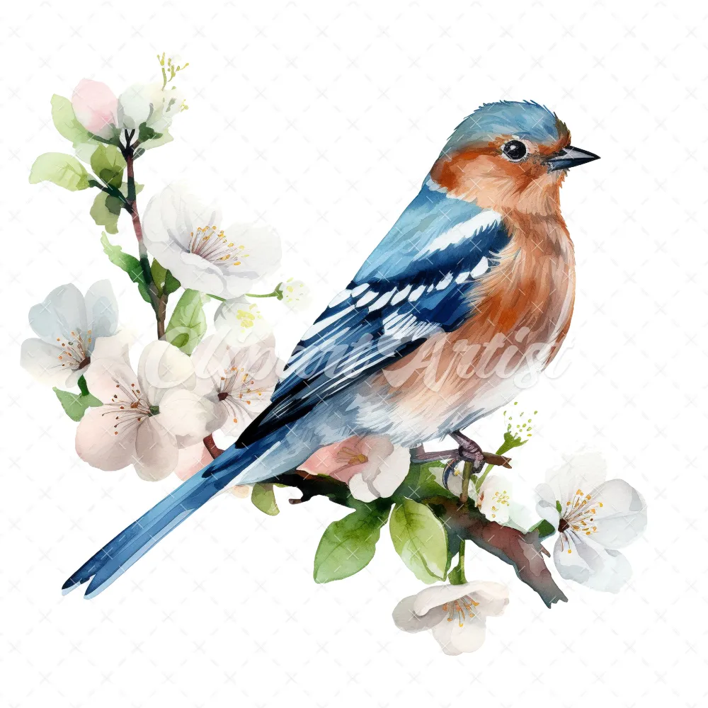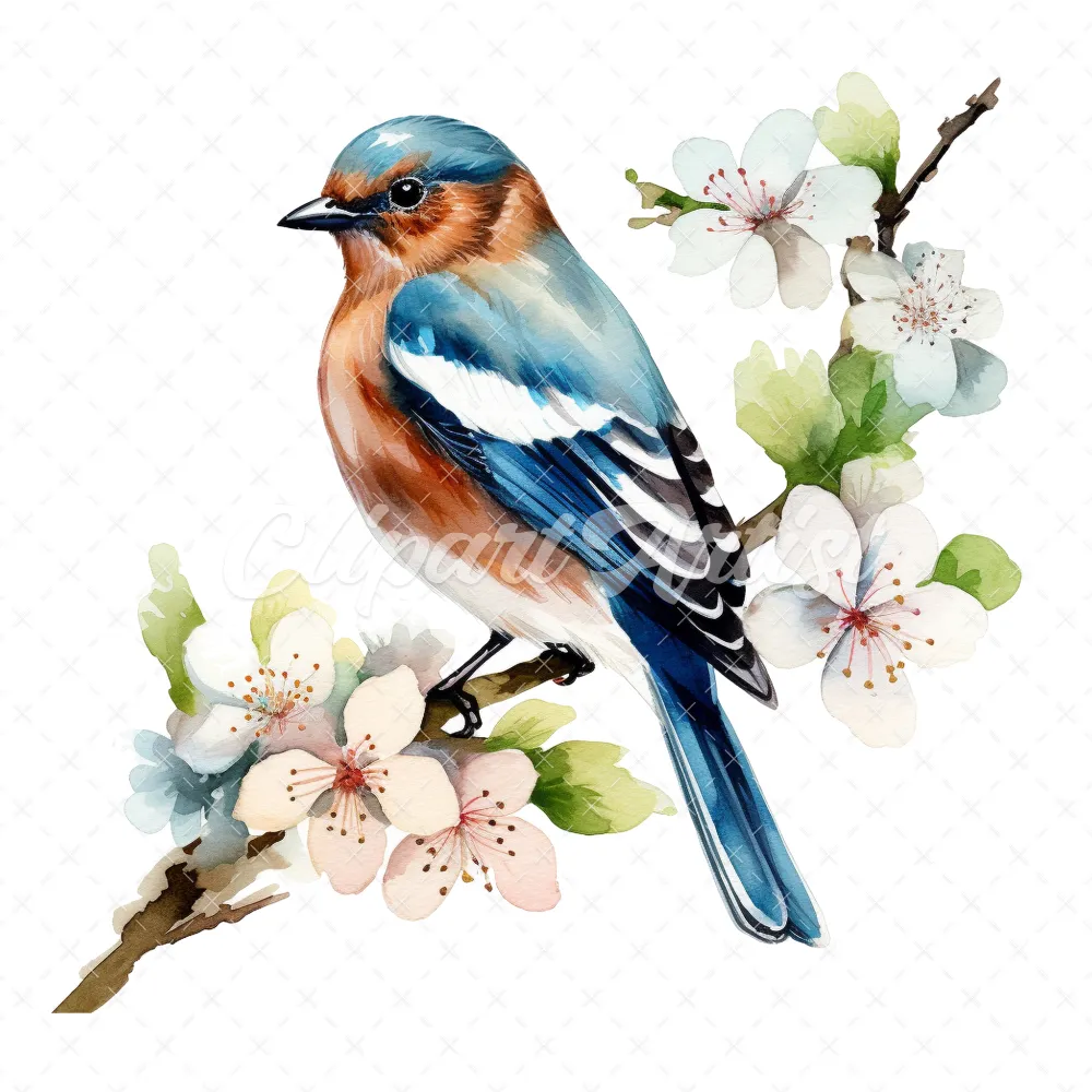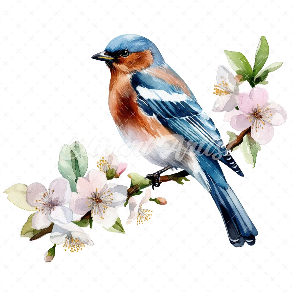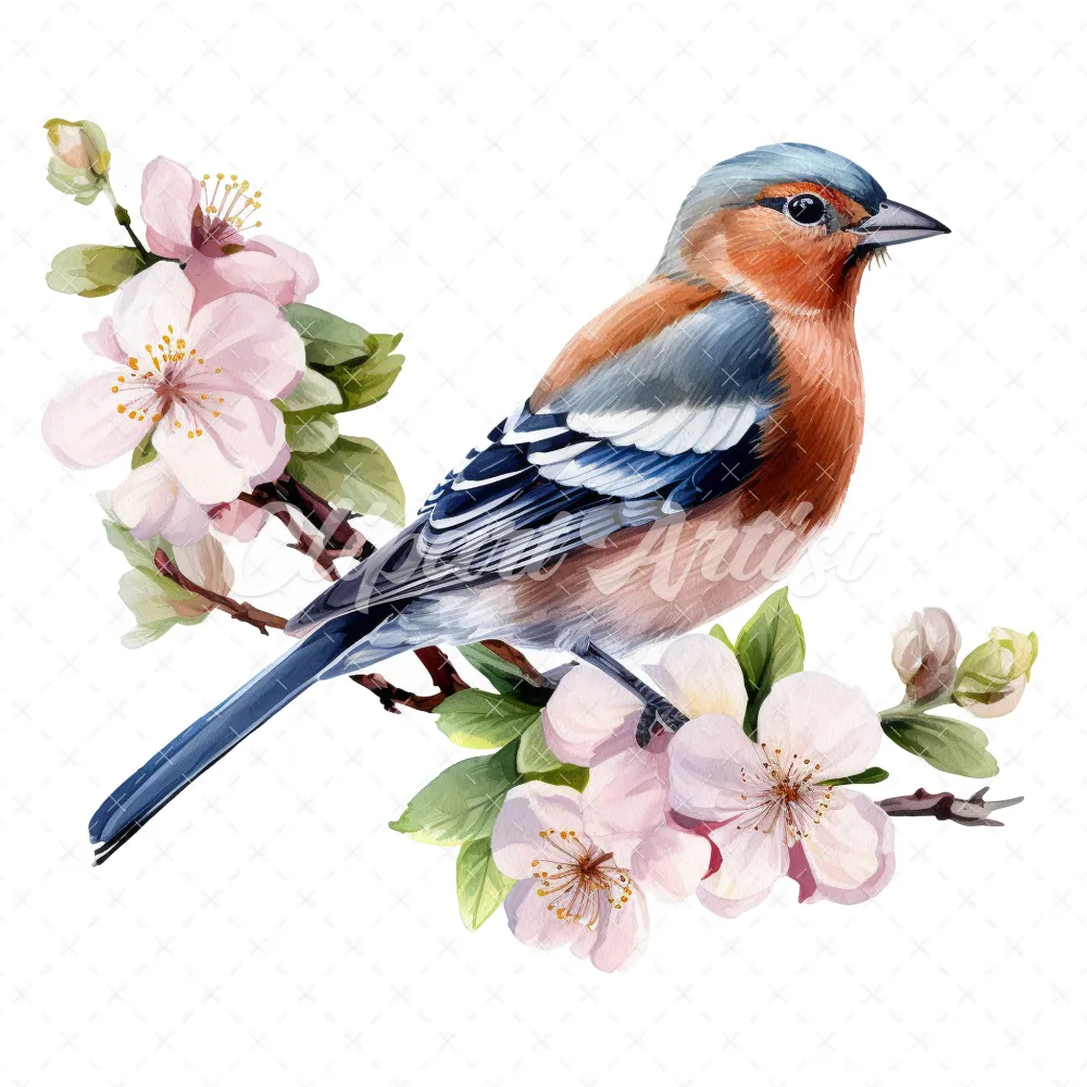 20 High-Quality Chaffinch Clipart – Chaffinch digital watercolor JPG instant download for commercial use – Digital download