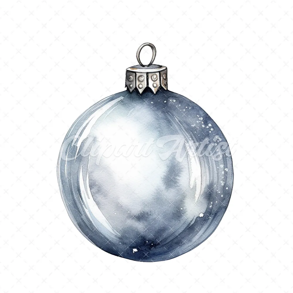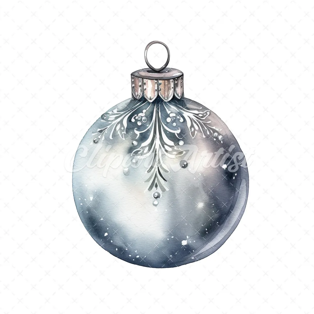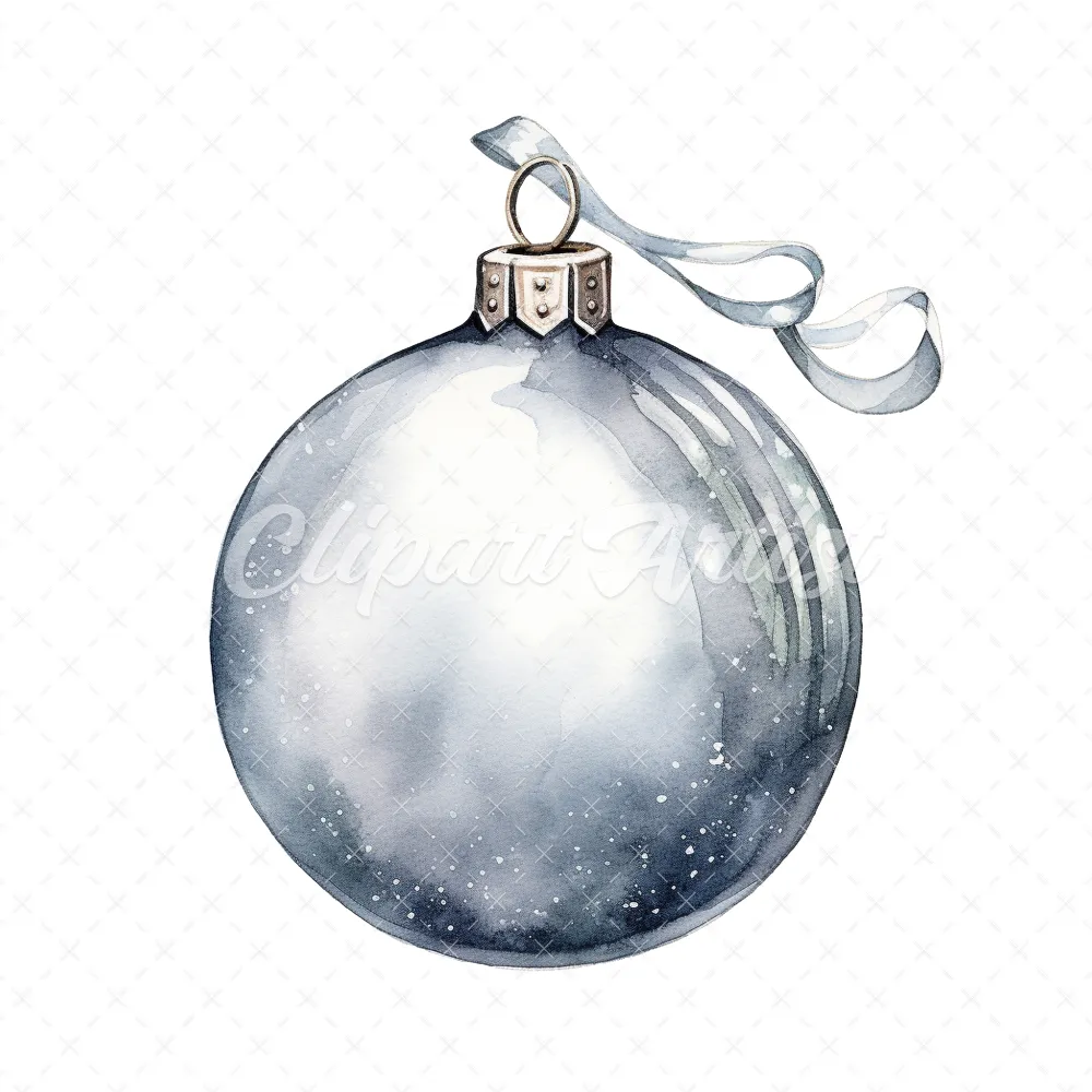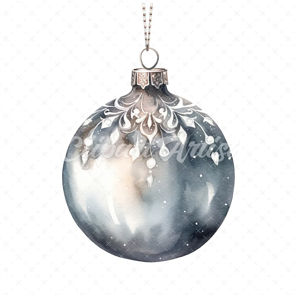20 High-Quality Christmas Silver Bauble Clipart – Christmas digital watercolor JPG instant download for commercial use – Digital download