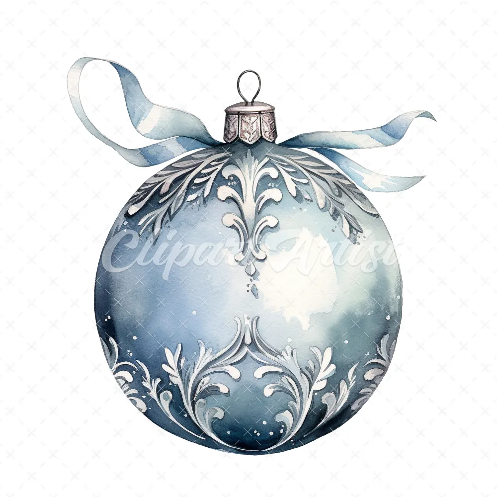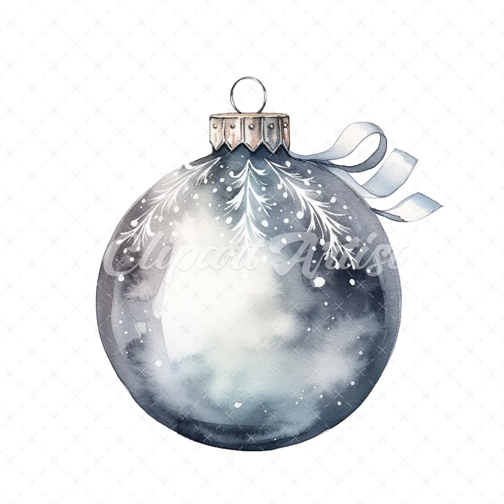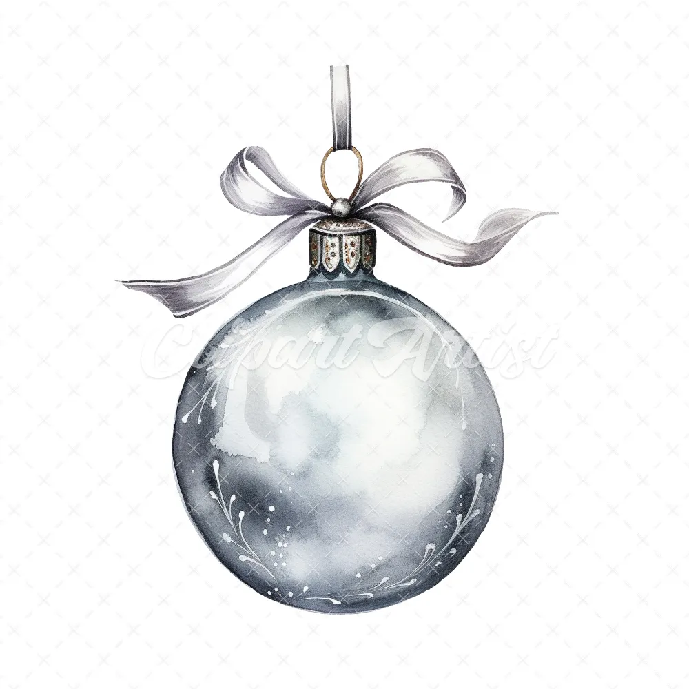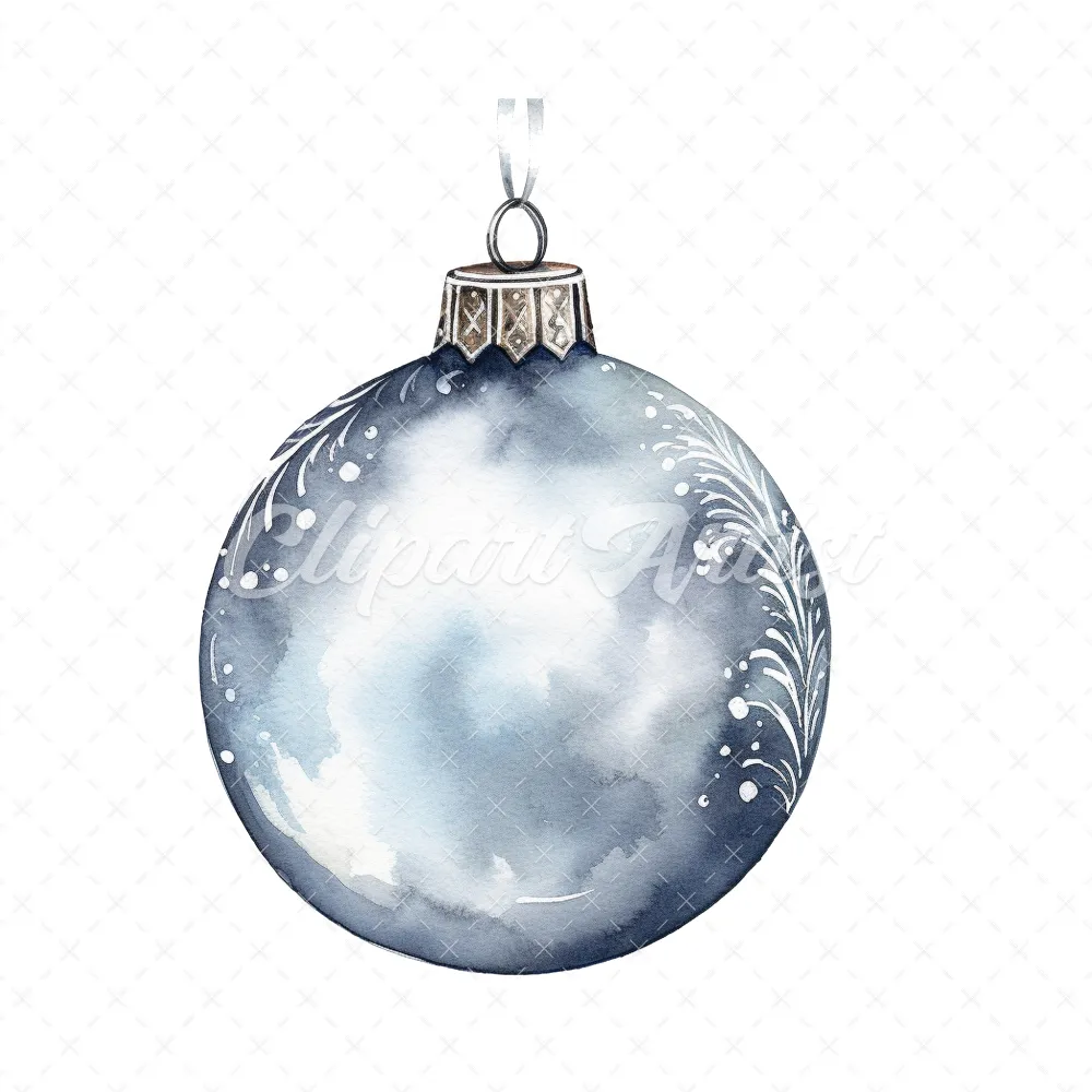 20 High-Quality Christmas Silver Bauble Clipart – Christmas digital watercolor JPG instant download for commercial use – Digital download
