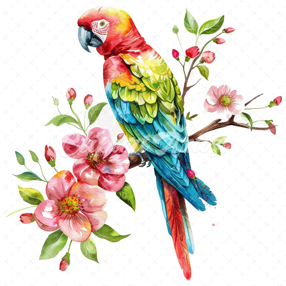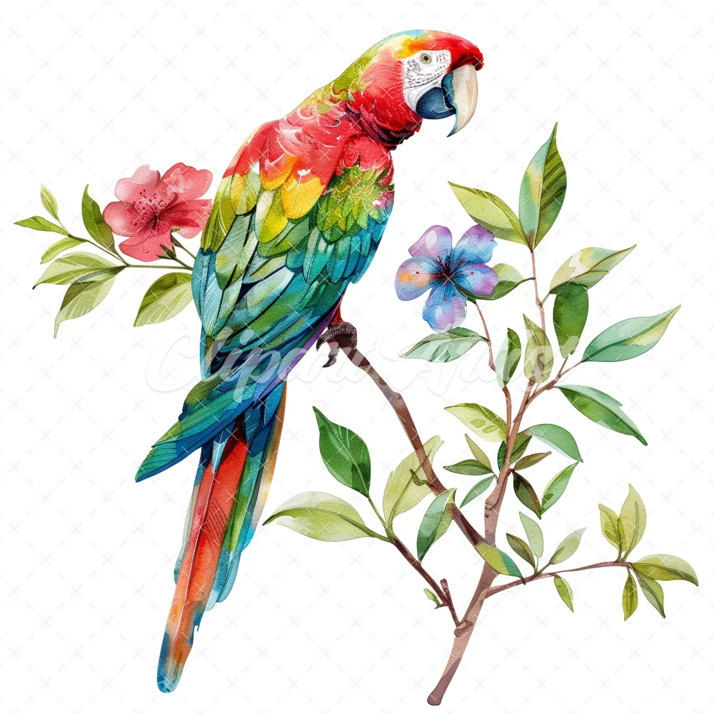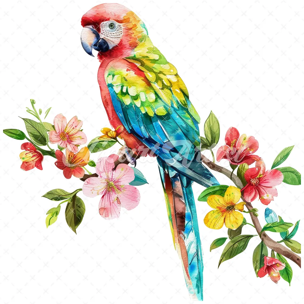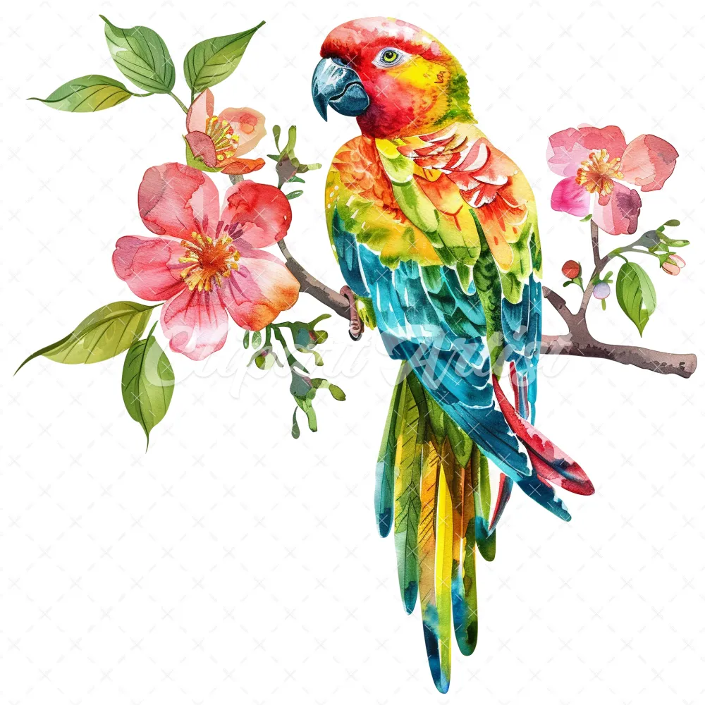 20 High-Quality Colorful Parrot Clipart – Colorful parrot digital watercolor JPG instant download for commercial use – Digital download