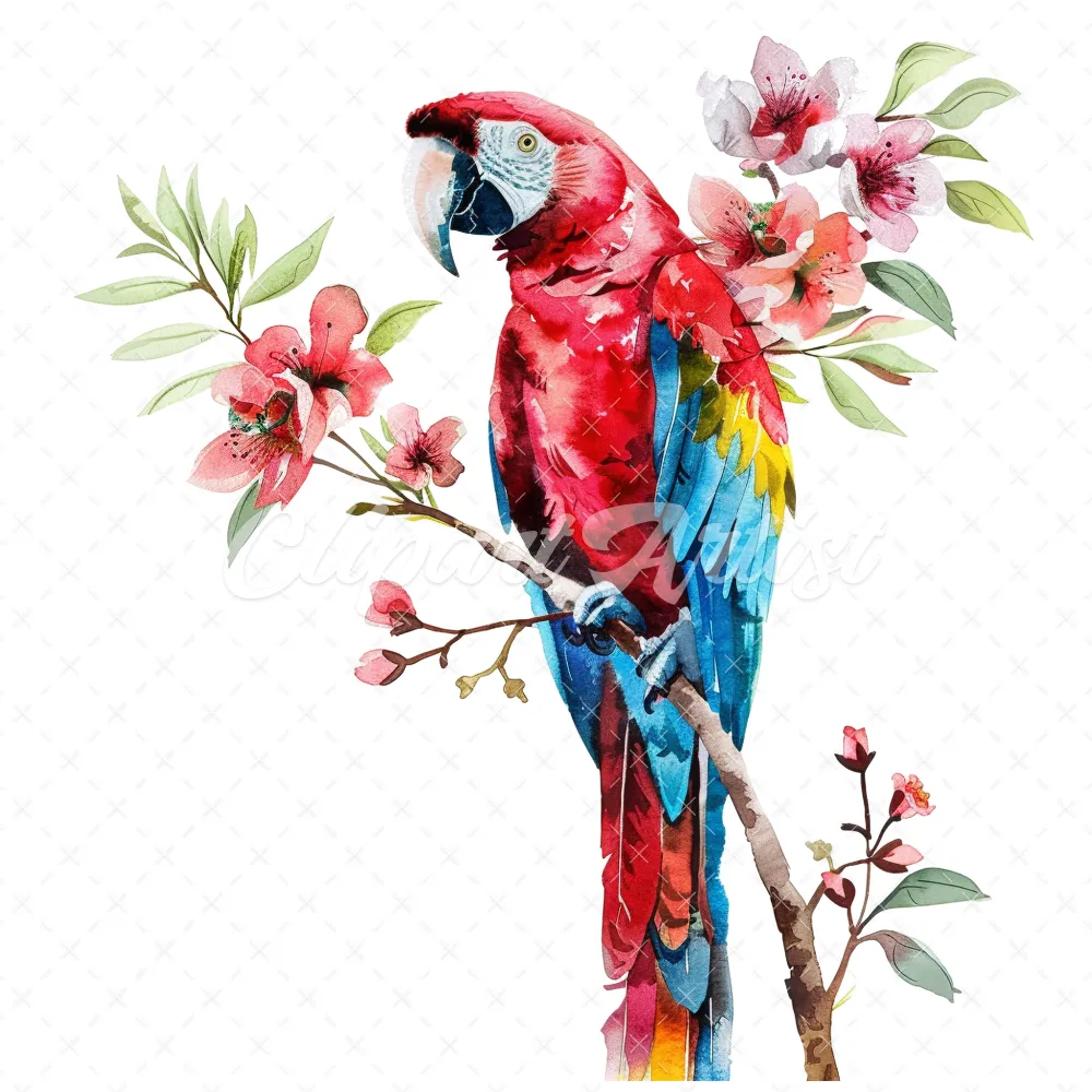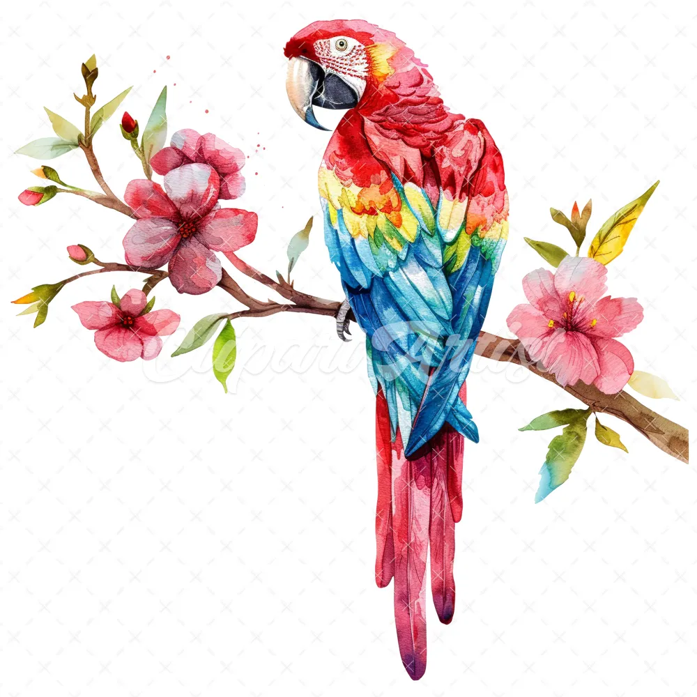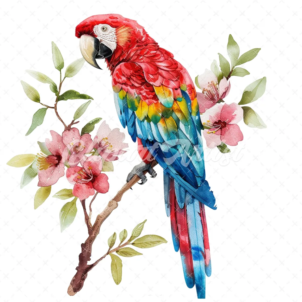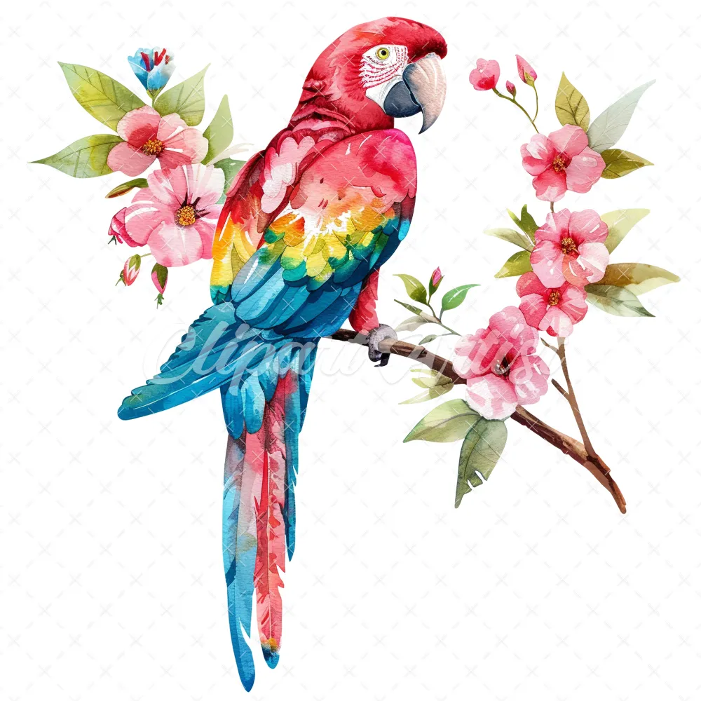 20 High-Quality Colorful Parrot Clipart – Colorful parrot digital watercolor JPG instant download for commercial use – Digital download