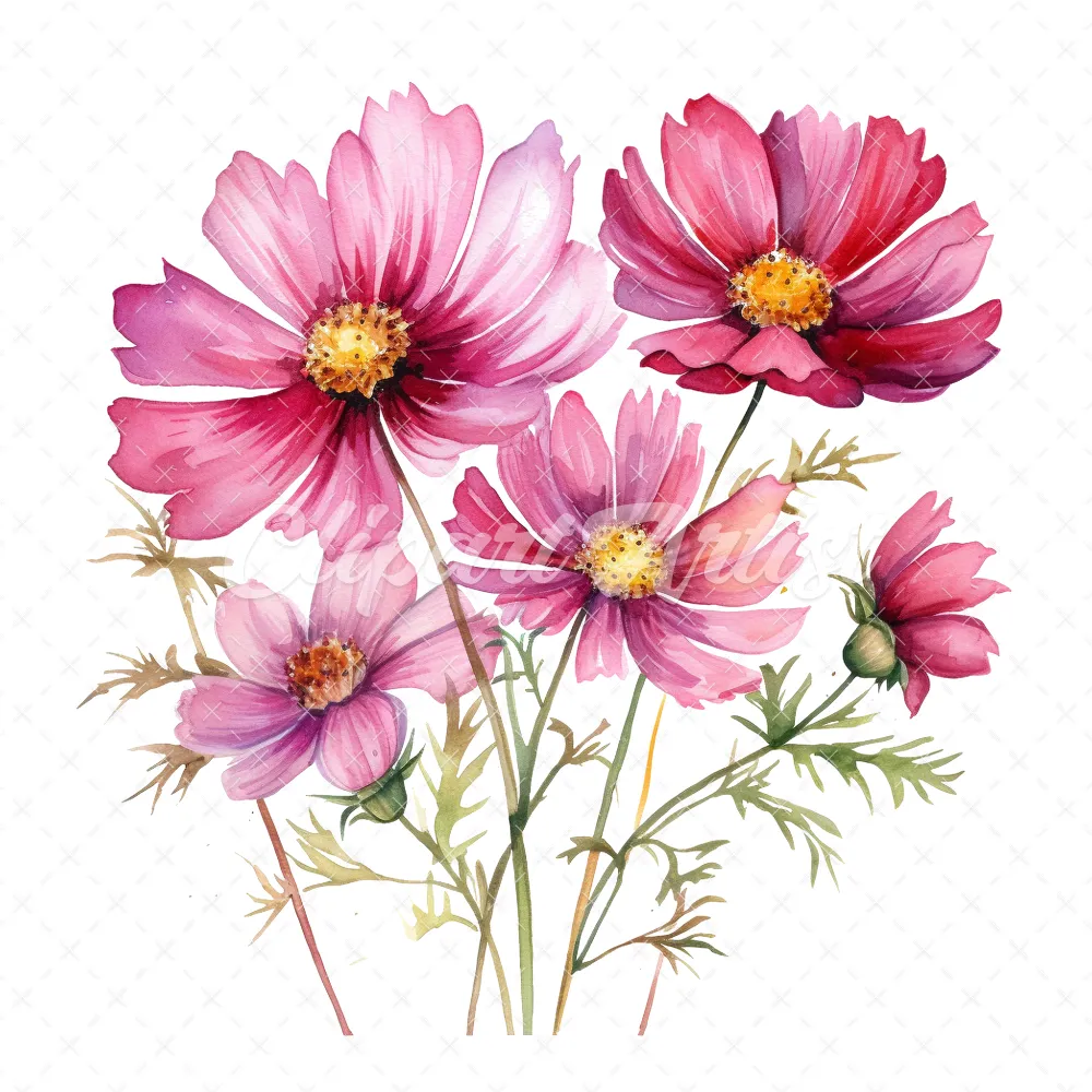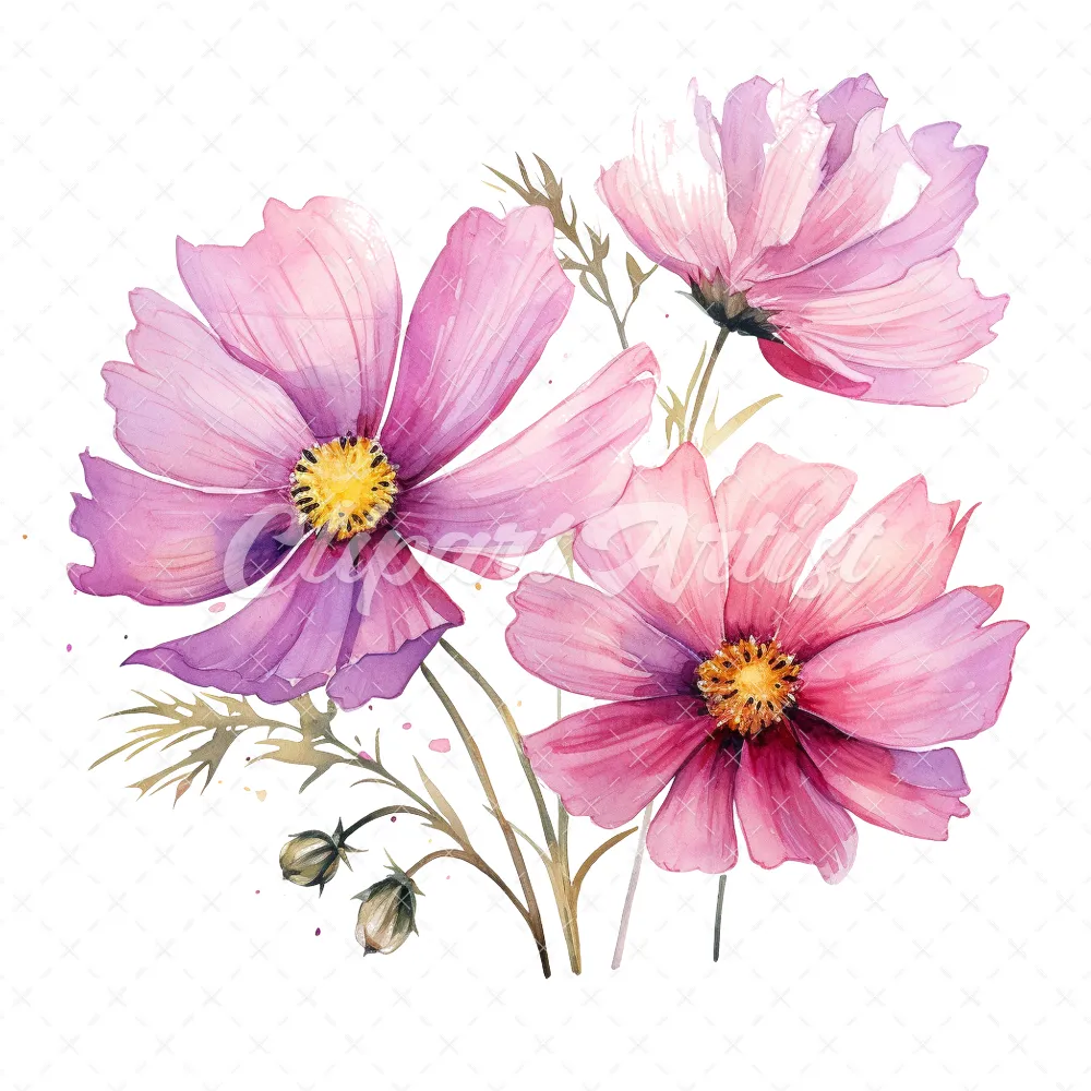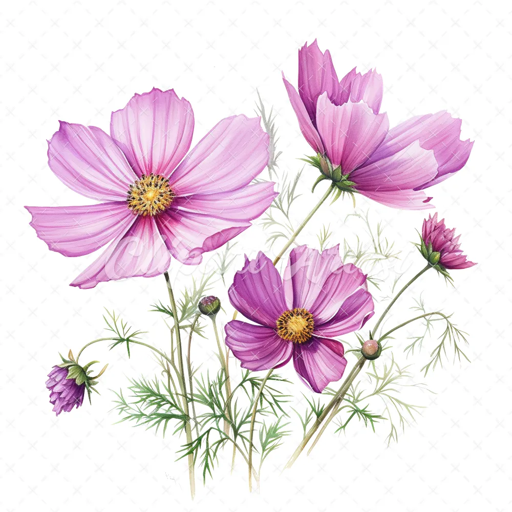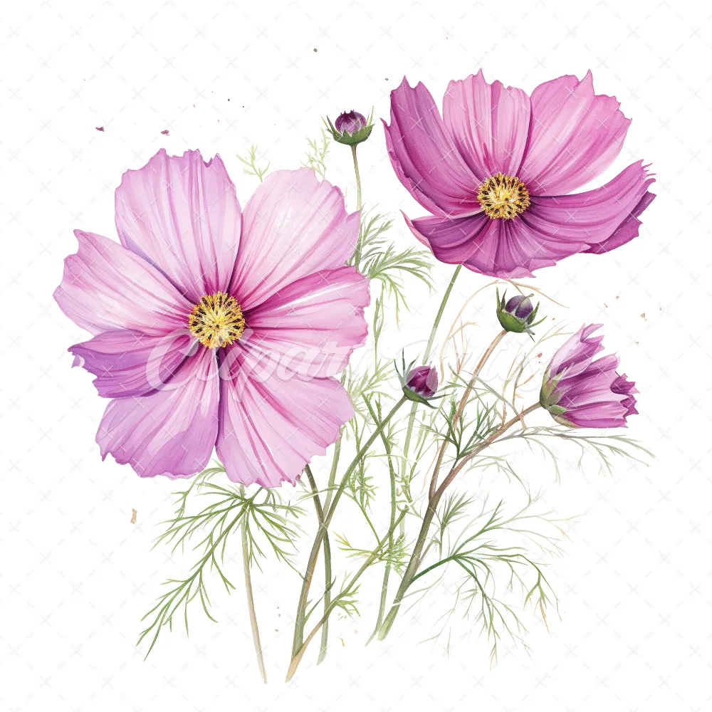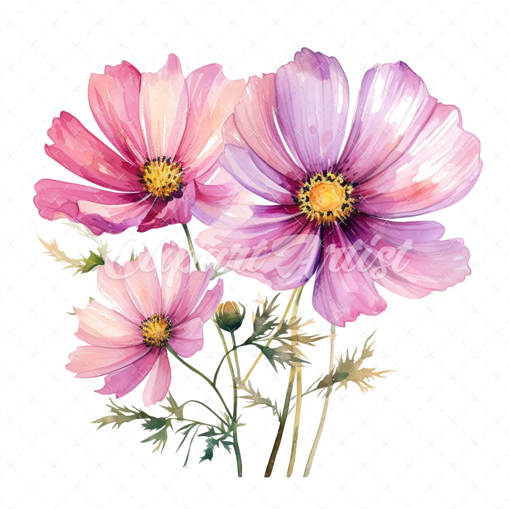 20 High-Quality Cosmos Clipart – Cosmos flower digital watercolor JPG instant download for commercial use – Digital download