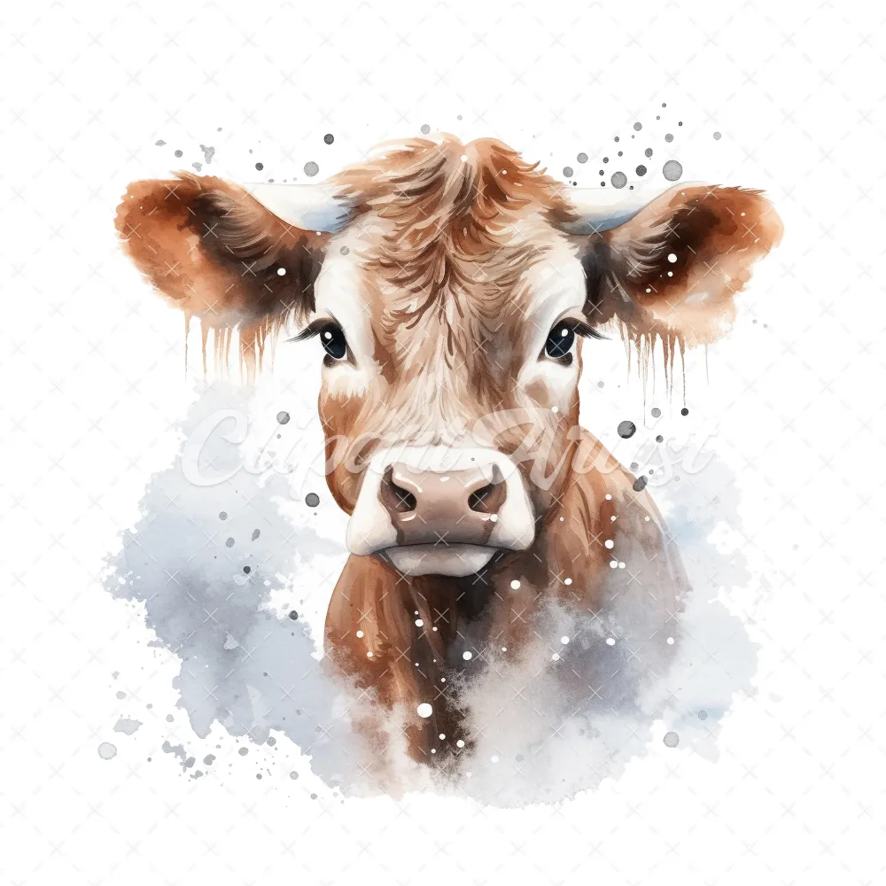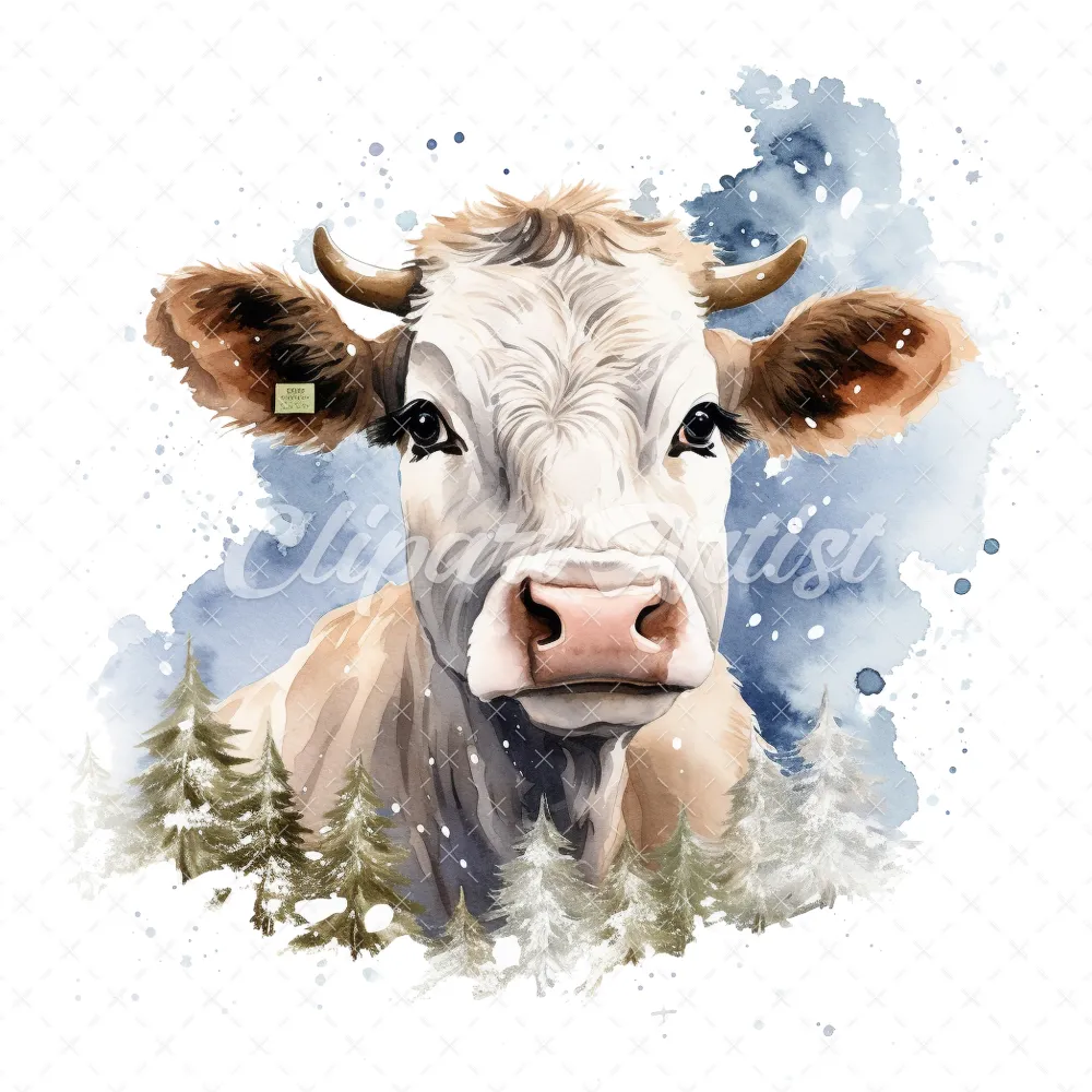 20 High-Quality Cow and Snow Clipart – Cow and snow Barbecue digital watercolor JPG instant download for commercial use – Digital download