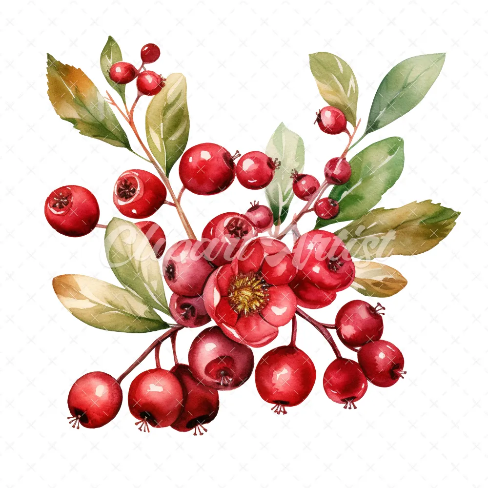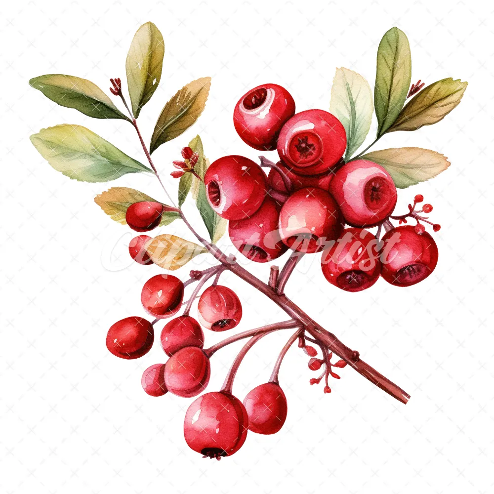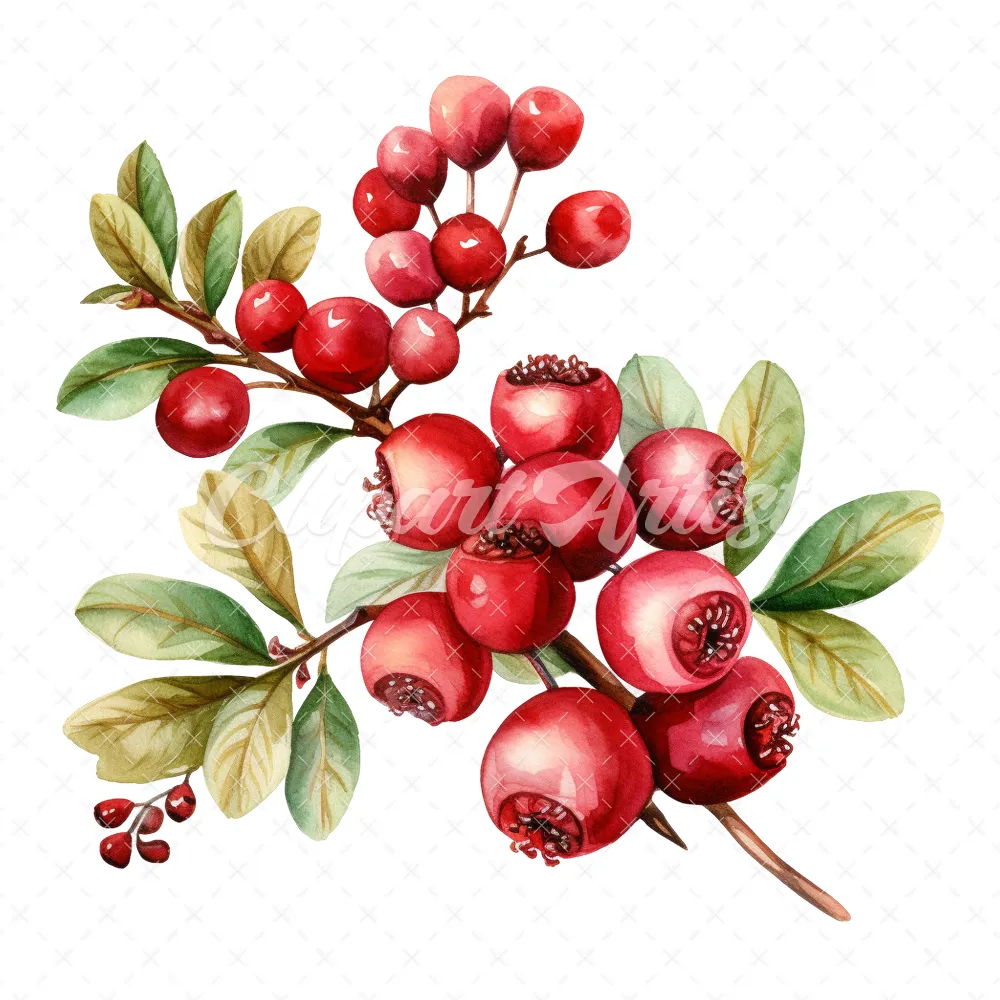 20 High-Quality Cranberry Clipart – Cranberry digital watercolor JPG instant download for commercial use – Digital download