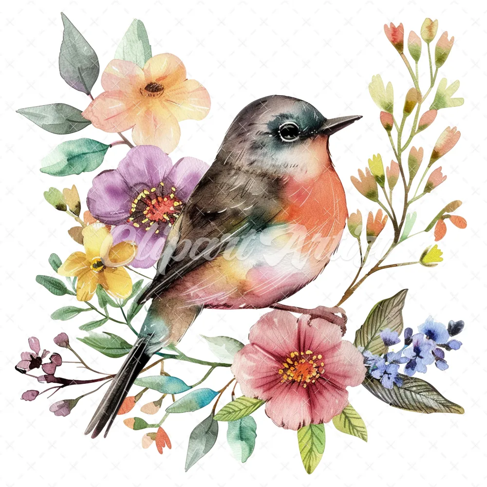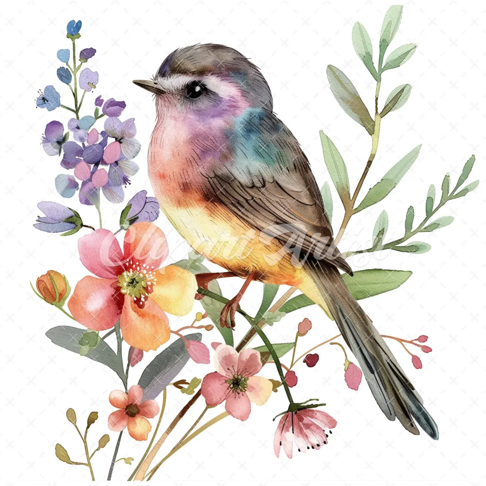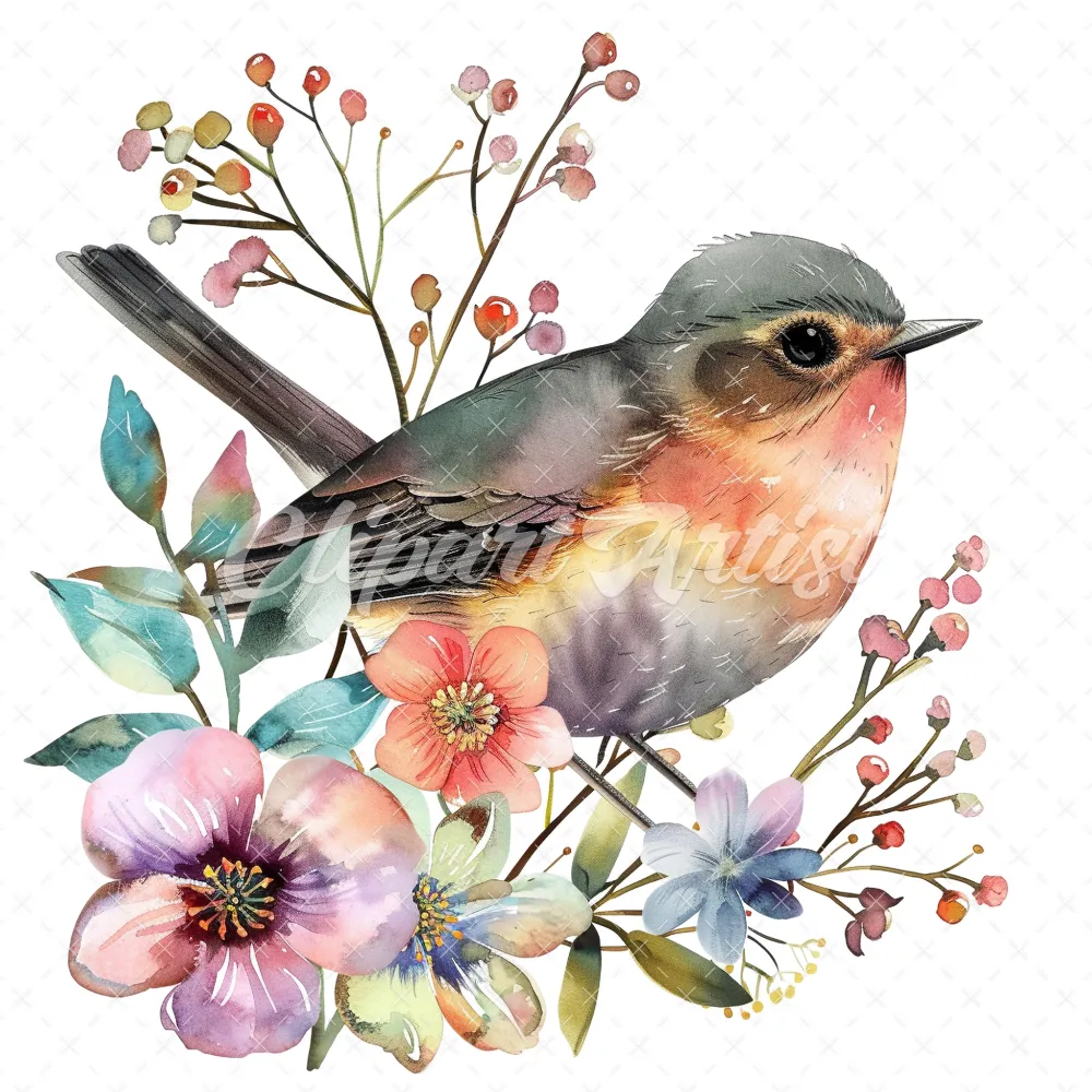 20 High-Quality Cute Floral Bird Clipart – Cute floral bird digital watercolor JPG instant download for commercial use – Digital download