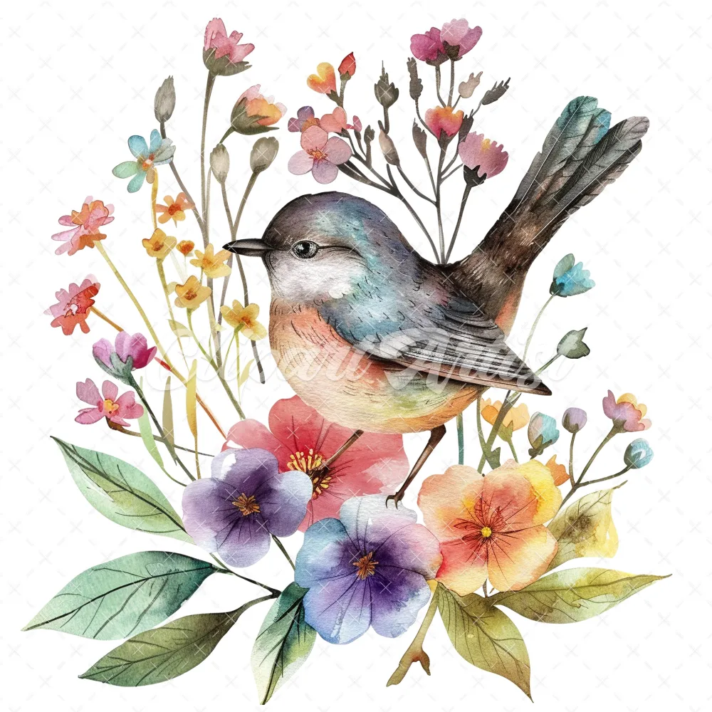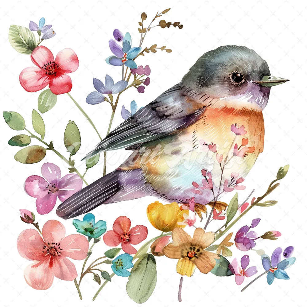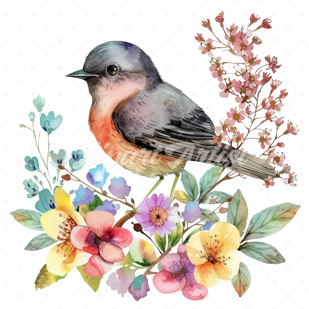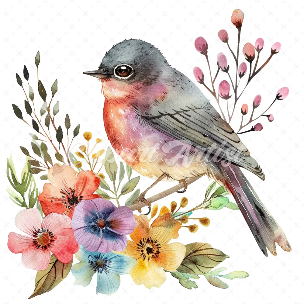 20 High-Quality Cute Floral Bird Clipart – Cute floral bird digital watercolor JPG instant download for commercial use – Digital download