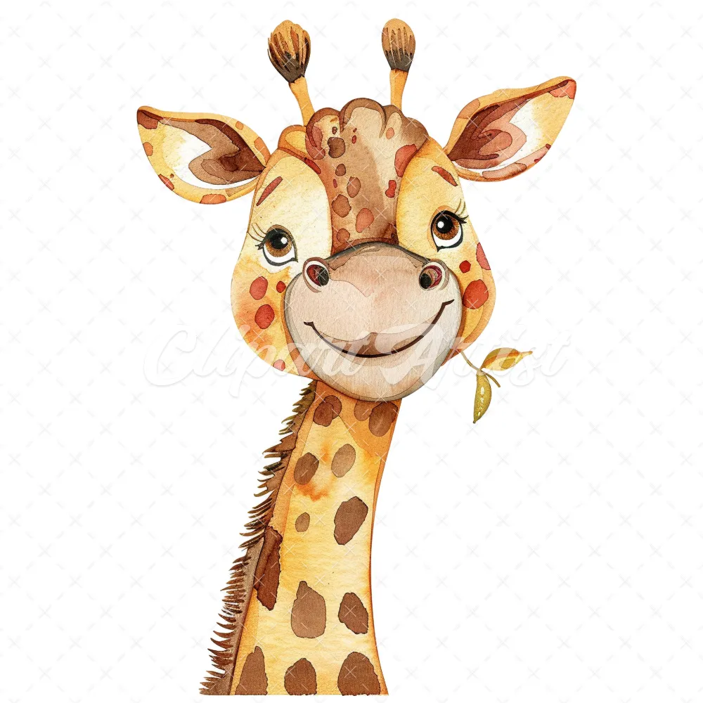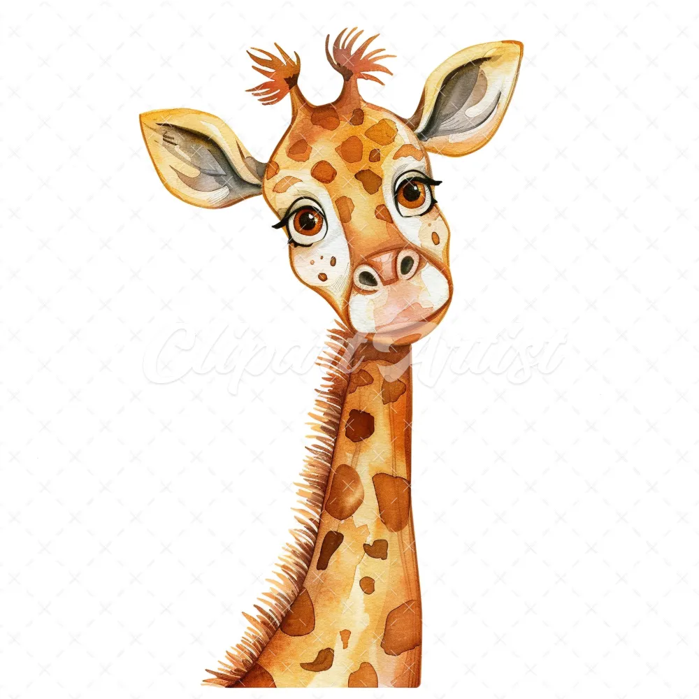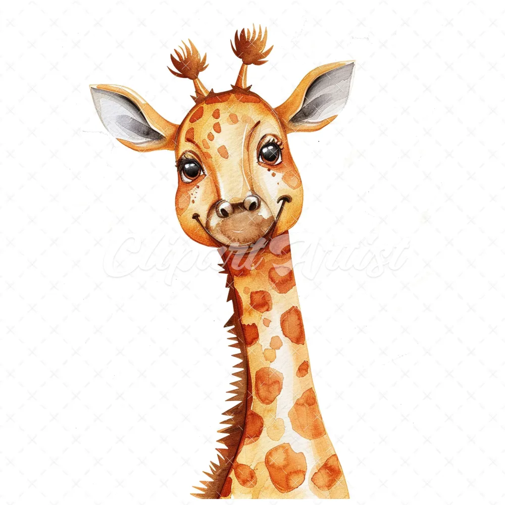 20 High-Quality Cute Giraffe Portrait Clipart – Cute giraffe digital watercolor JPG instant download for commercial use – Digital download