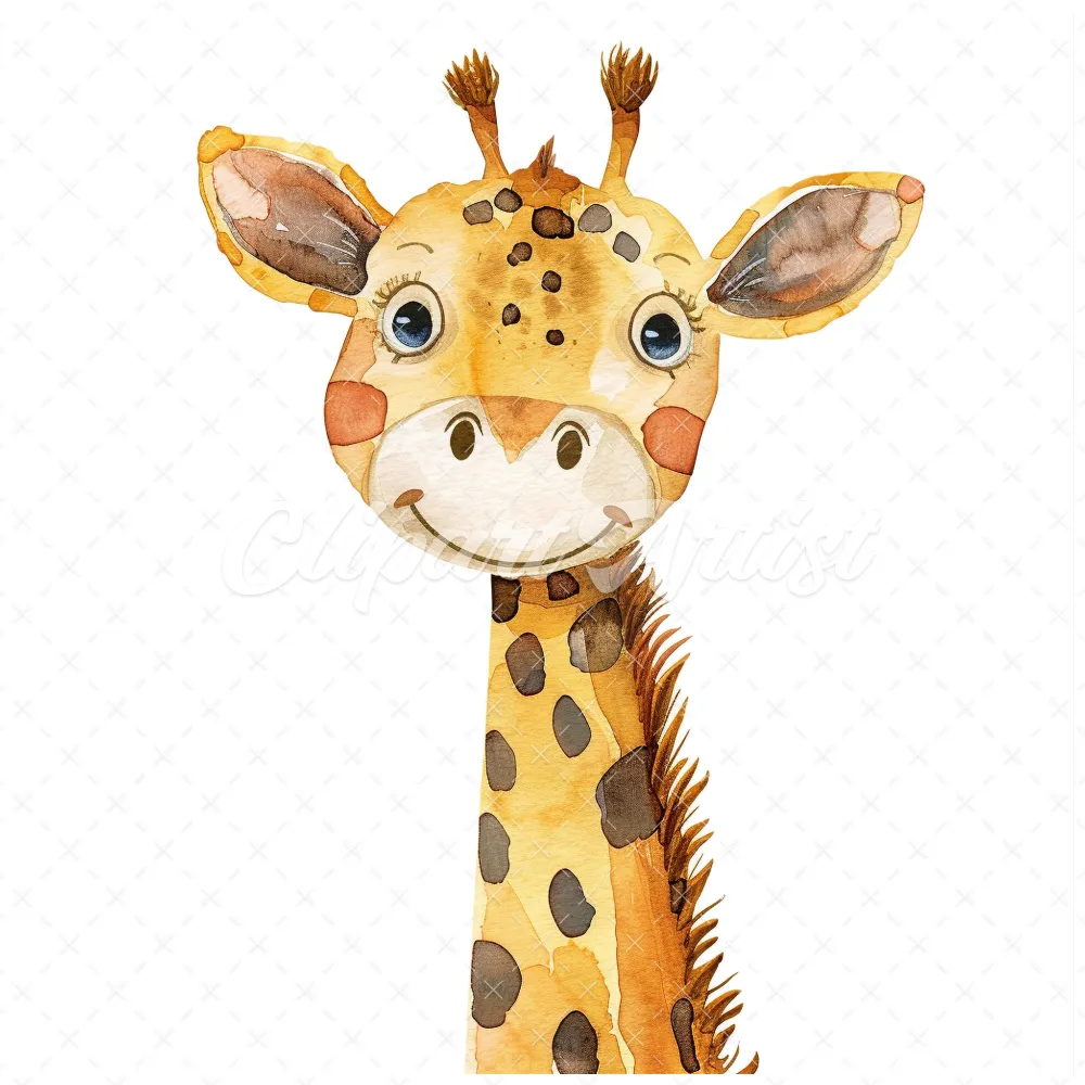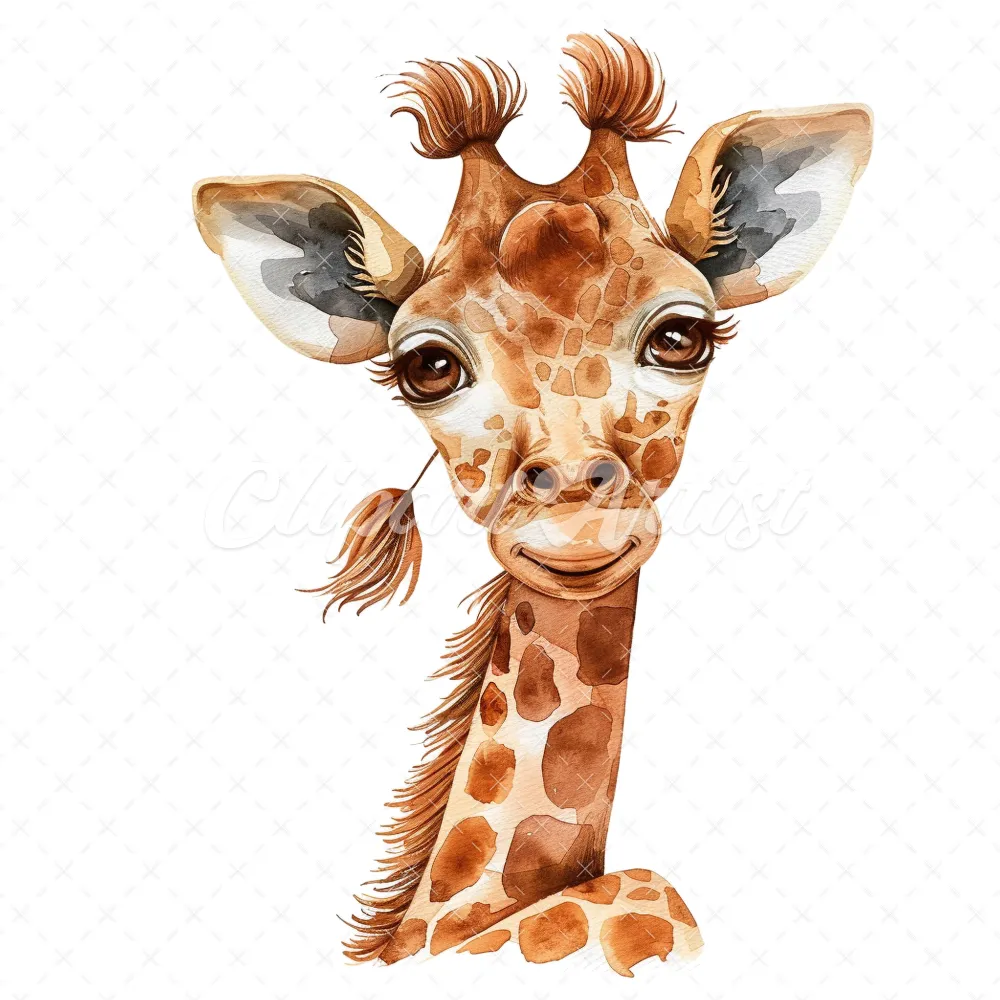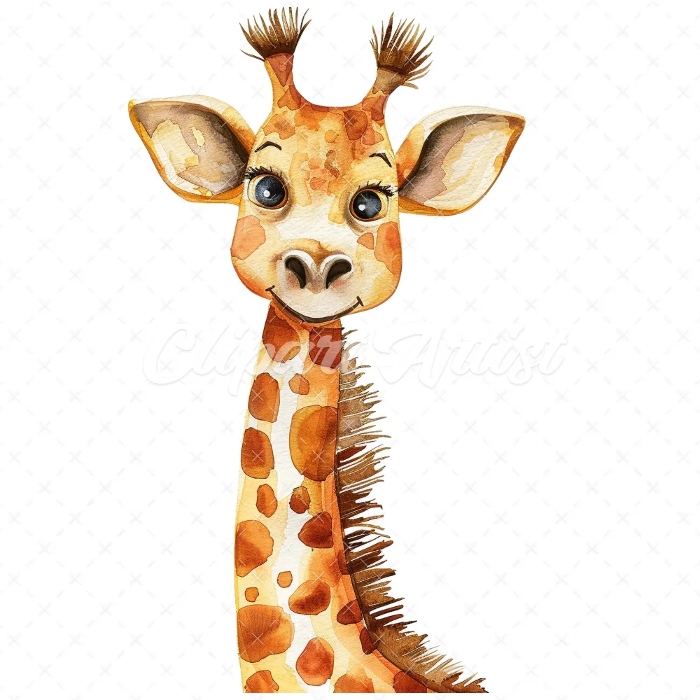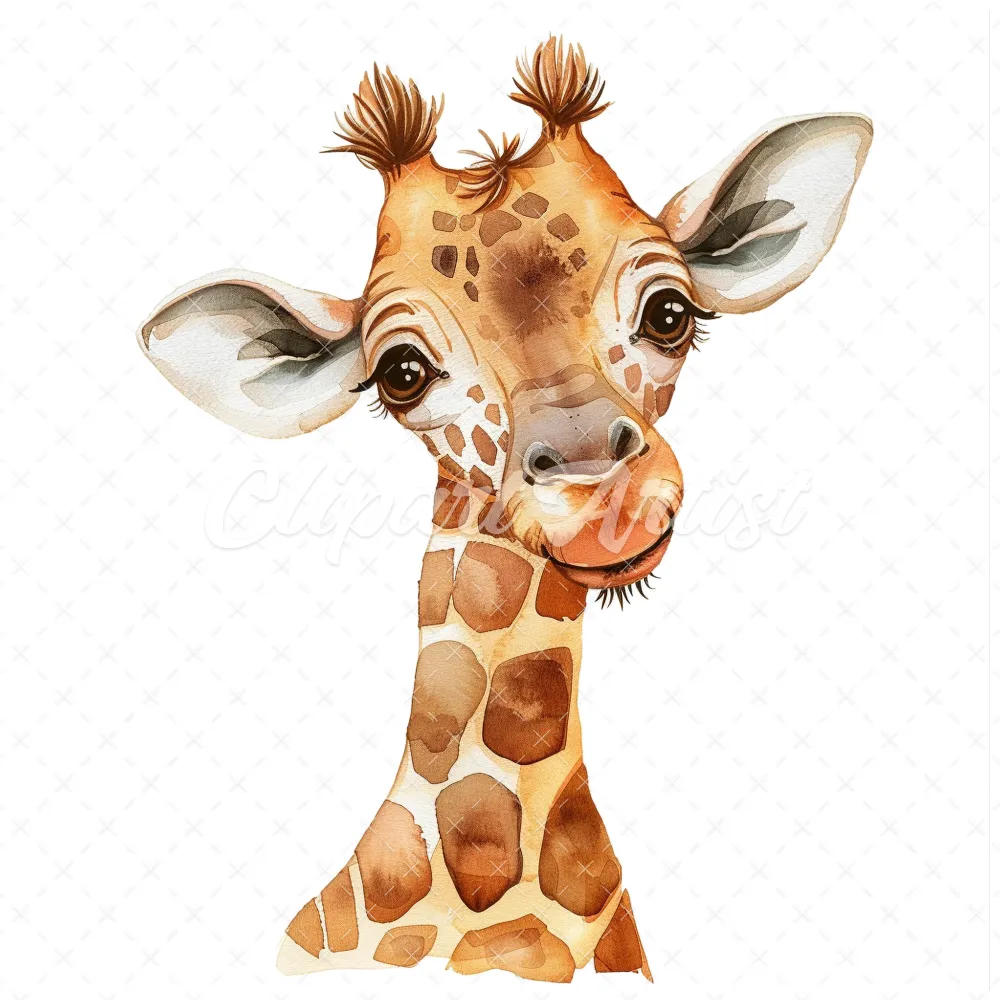 20 High-Quality Cute Giraffe Portrait Clipart – Cute giraffe digital watercolor JPG instant download for commercial use – Digital download