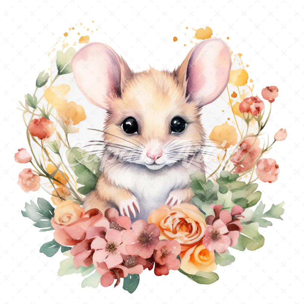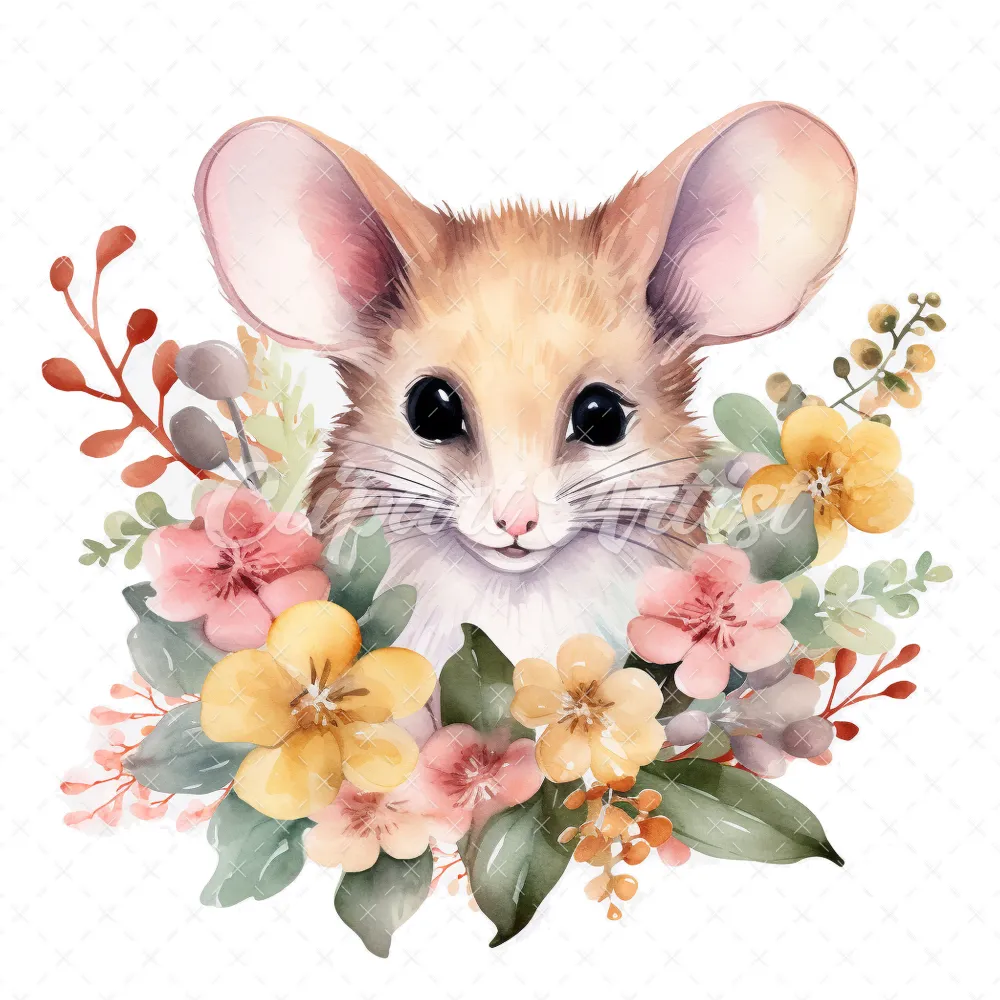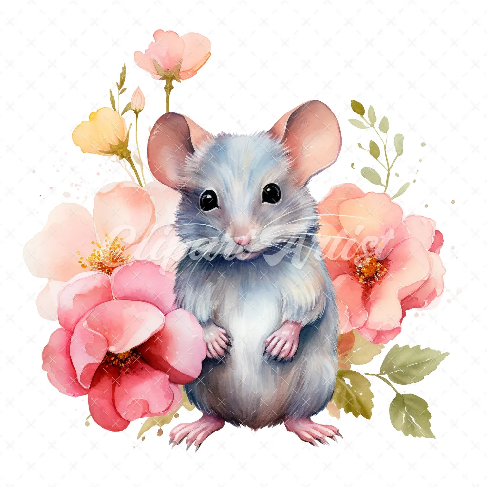 20 High-Quality Cute Mouse Clipart – Cute mouse with flower digital watercolor JPG instant download for commercial use – Digital download