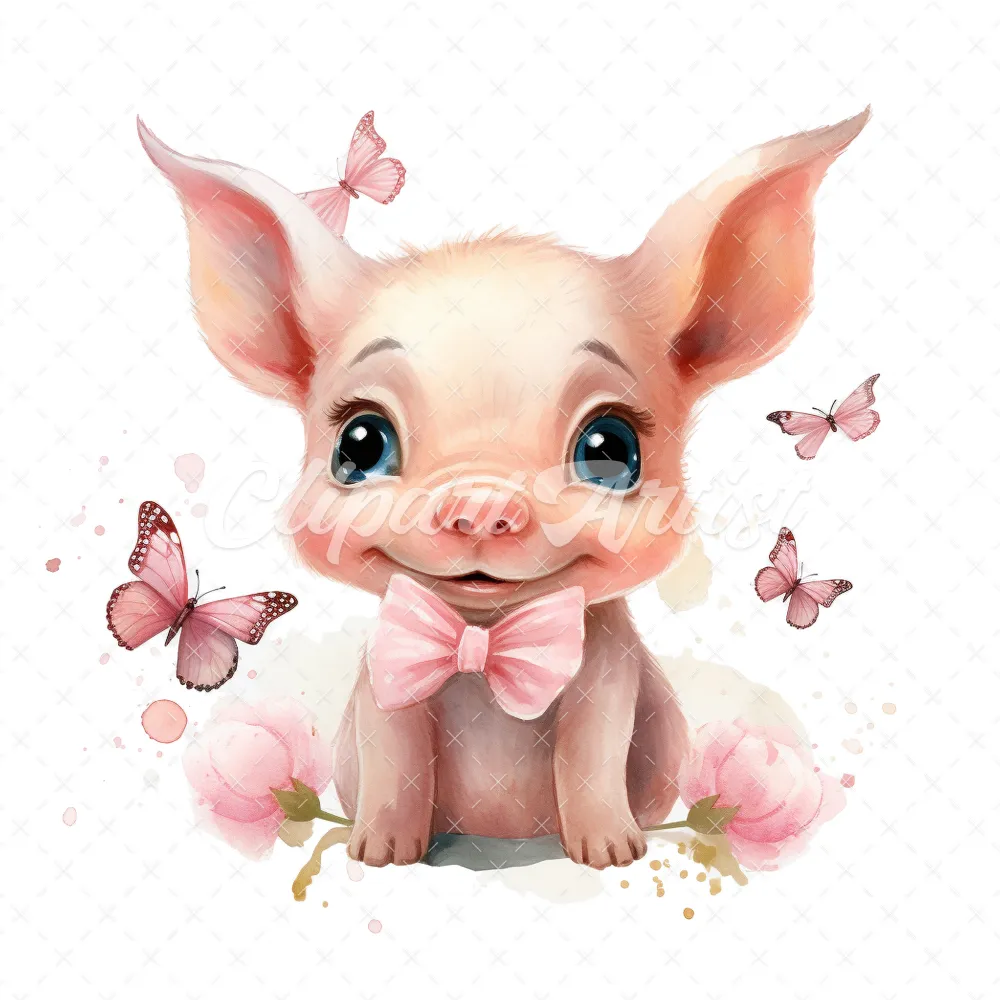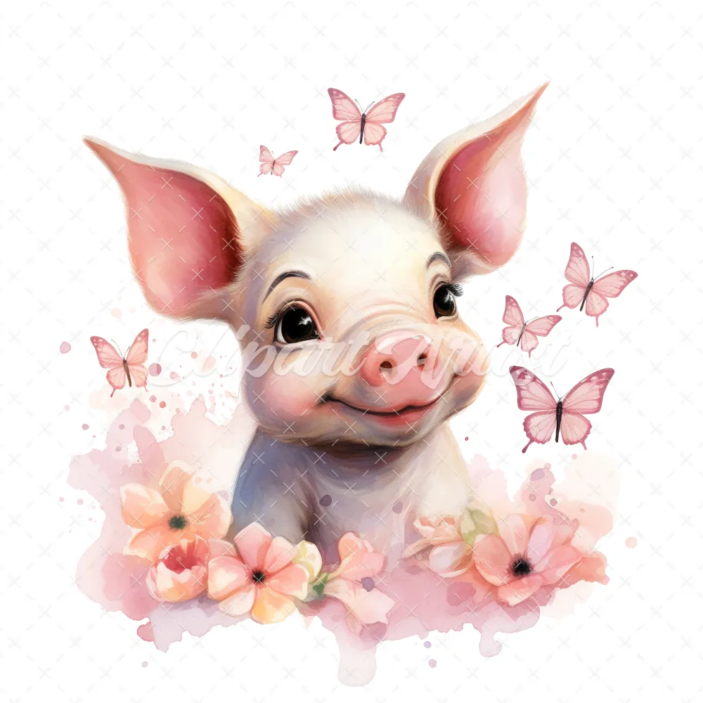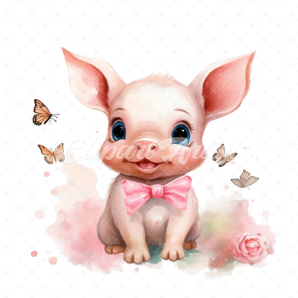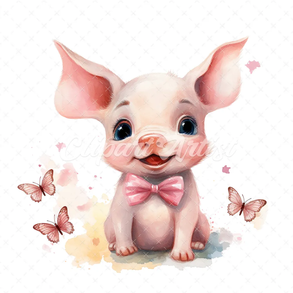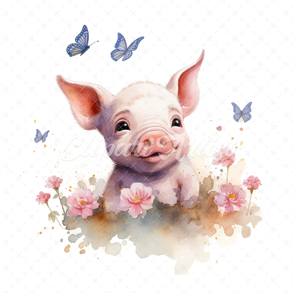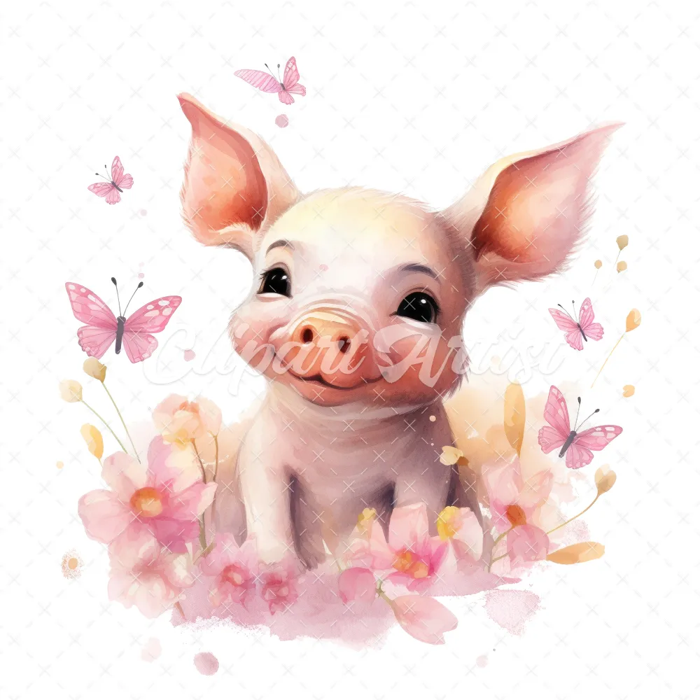 20 High-Quality Cute Piglet Butterflies Clipart – Cute piglet digital watercolor JPG instant download for commercial use – Digital download
