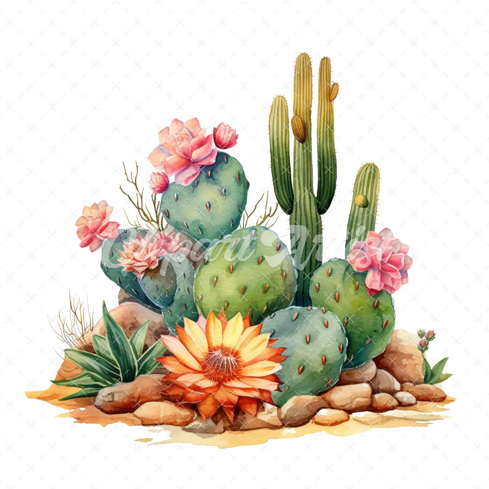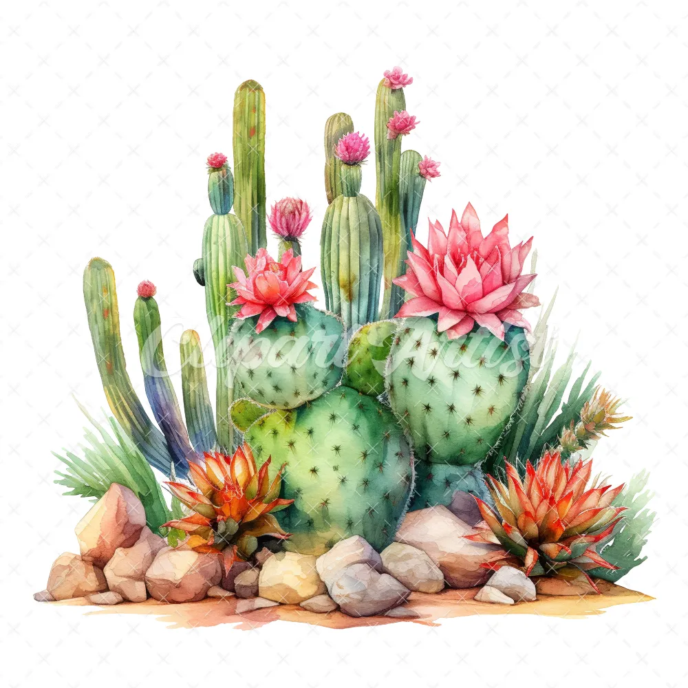 20 High-Quality Desert Cacti Clipart – Desert cacti digital watercolor JPG instant download for commercial use – Digital download