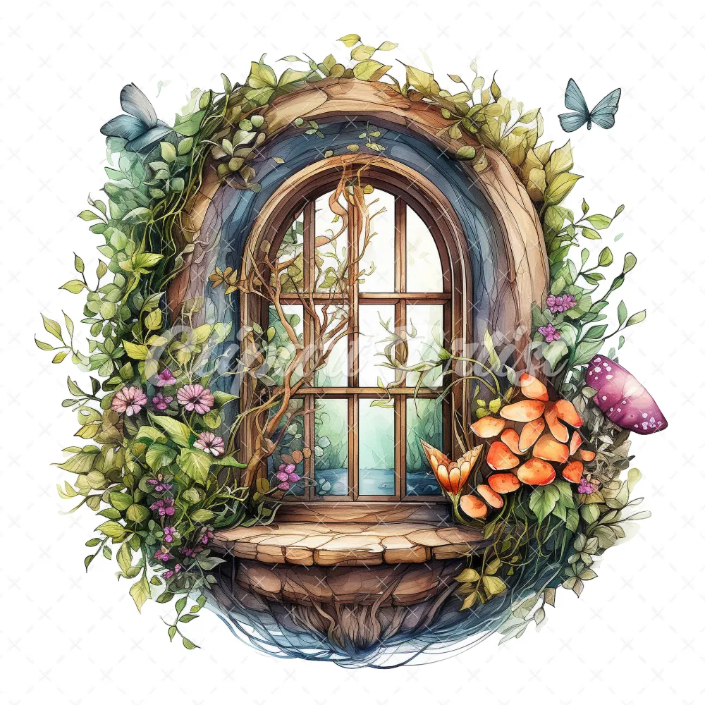 20 High-Quality Fairy Windows Clipart – Fairy windows digital watercolor JPG instant download for commercial use – Digital download