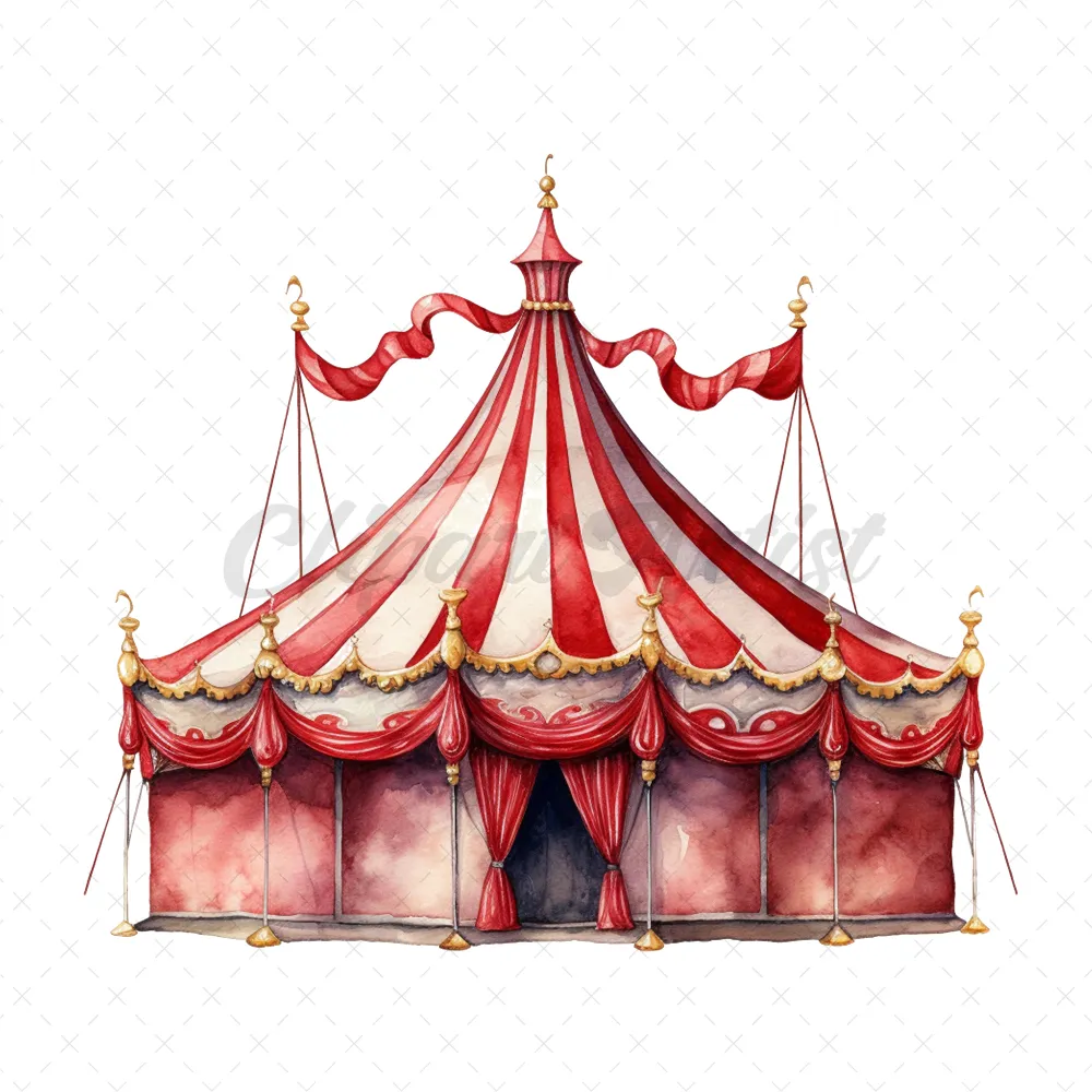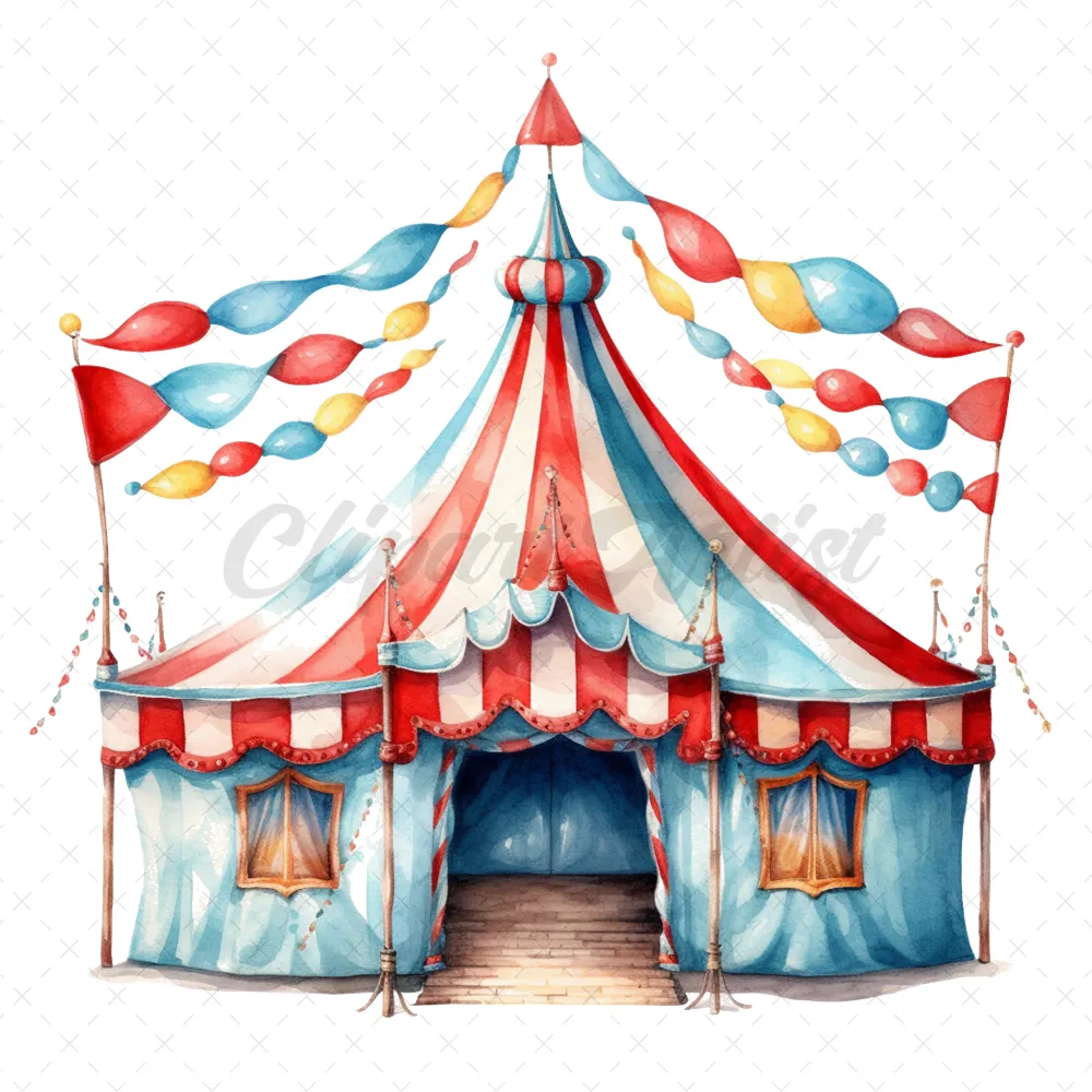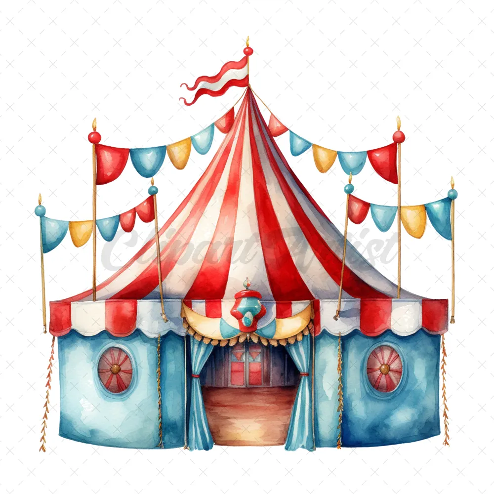 20 High-Quality Fantasy Carnival Tents Clipart -Carnival tents watercolor digital JPG instant download for commercial use – Digital download