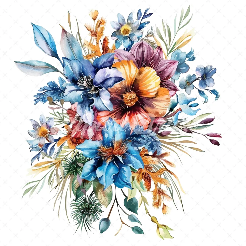 20 High-Quality Fantasy Flowers Clipart – Bouquet flowers digital watercolor JPG instant download for commercial use – Digital download