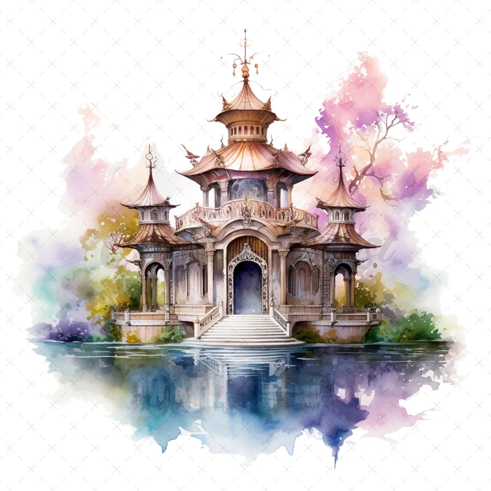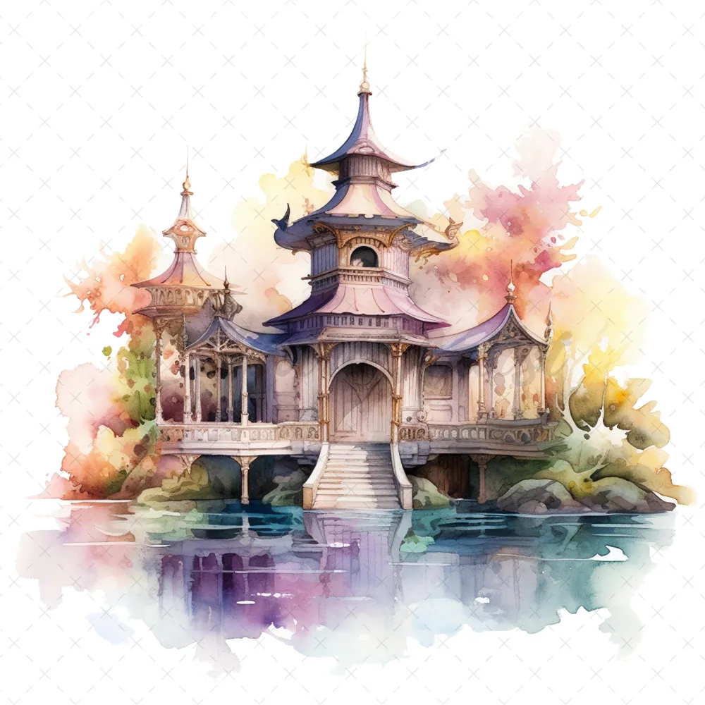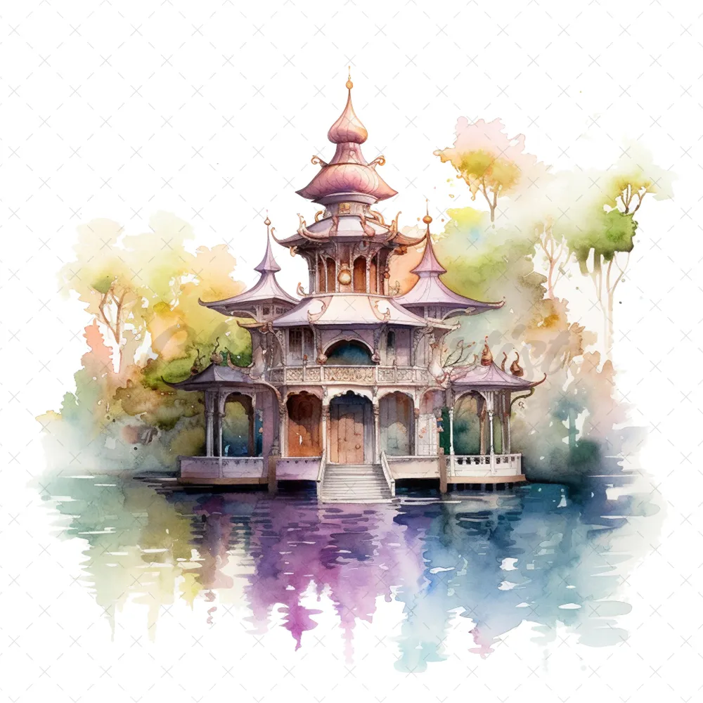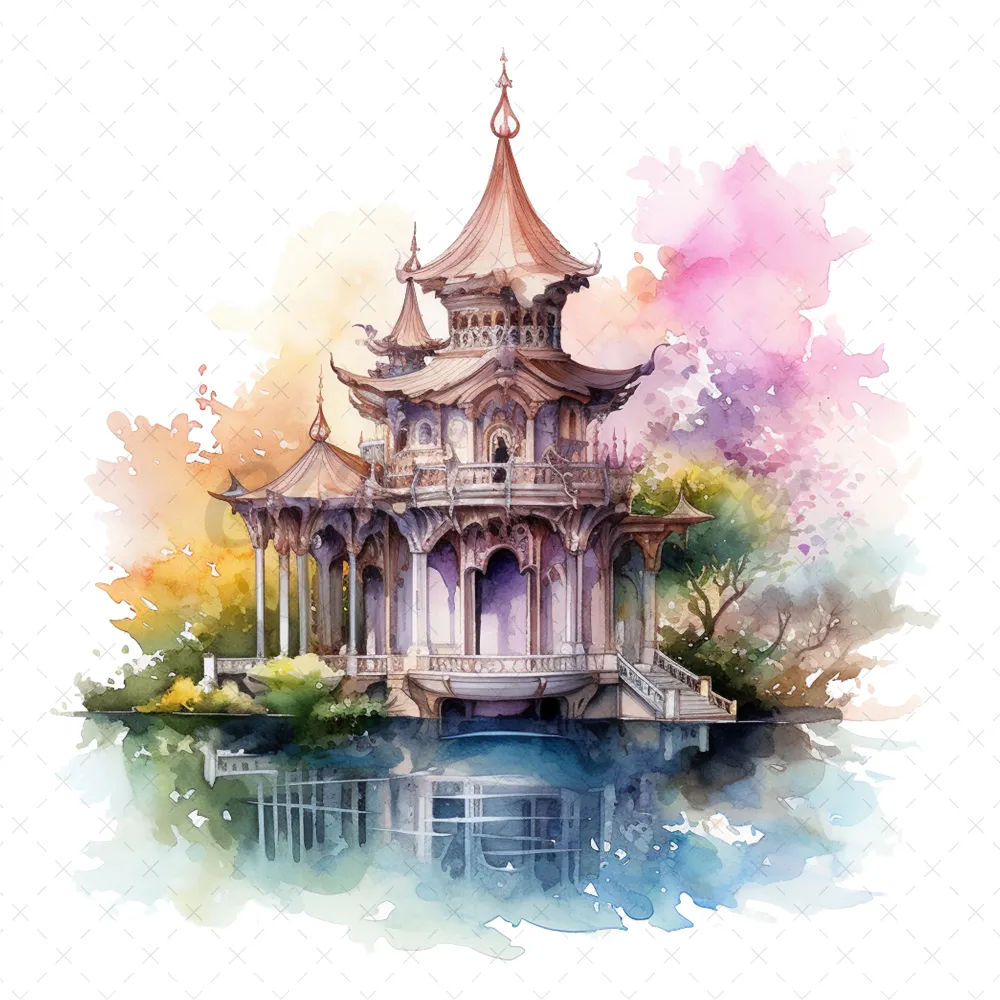 20 High-Quality Fantasy Pavilion Clipart – Fantasy pavilion digital watercolor JPG instant download for commercial use – Digital download